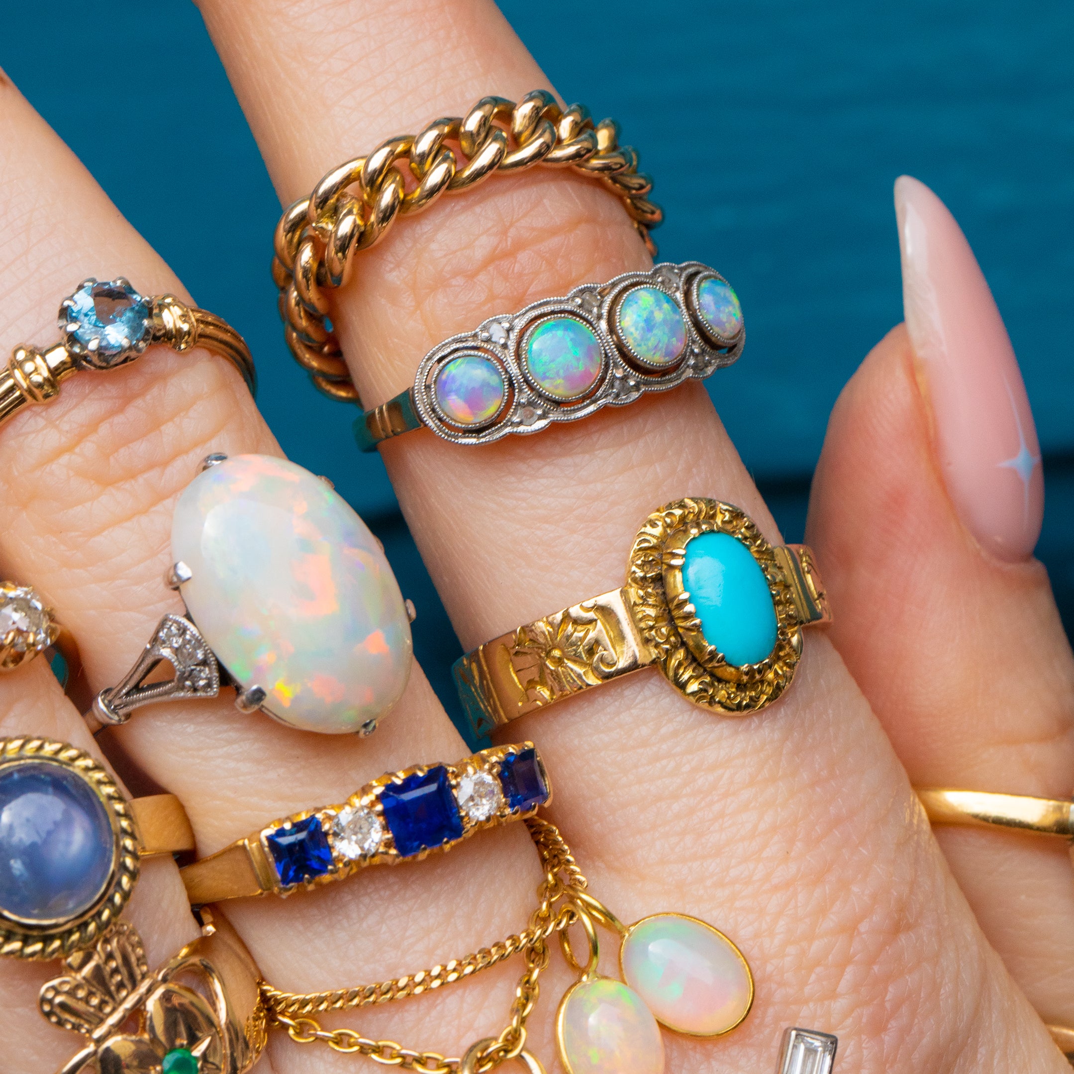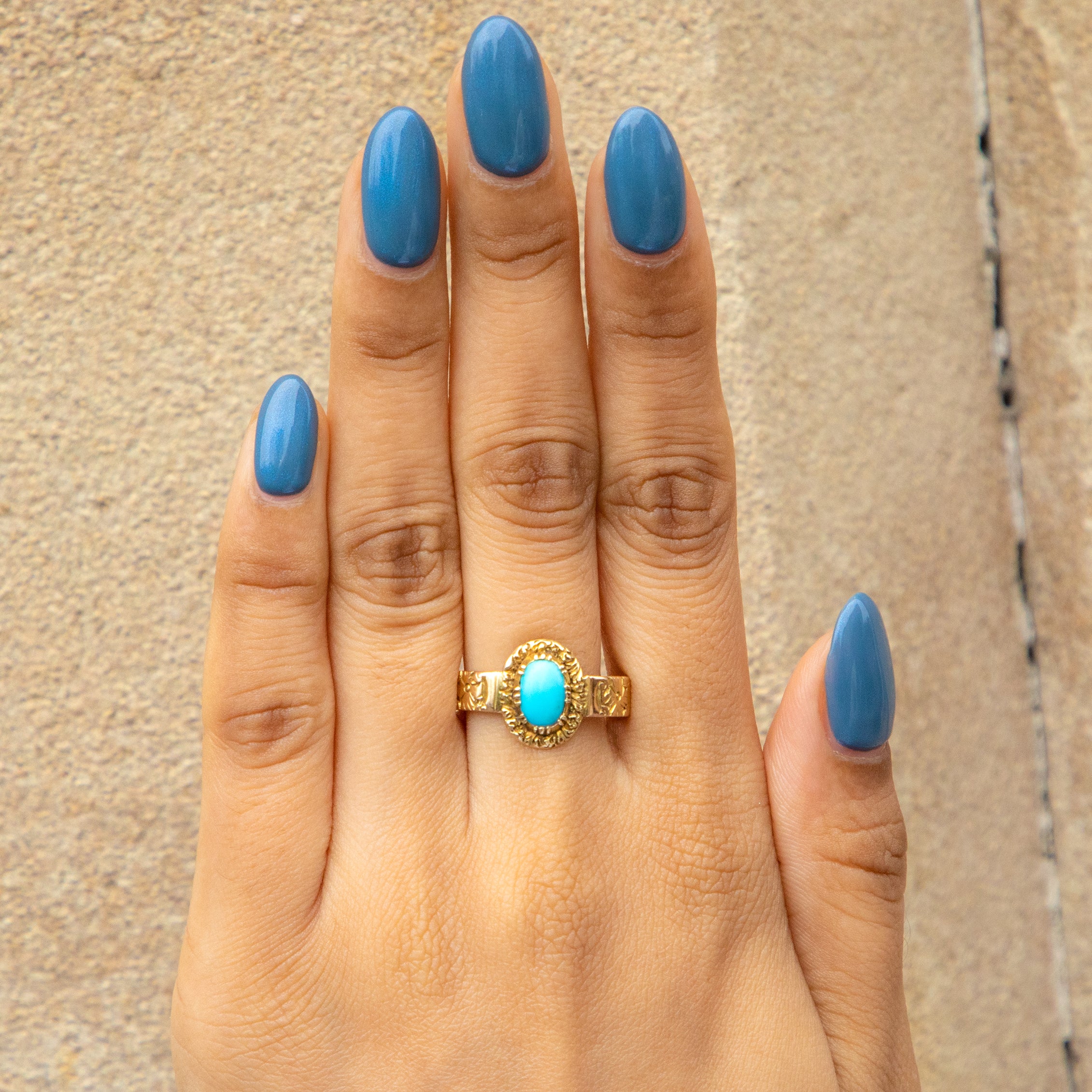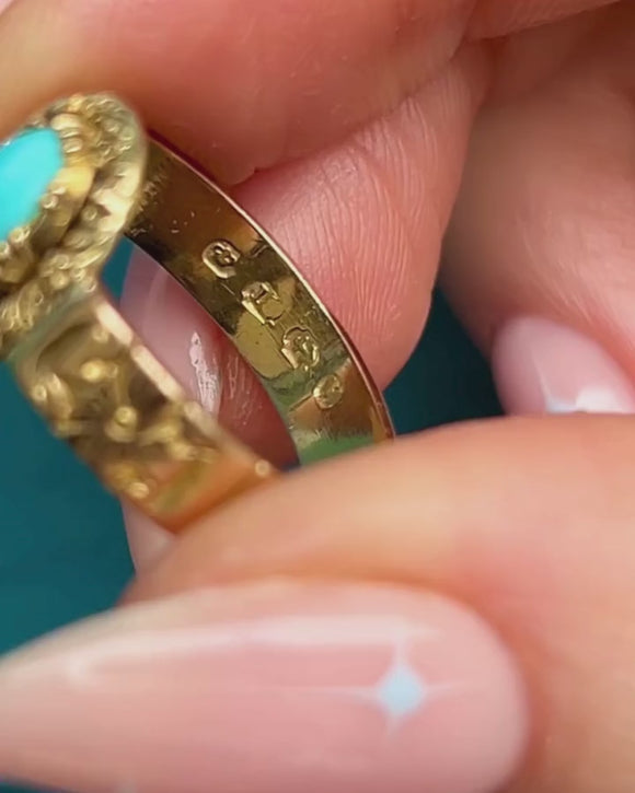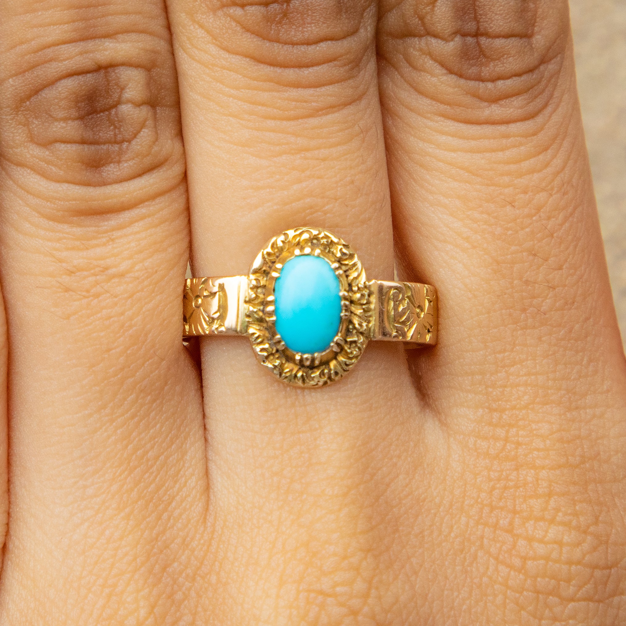 初期ヴィクトリア朝 18金 ターコイズ オレンジブロッサム リング