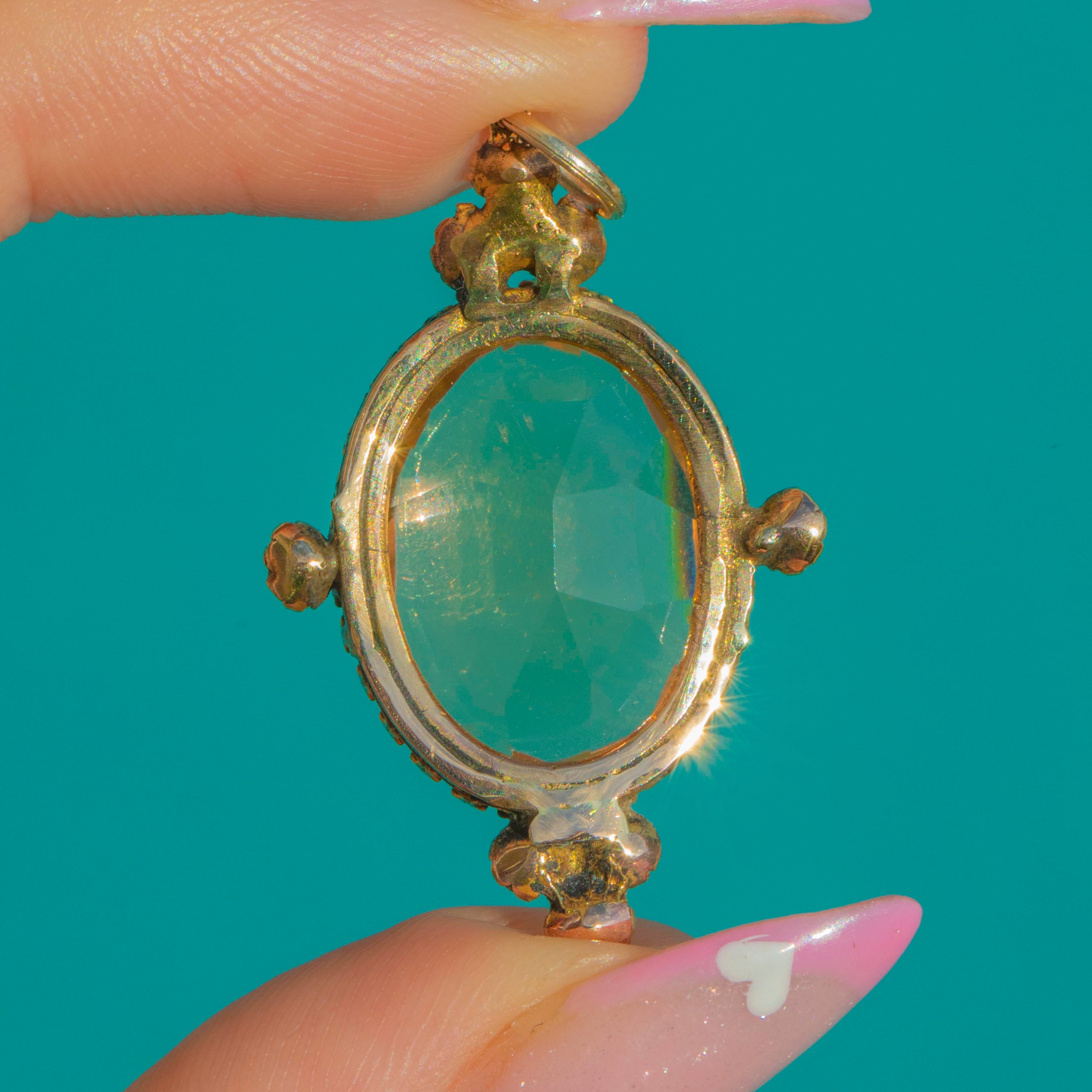 EXCELLENT: The Pastes are bright and well preserved, with lovely colour and sparkle. The setting and jump ring remain secure with only minimal age-related wear.