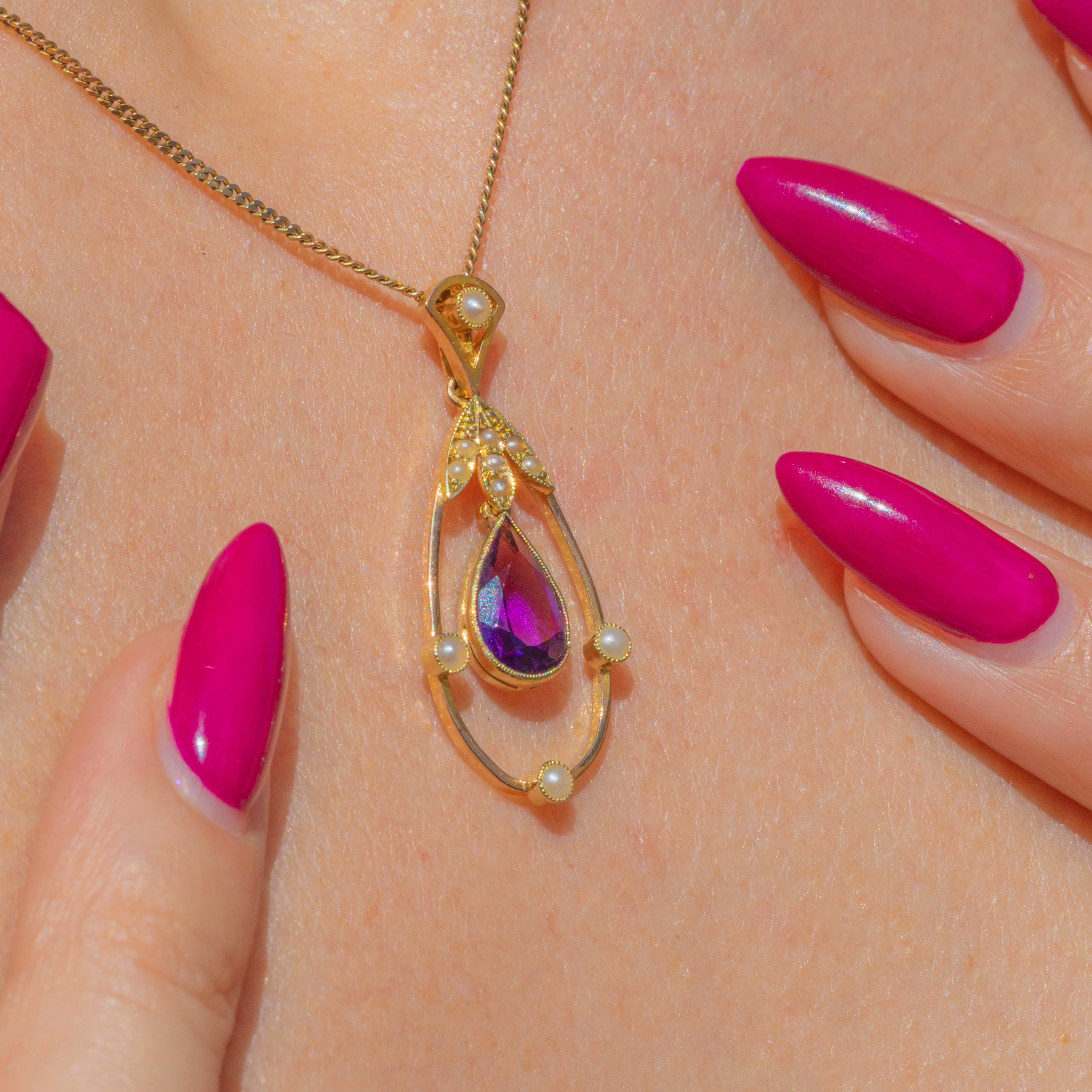 Edwardian 15ct Gold Amethyst Pearl Pendant