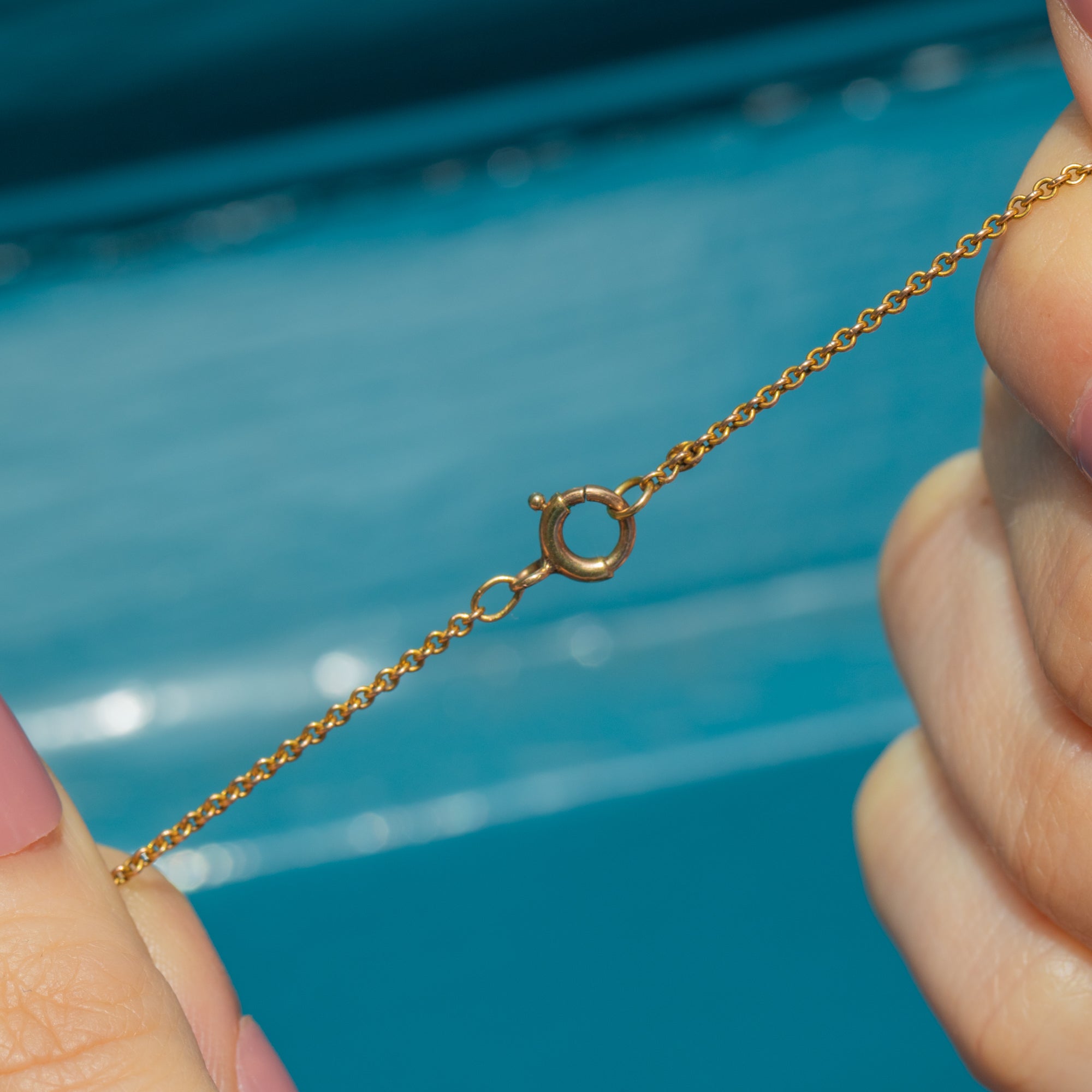 The integral design of this antique blue Zircon necklace is quintessentially Edwardian, with her modest drop providing great fluidity with any outfit you pair her with. With a fine Gold chain to fasten around your neck, her splendour preserves from every angle, whilst her blue Zircon drop still remains the focal point!