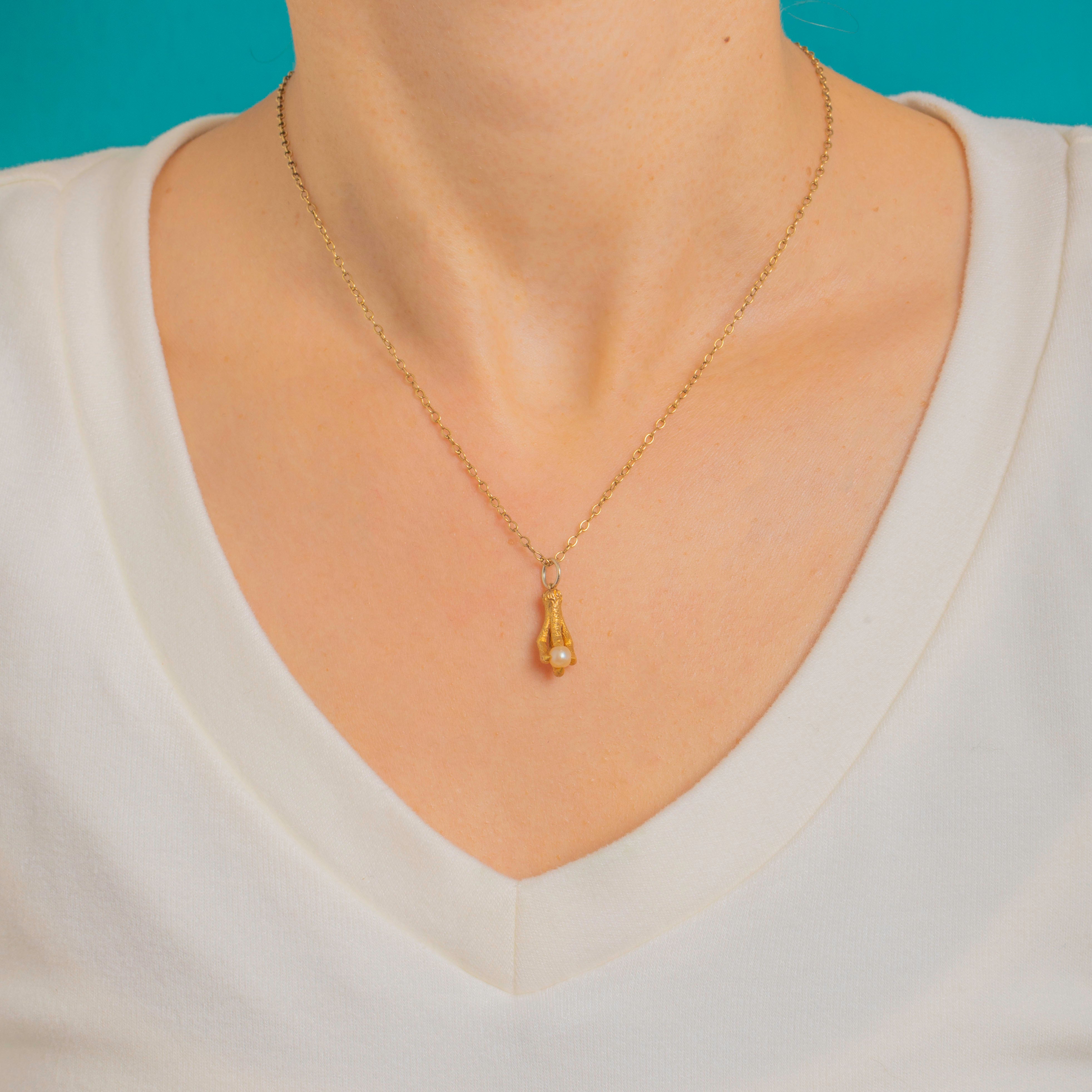 Edwardian 15ct Gold Eagle Claw Pearl Charm
