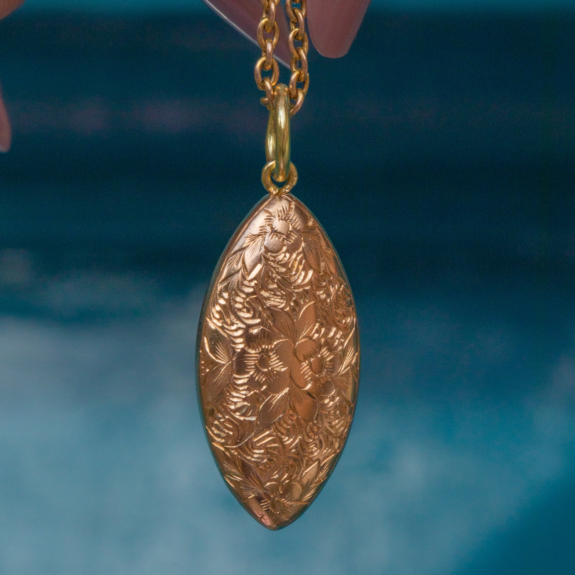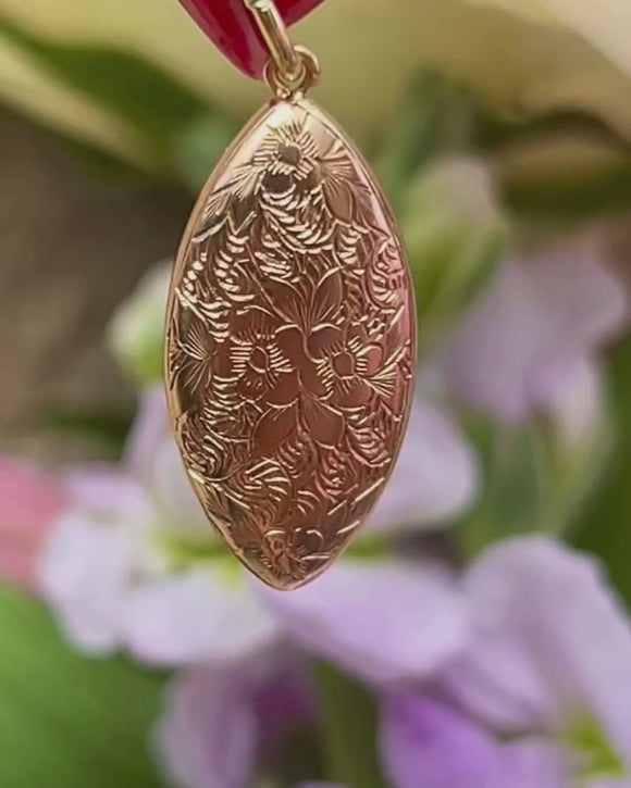EXCELLENT. We are pleased to present this Edwardian 15ct Gold floral engraved pendant in excellent condition. The engravings are sharp and her form has held up well throughout the years. You won't be able to keep your hands off this antique pendant from the moment she is in your possession!