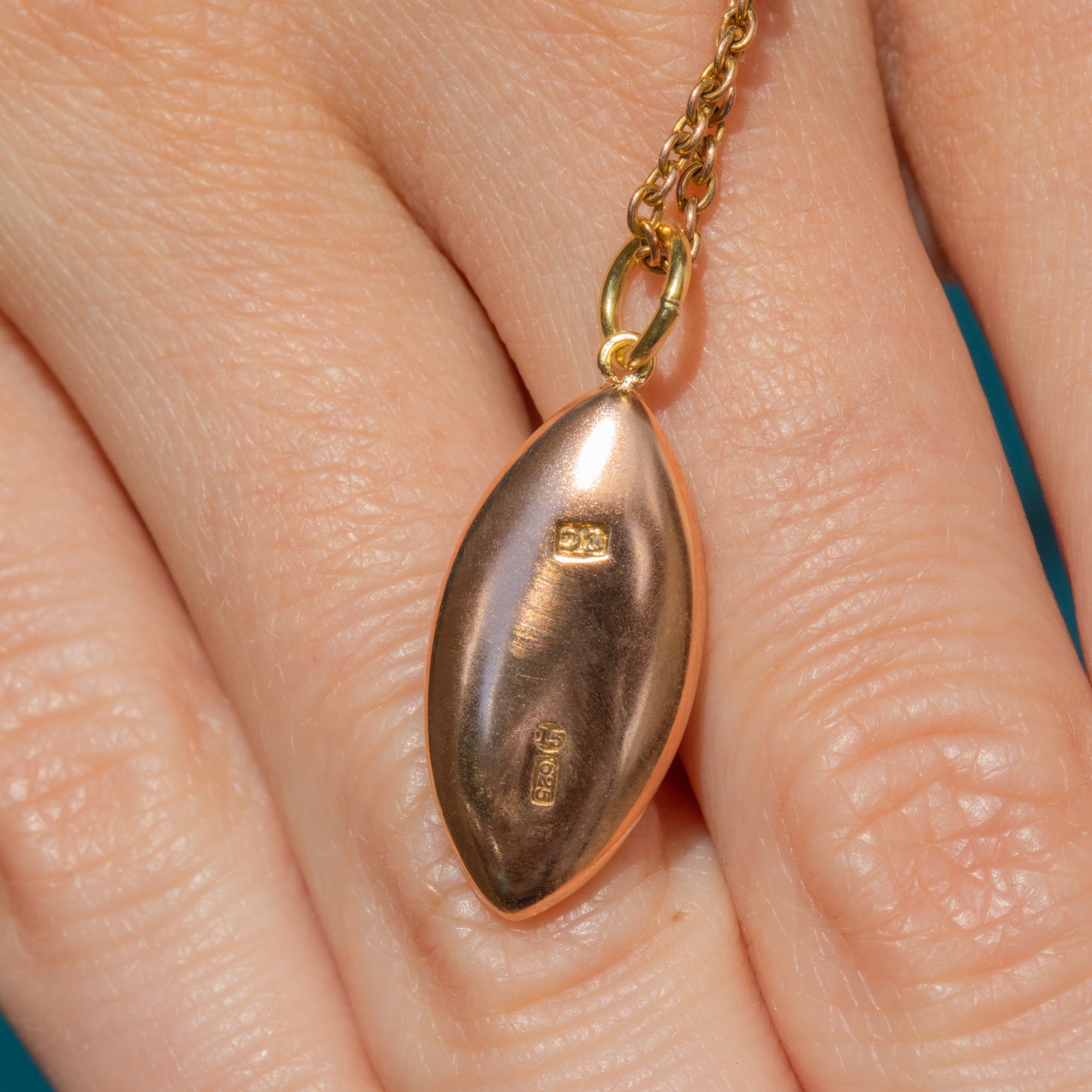 STAMPS: '15', '.625' & 'E.C' Makers Mark on back of pendant.