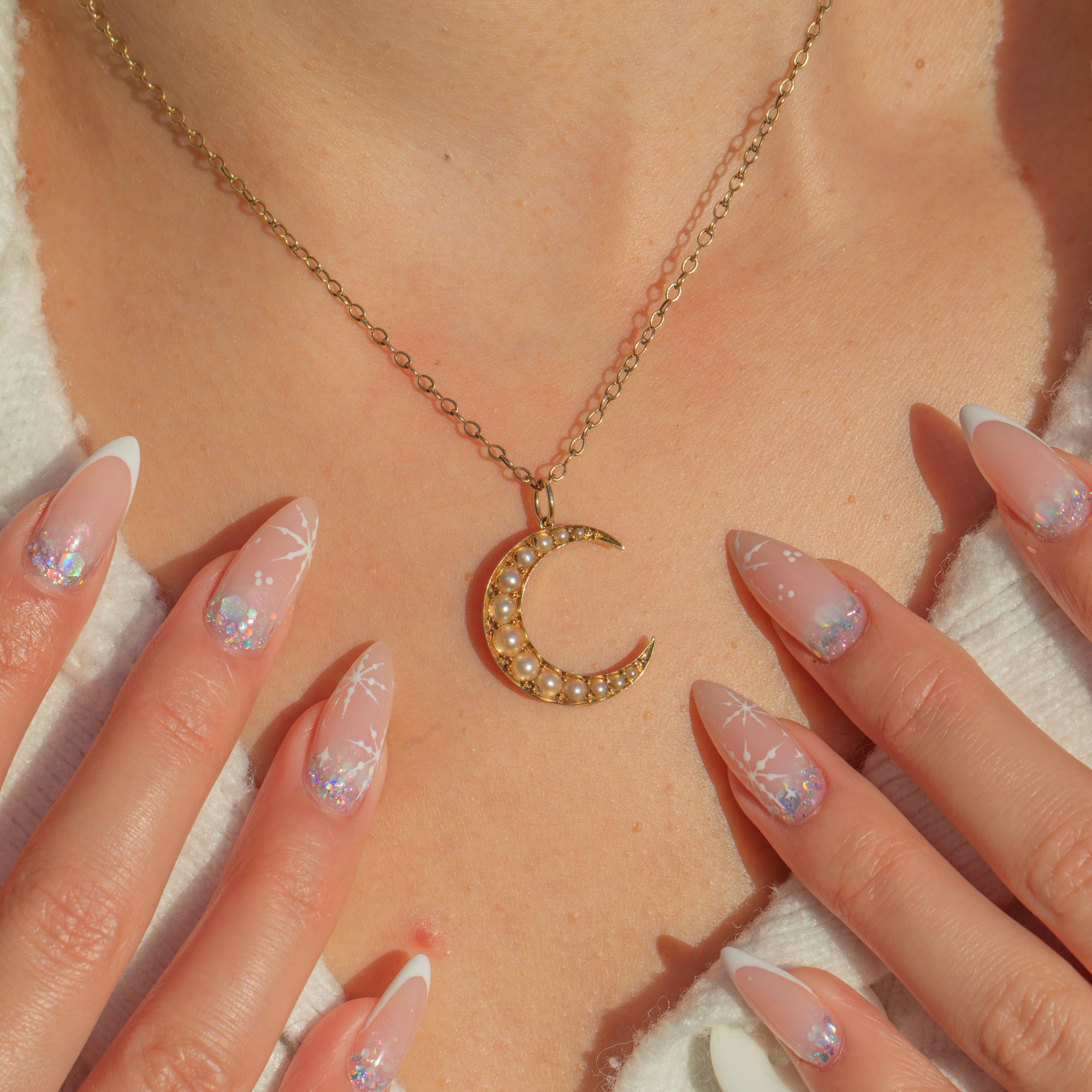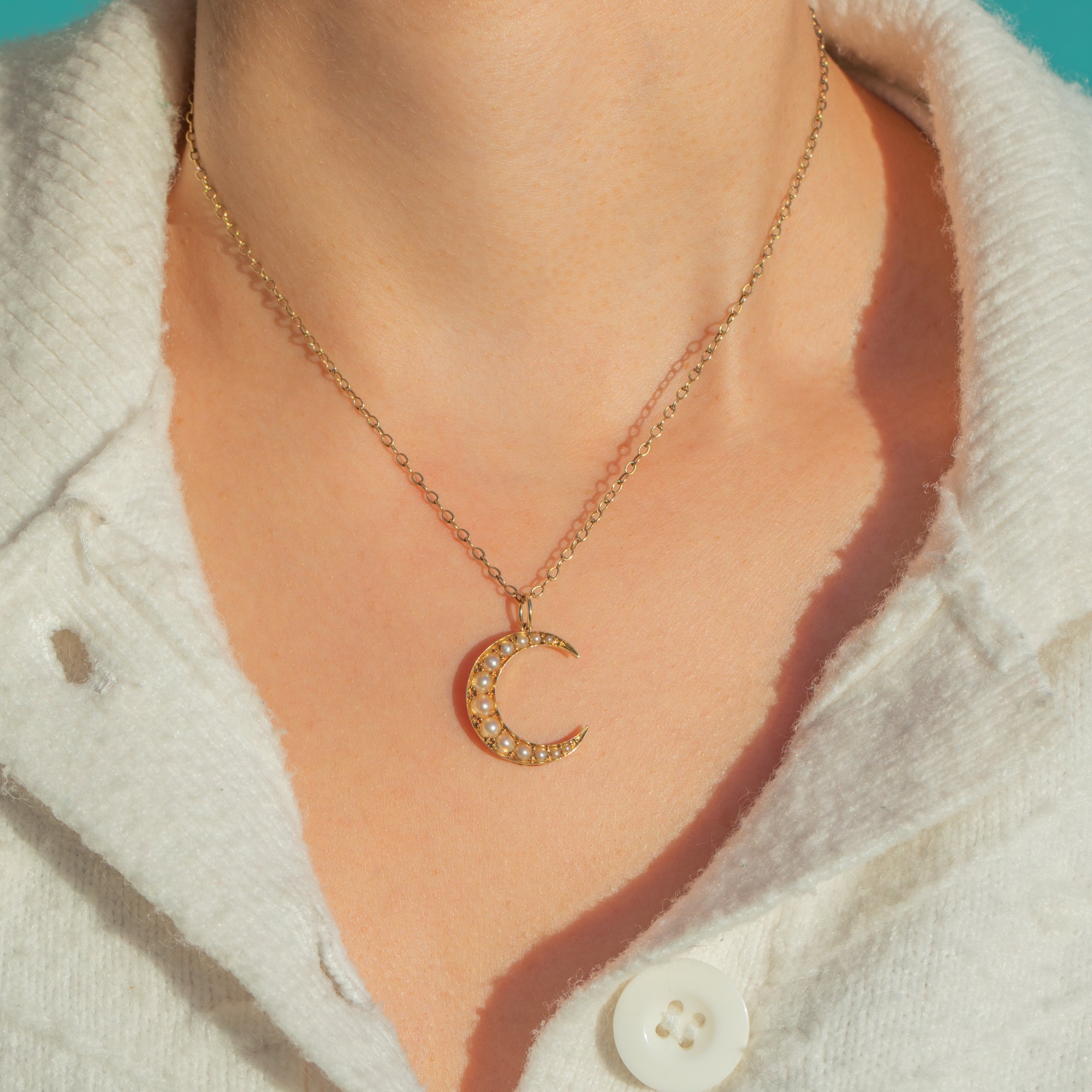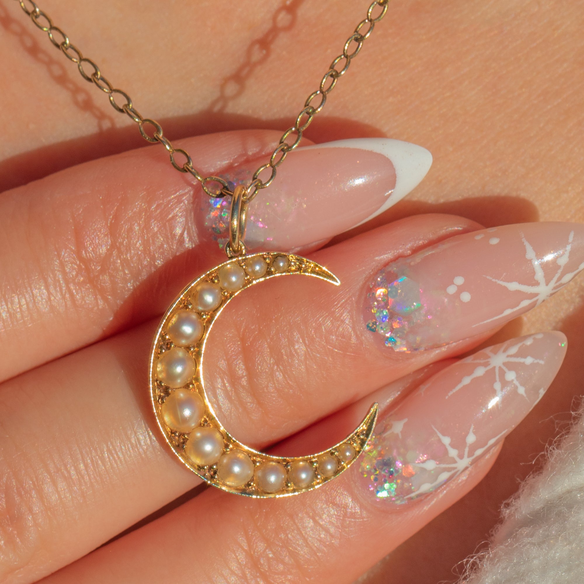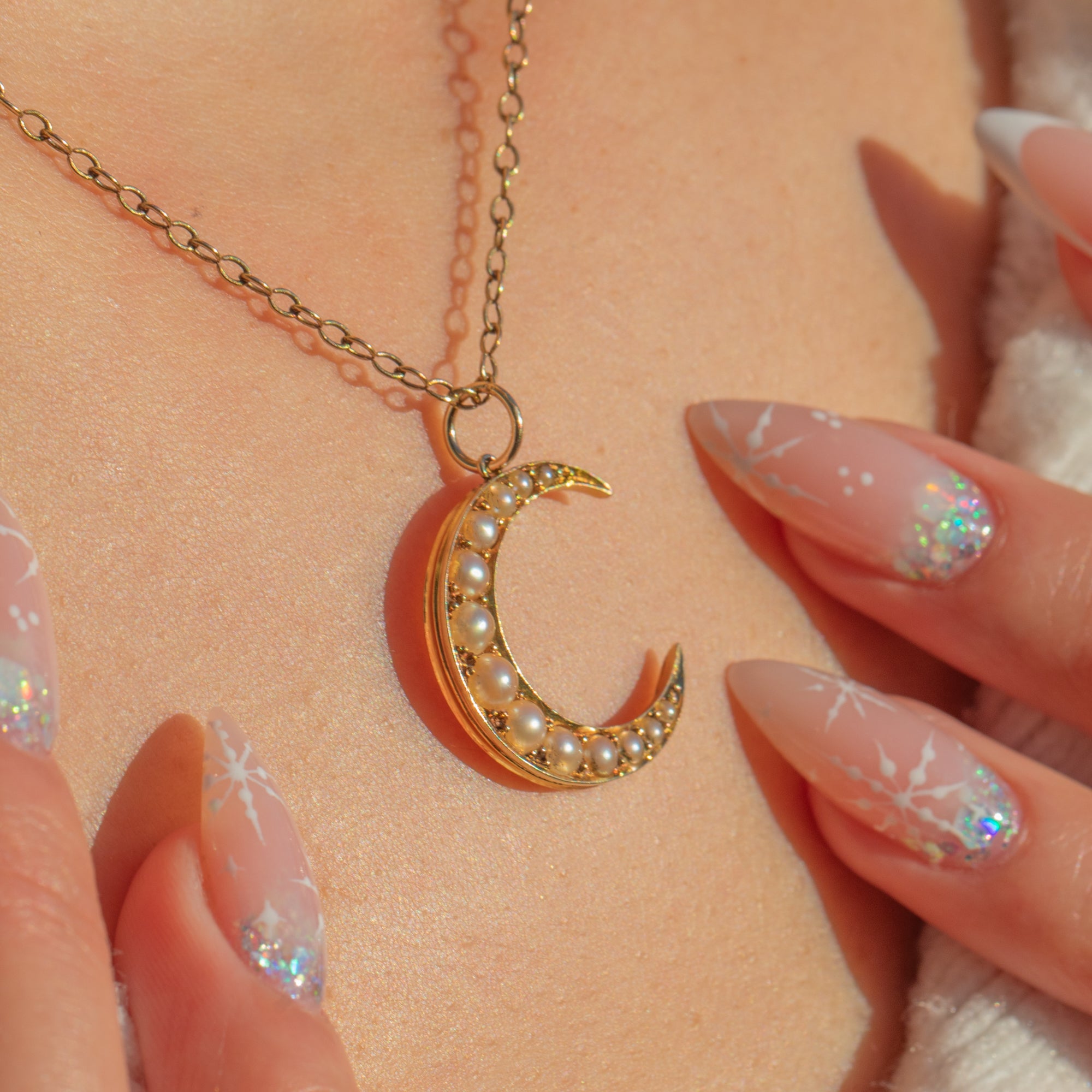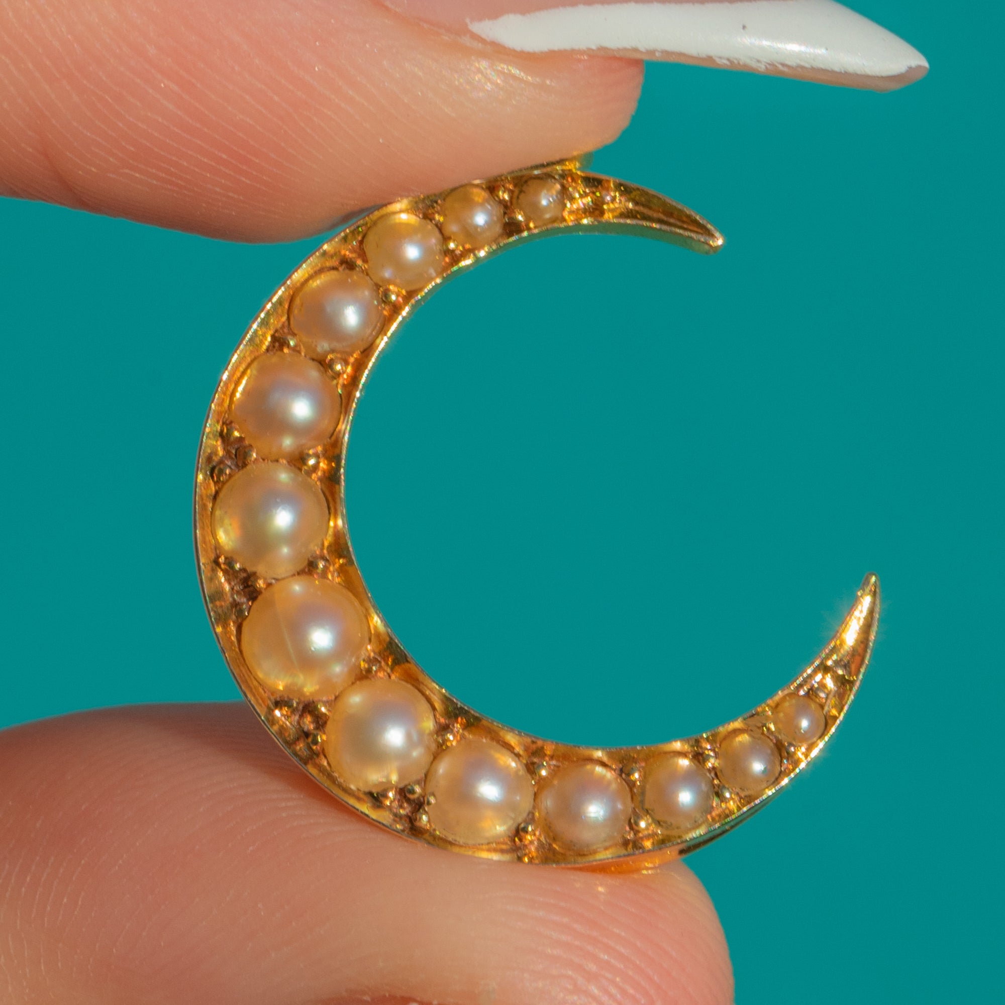 エドワーディアン 15ct ゴールド パール クレセント チャーム
