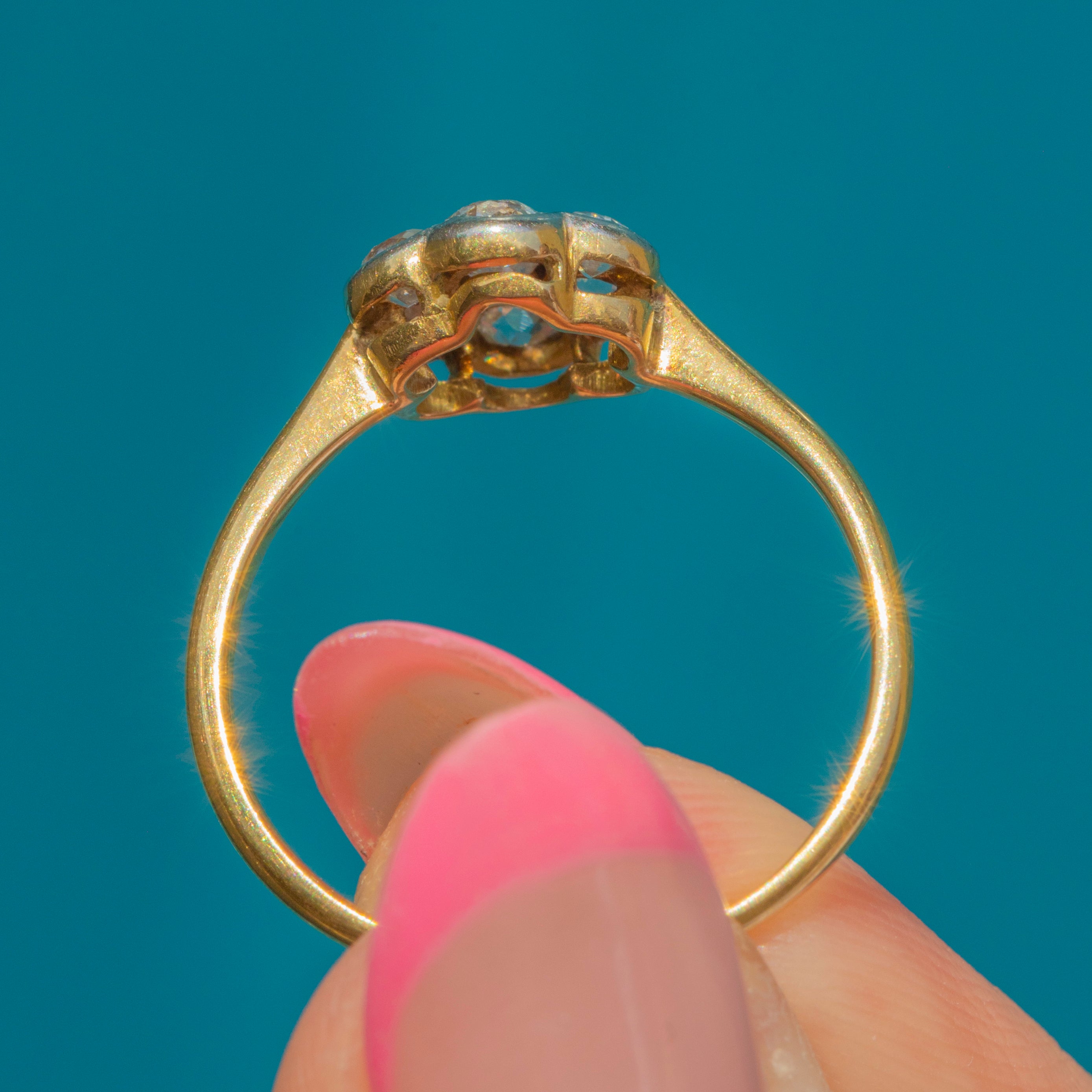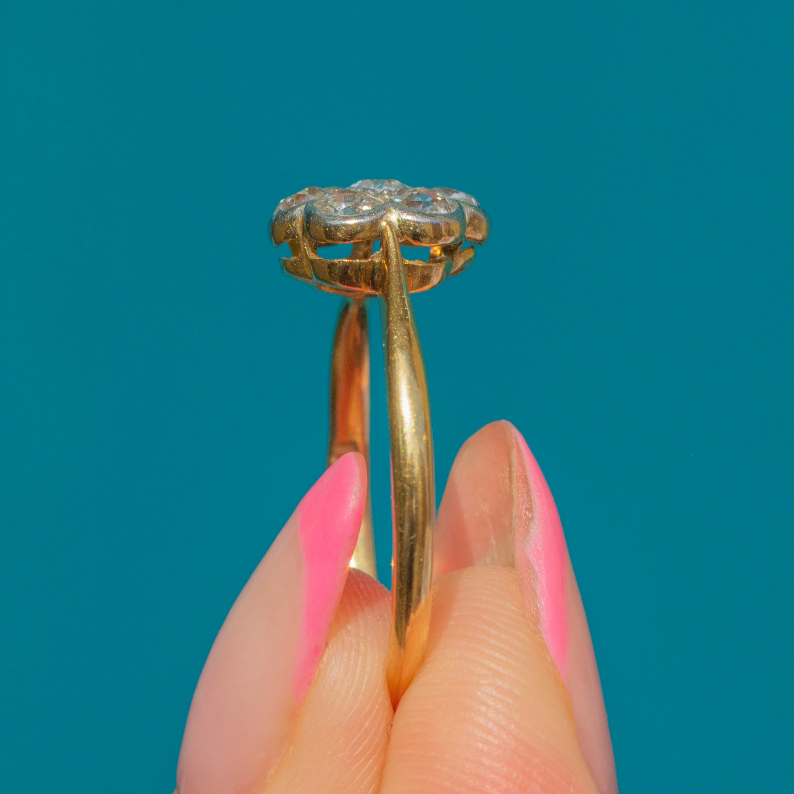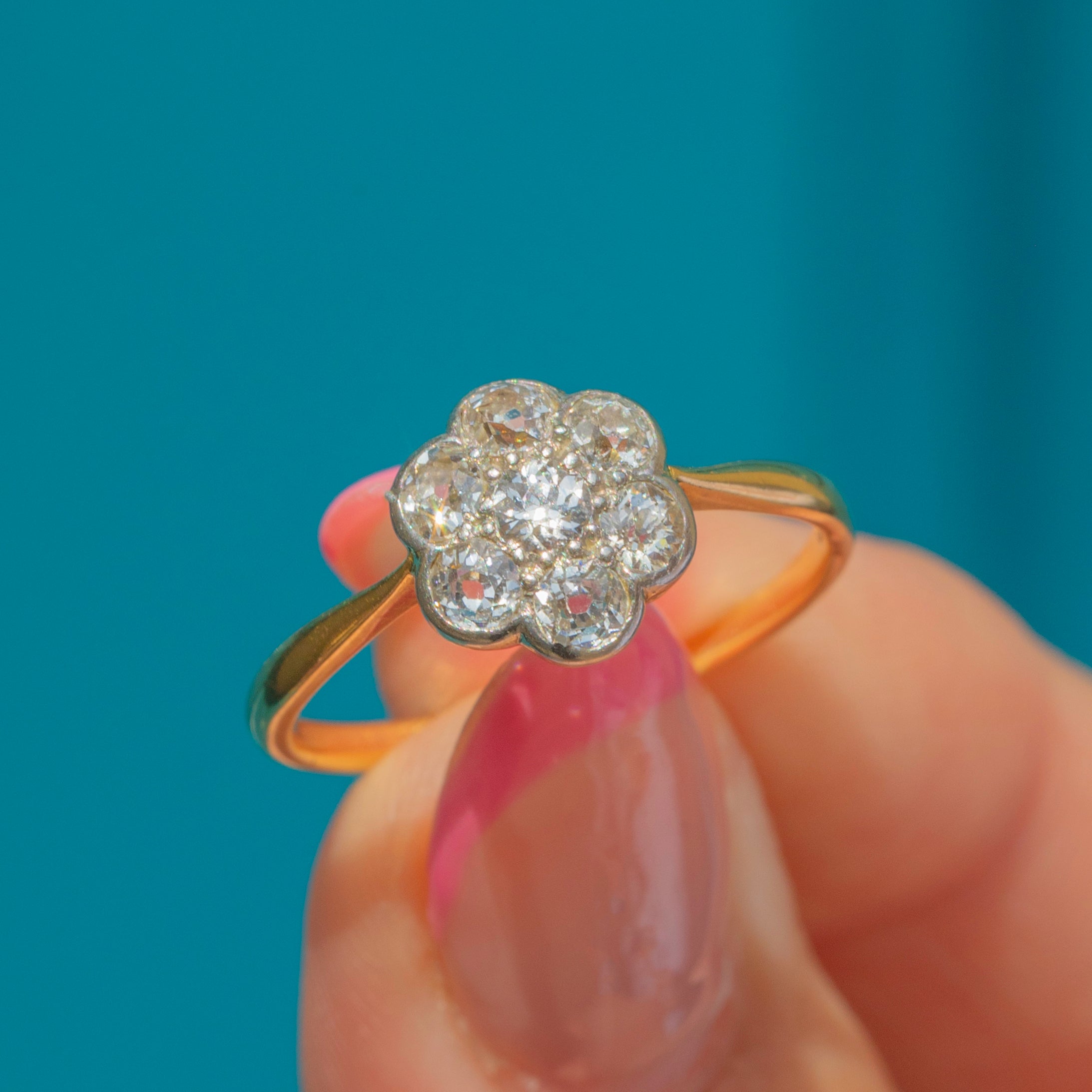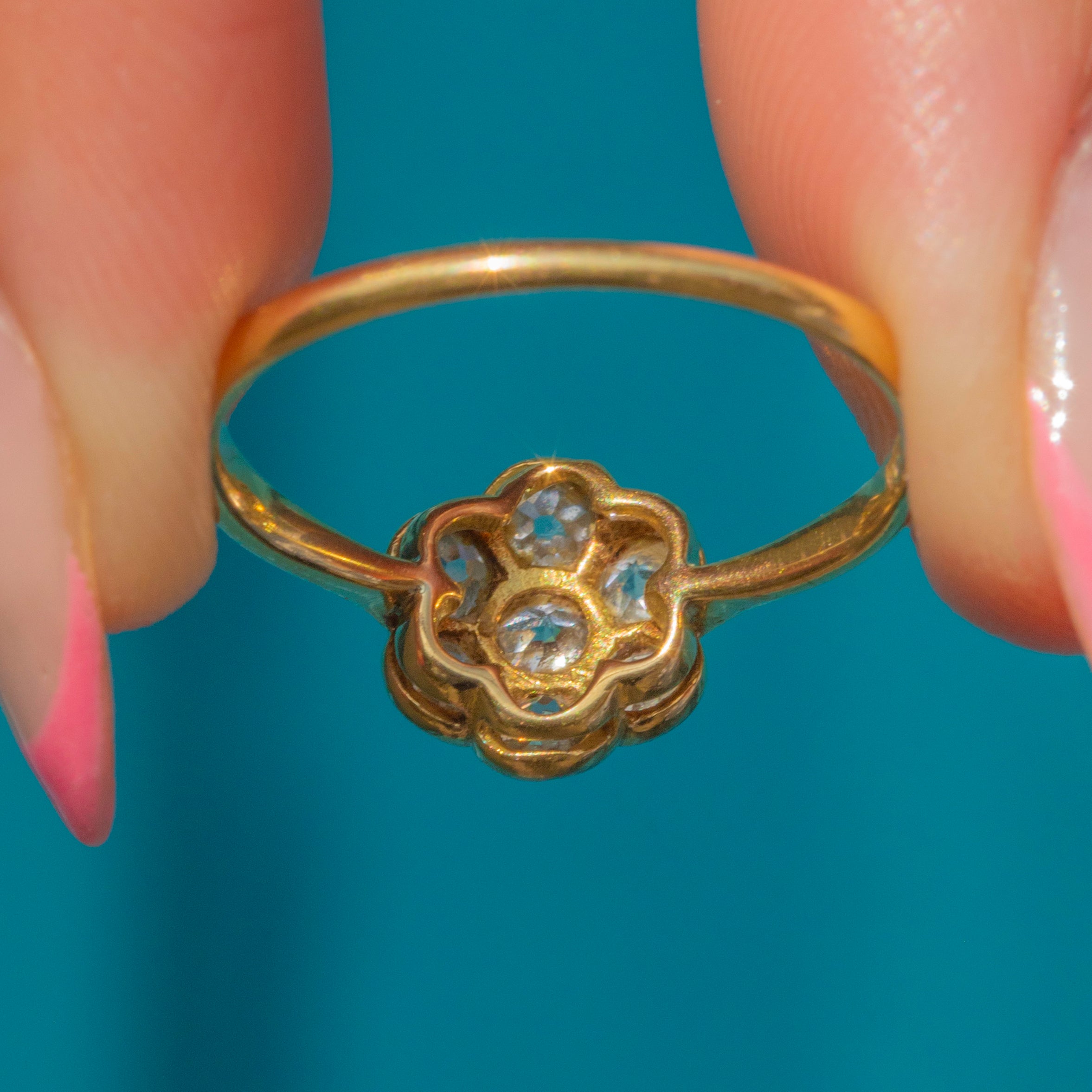 A dainty antique 18ct Gold diamond daisy ring for your collection!