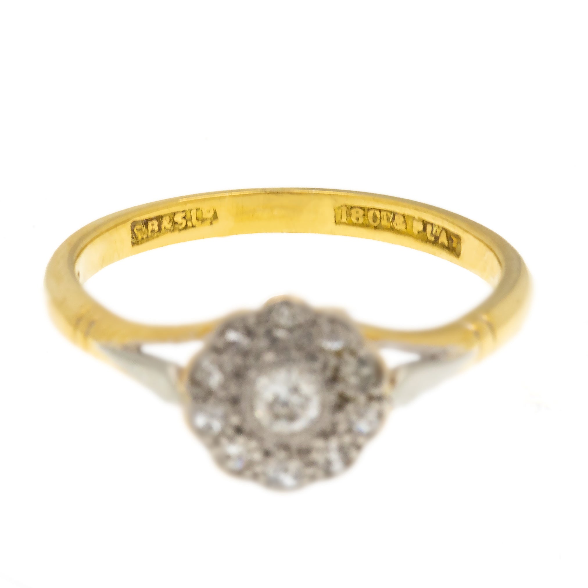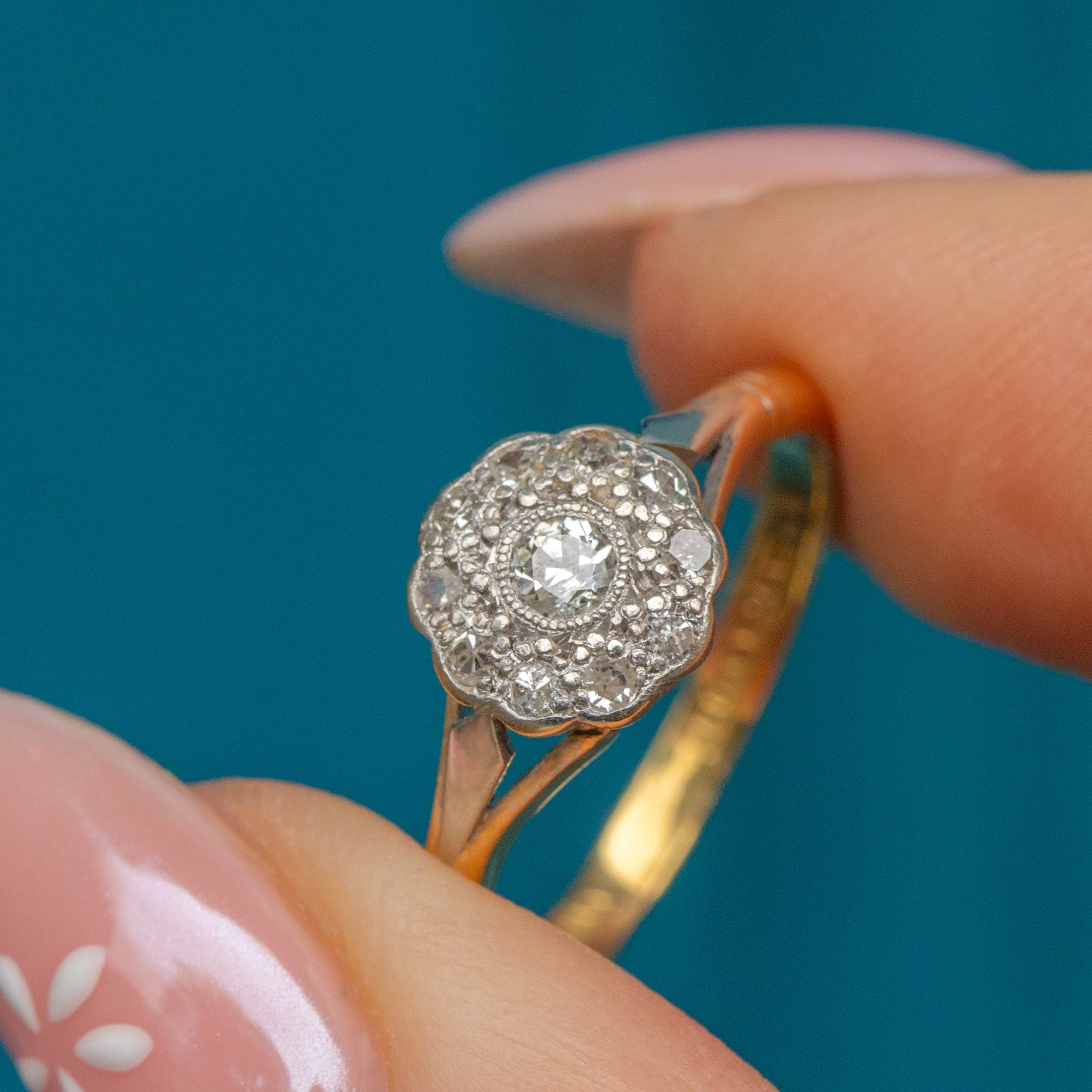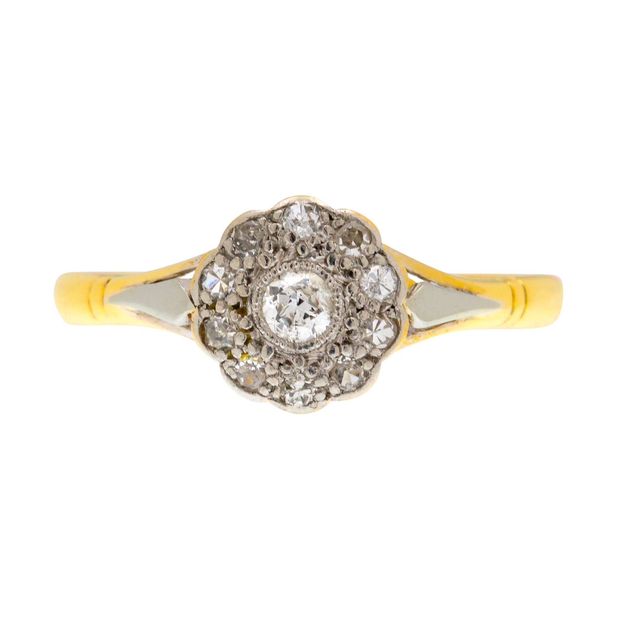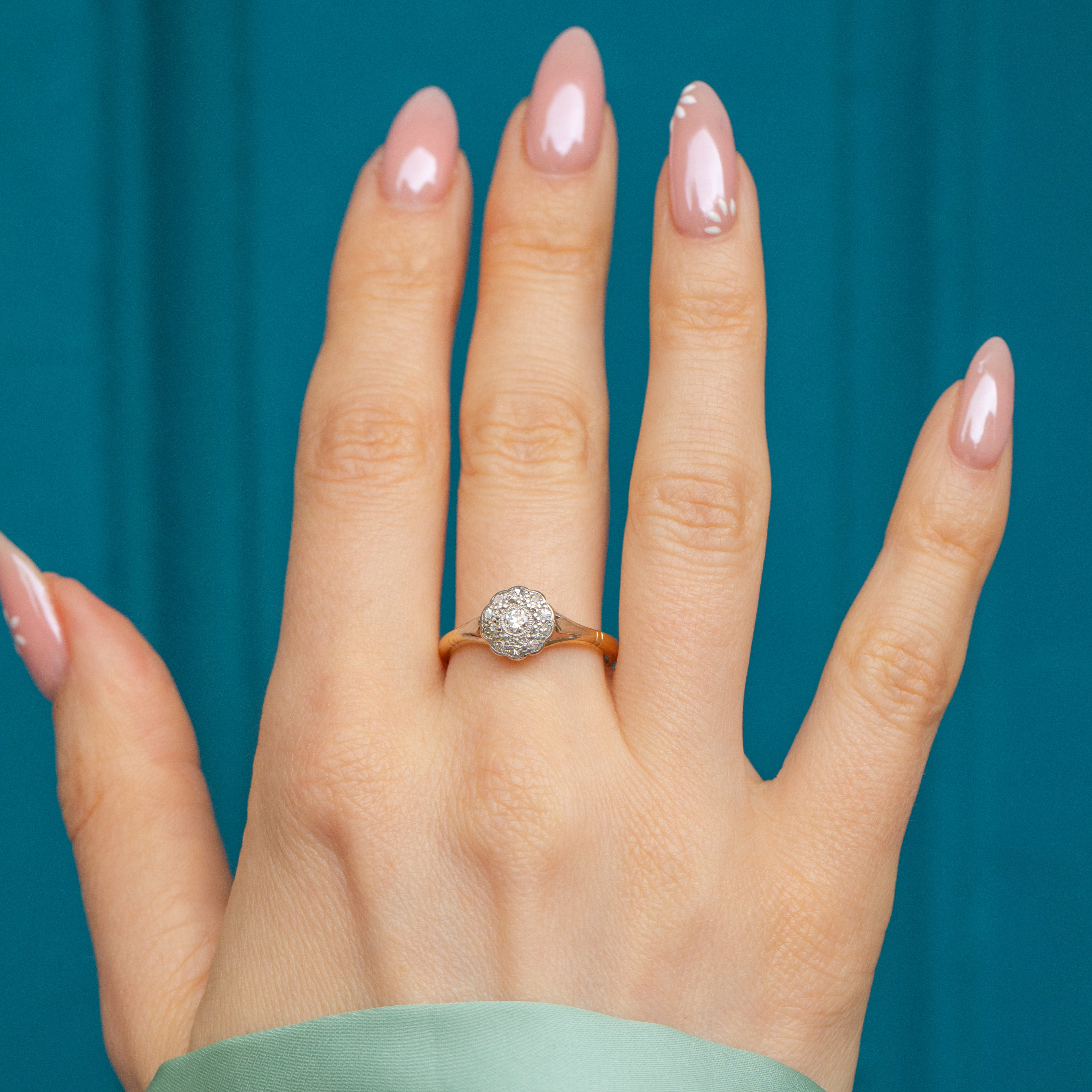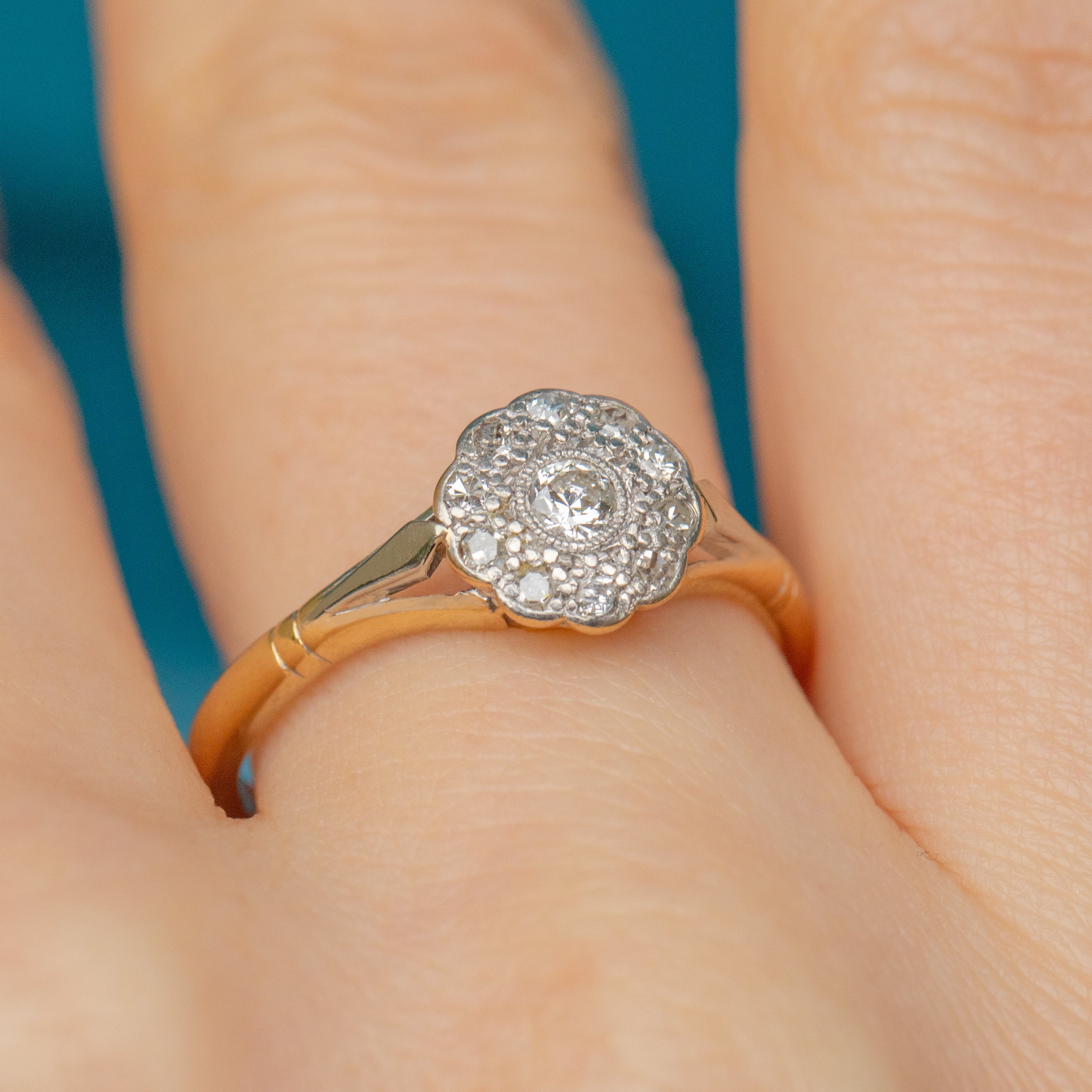 エドワーディアン 18ct ゴールド ダイヤモンド デイジークラスターリング、0.25ct