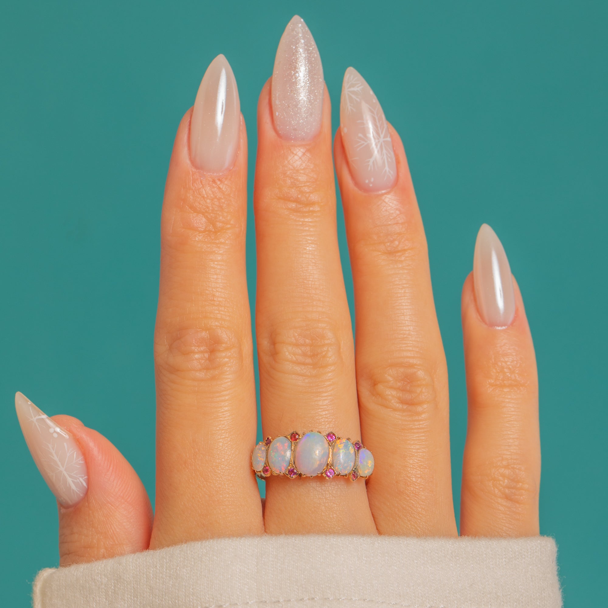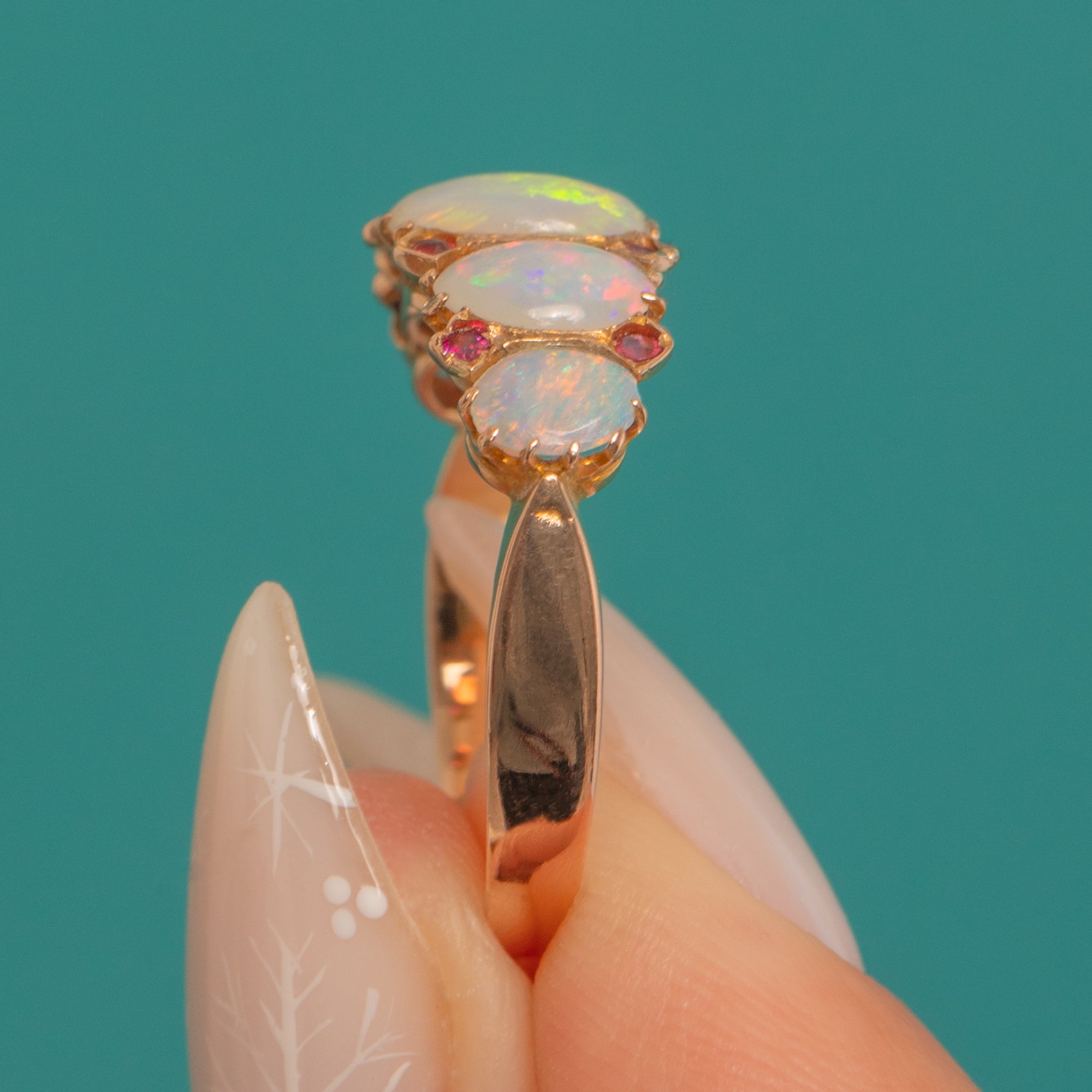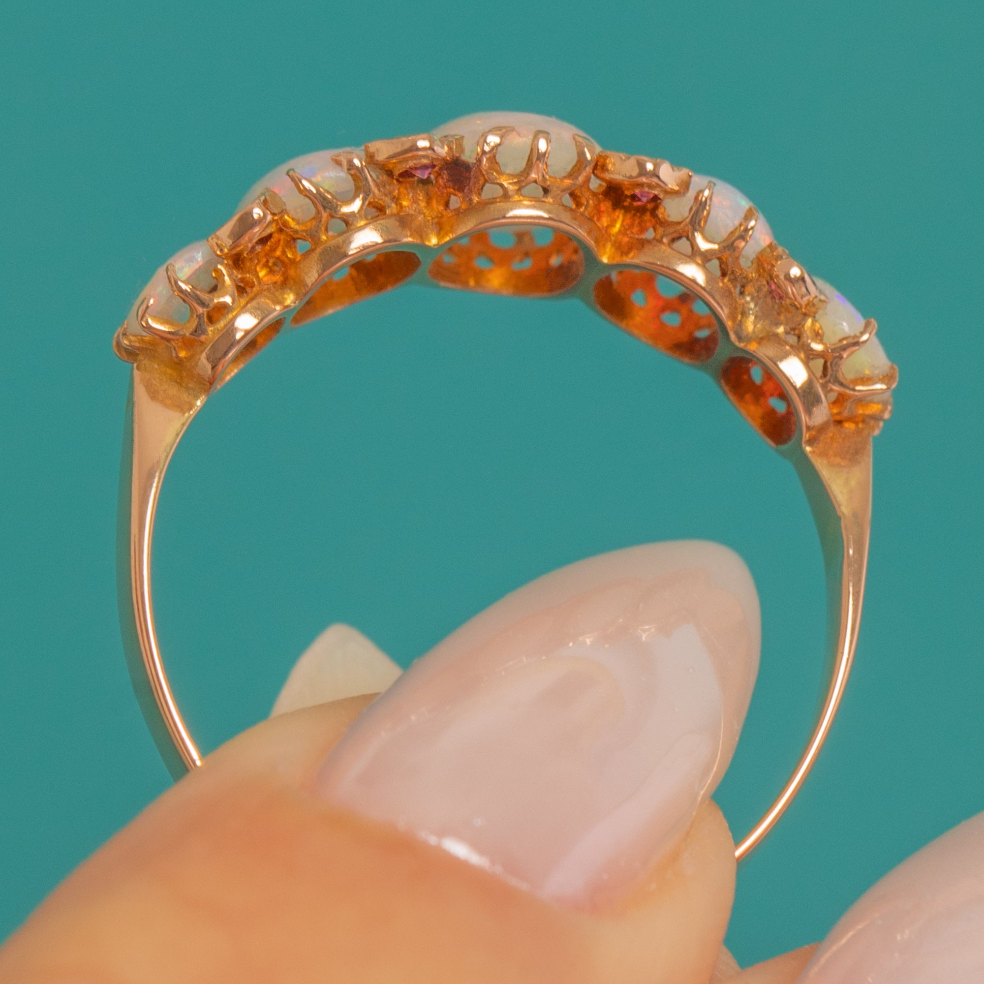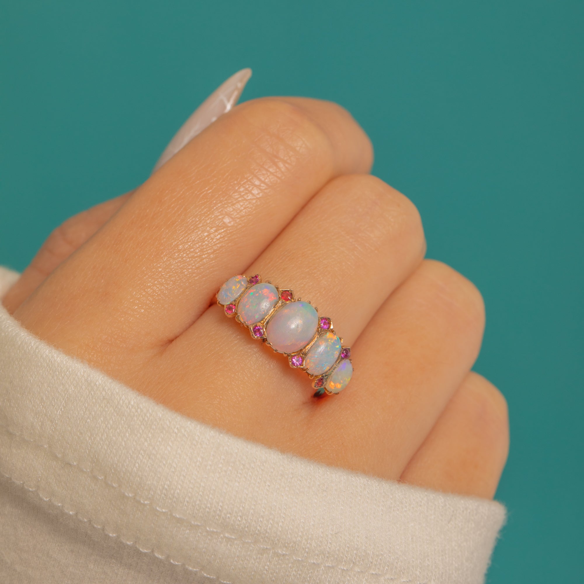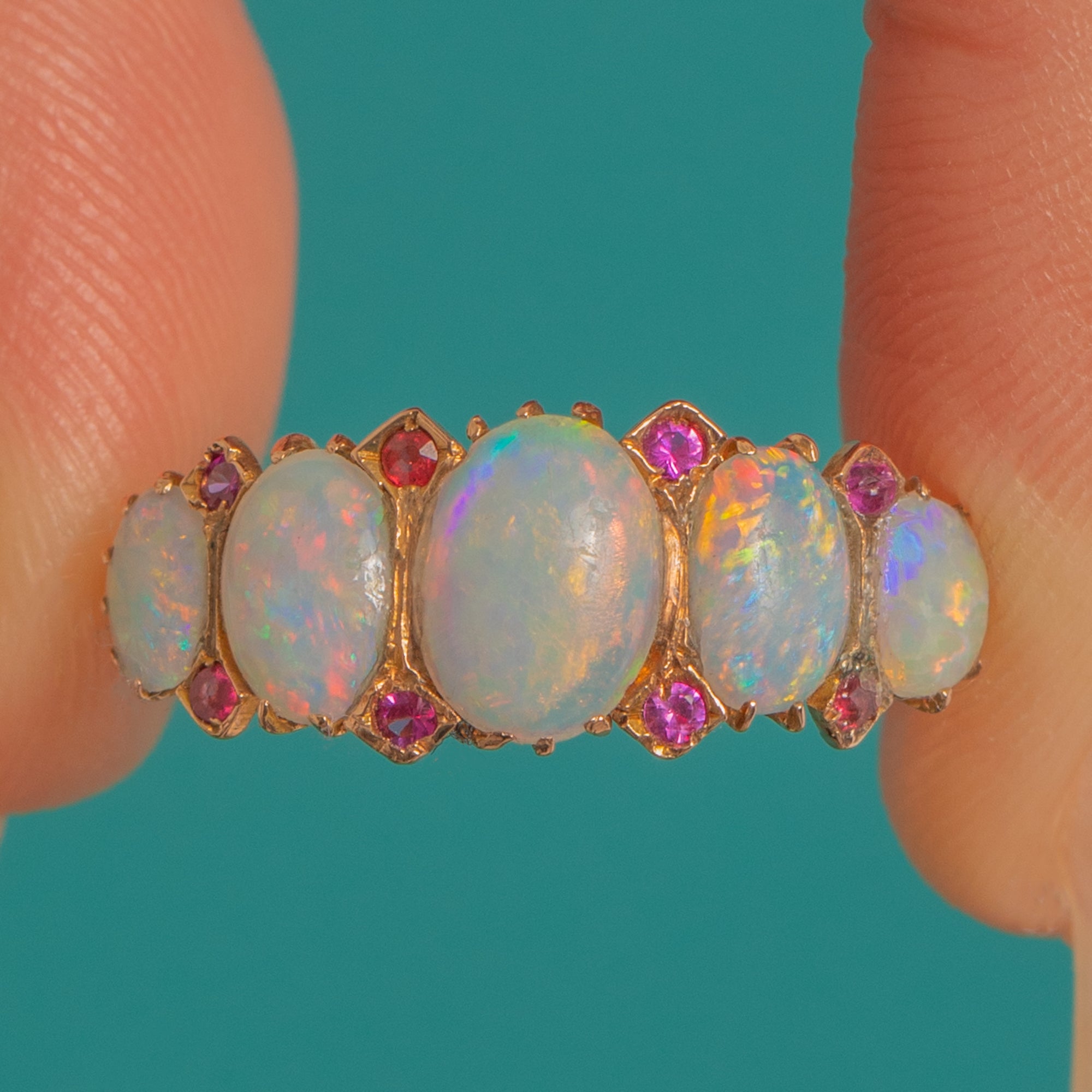 エドワーディアン 18ct ゴールド オパール ファイブストーン リング ルビー スペーサー付き