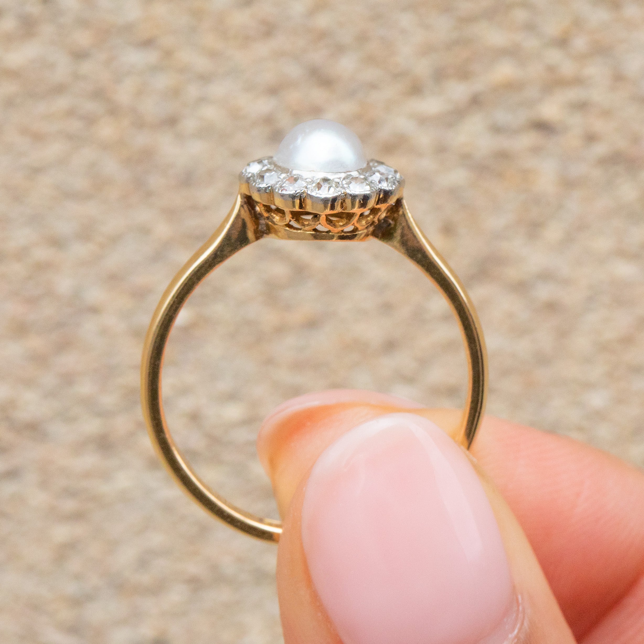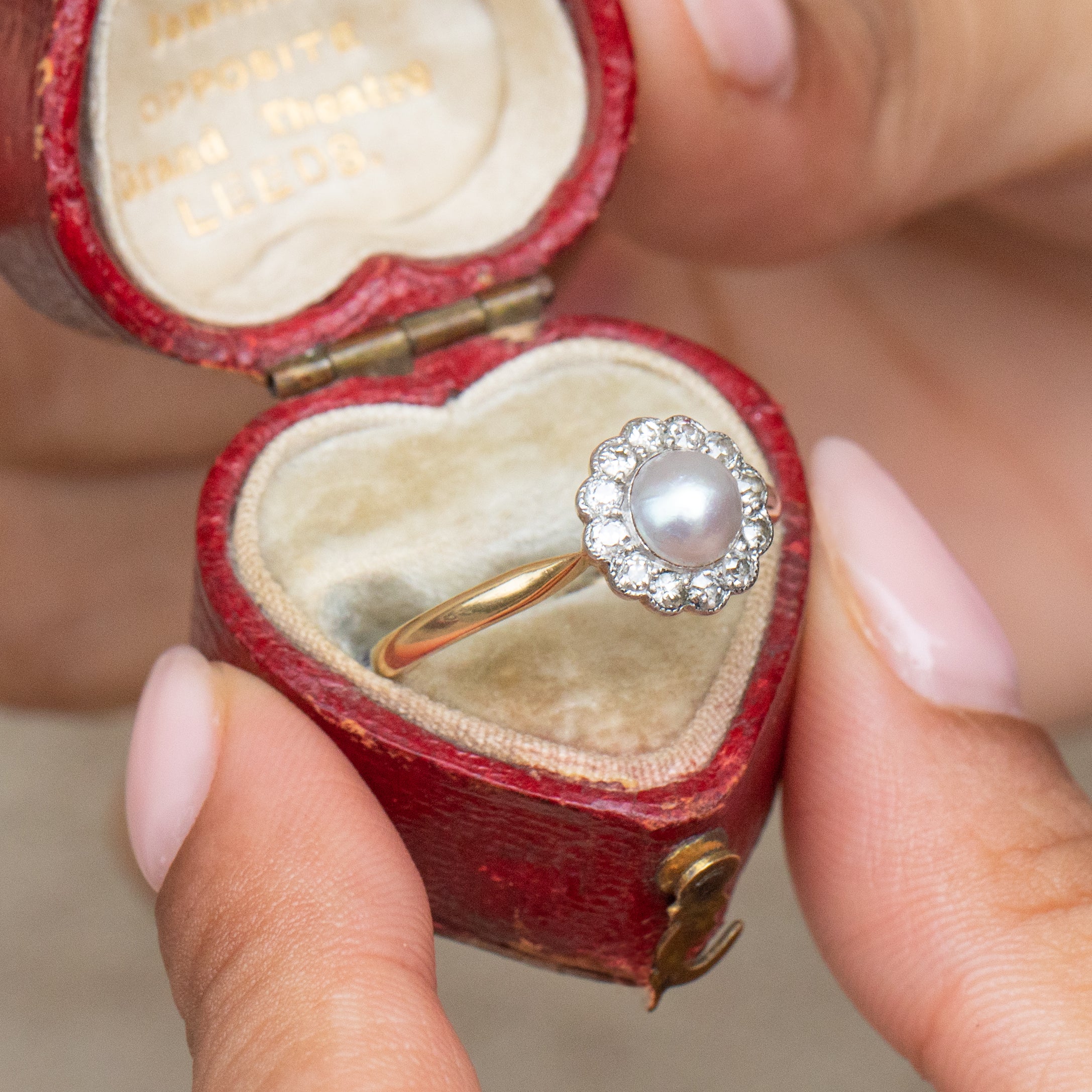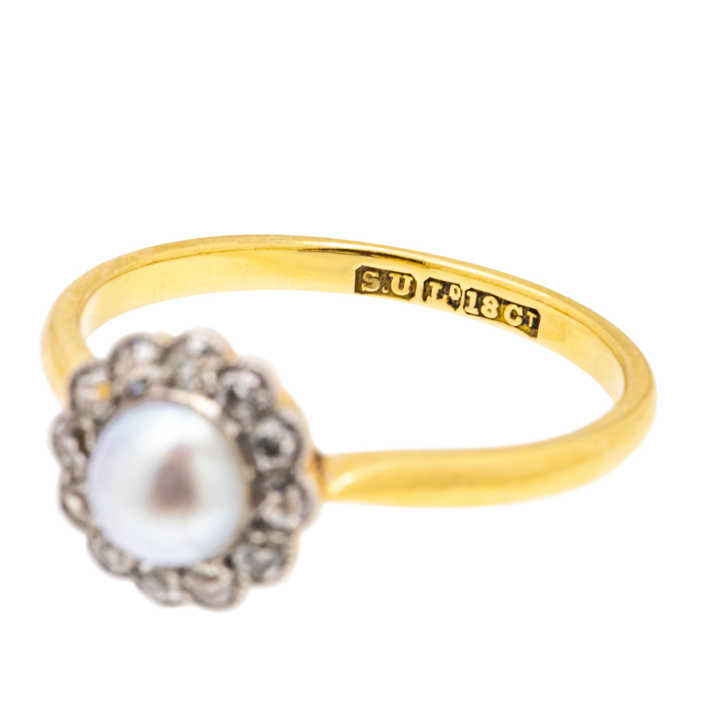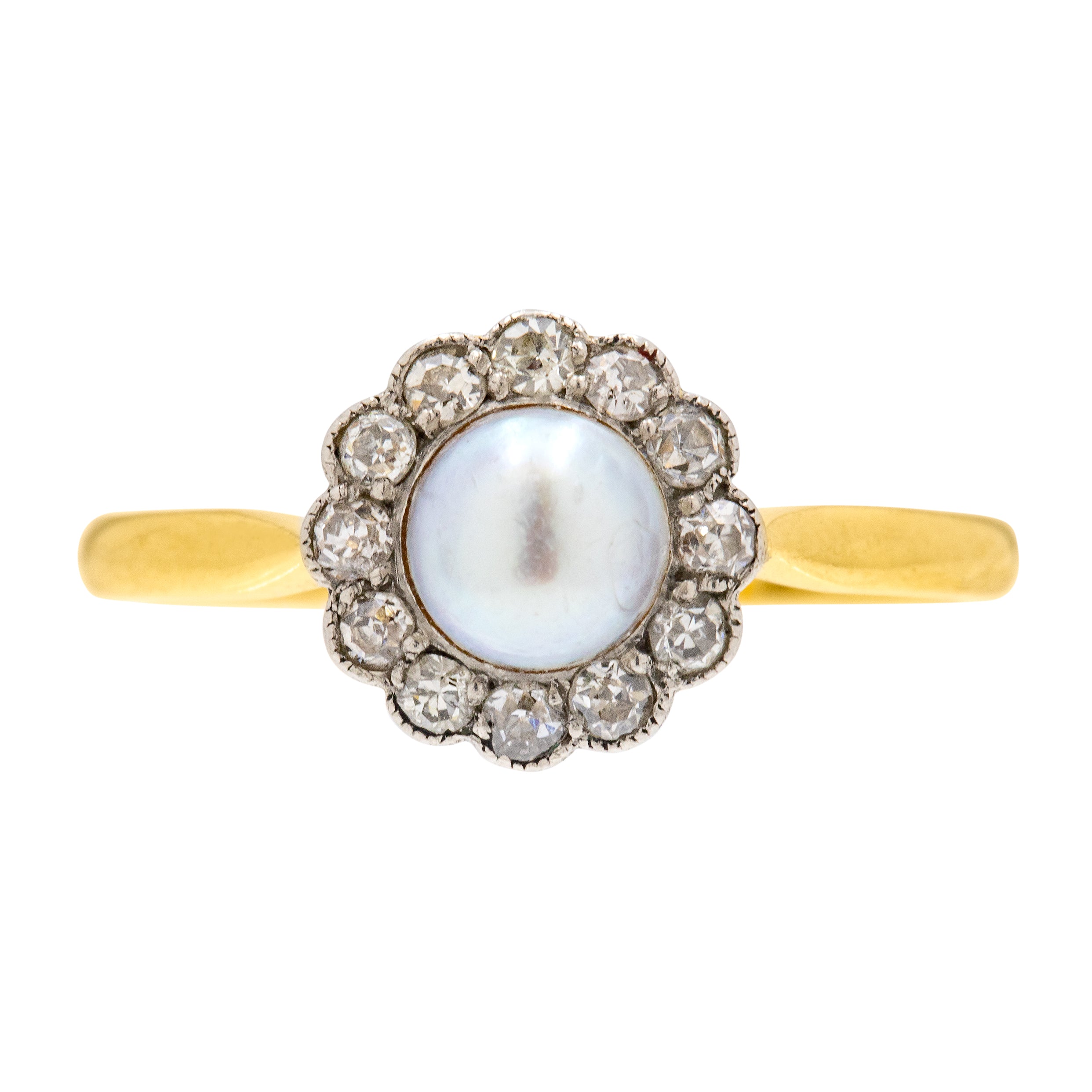 エドワーディアン 18ct ゴールド パール ダイヤモンド デイジー クラスター リング