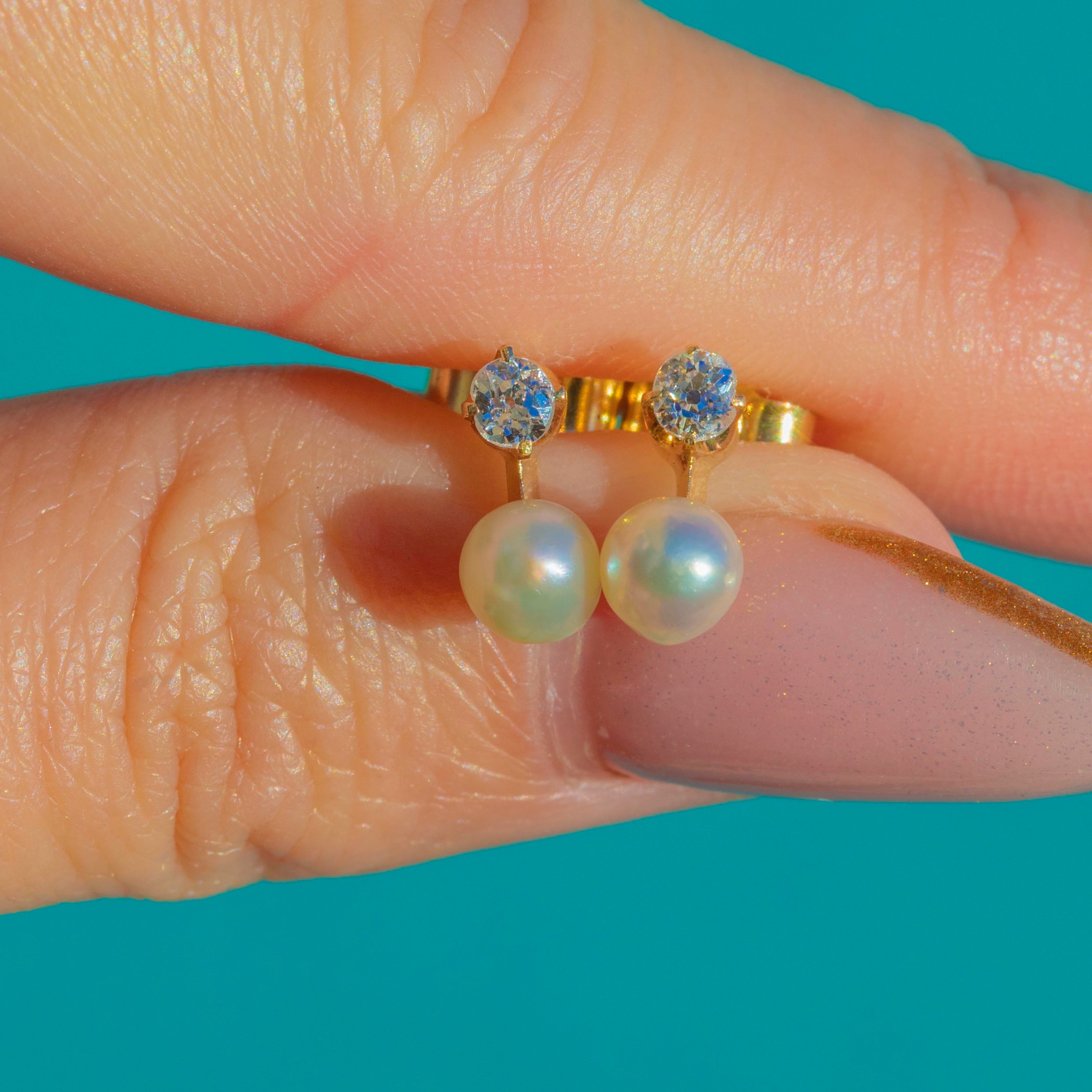 Edwardian 18ctゴールド パール ダイヤモンド スタッズ