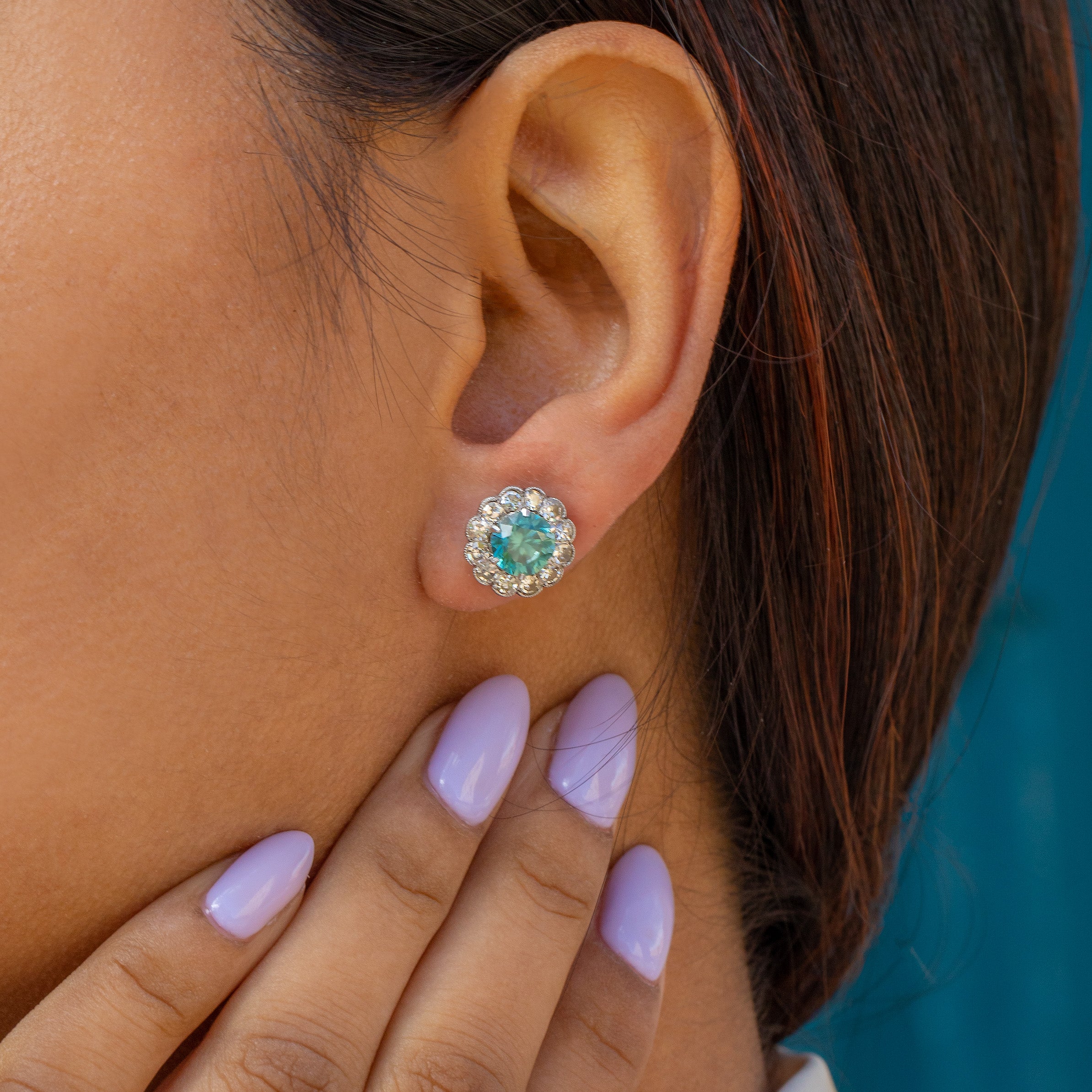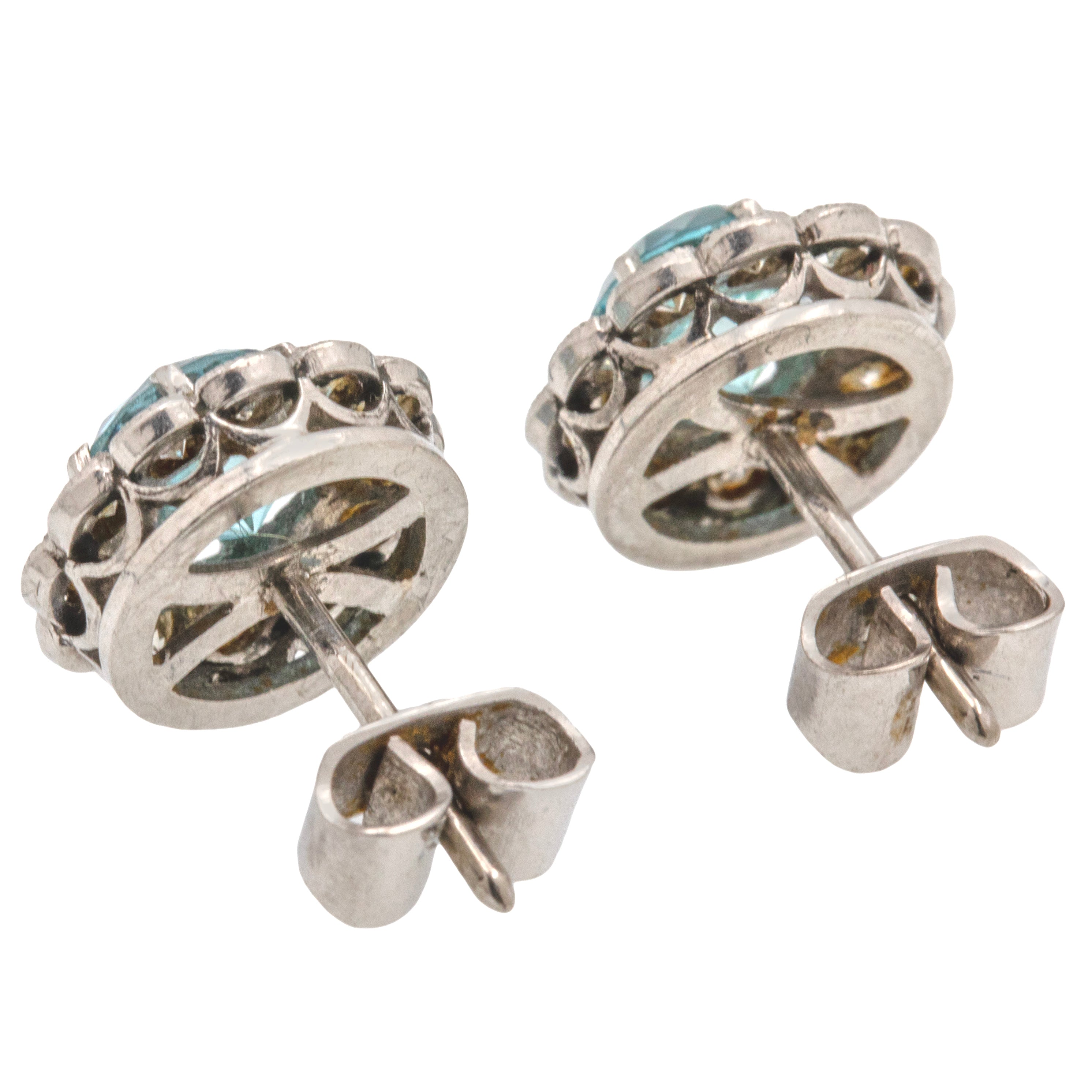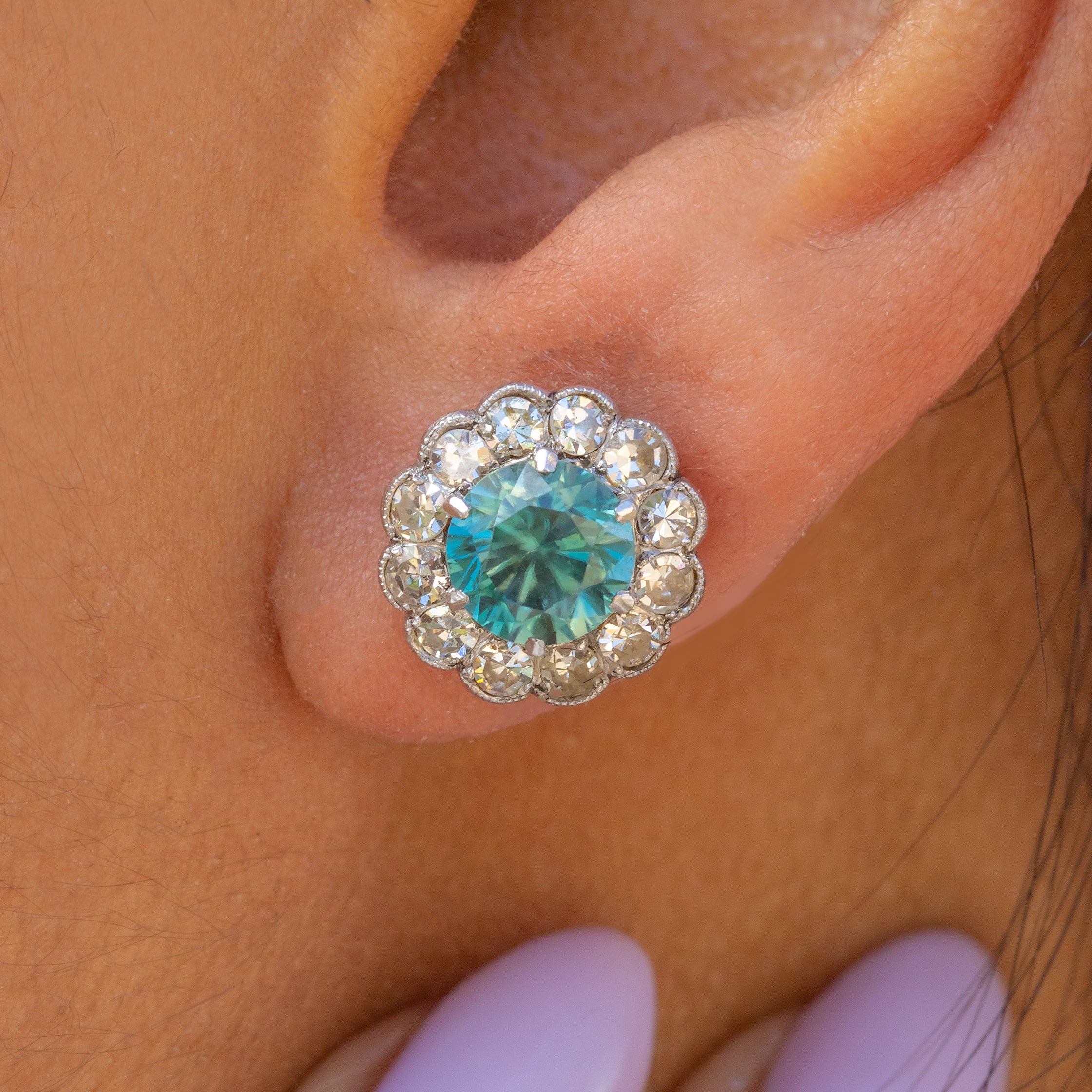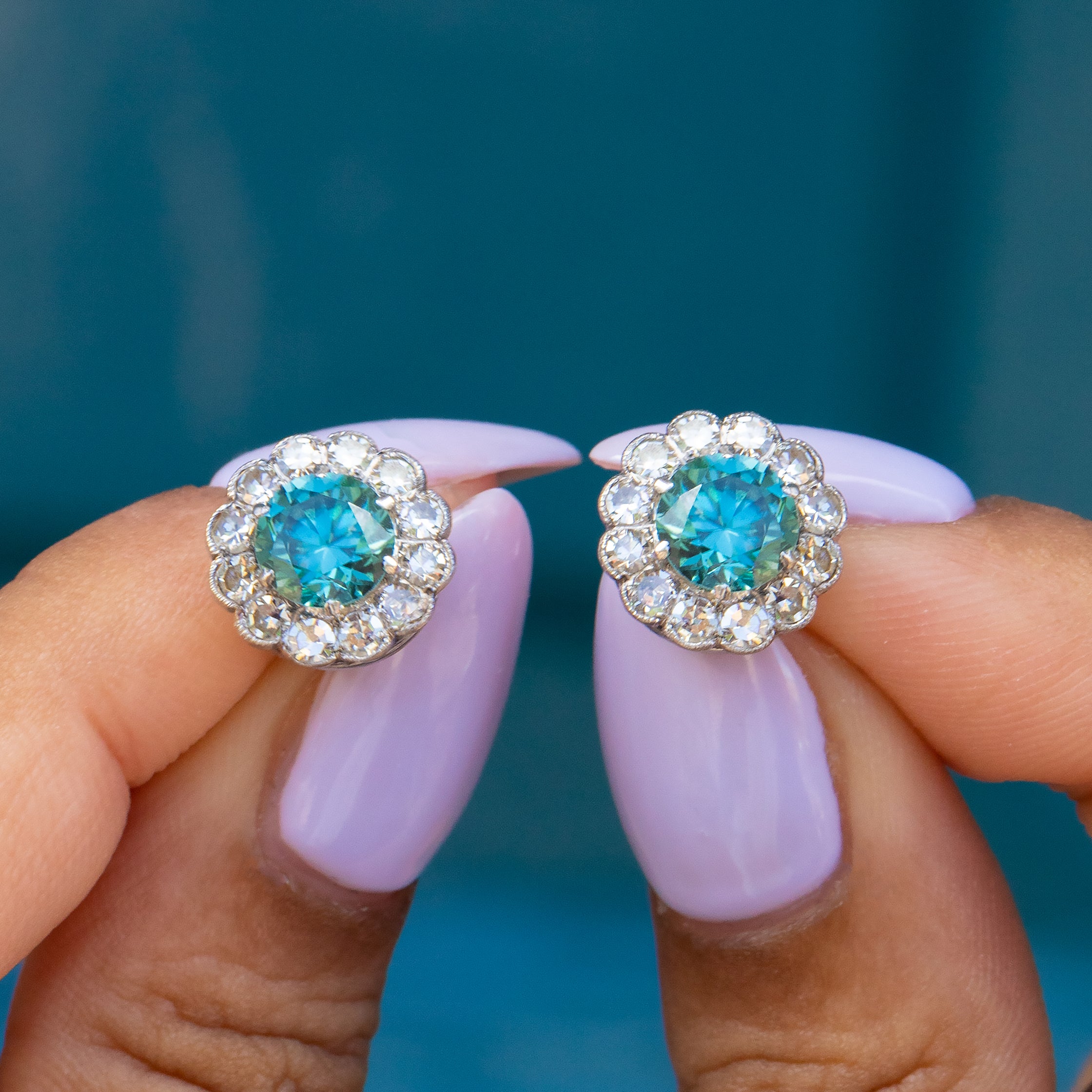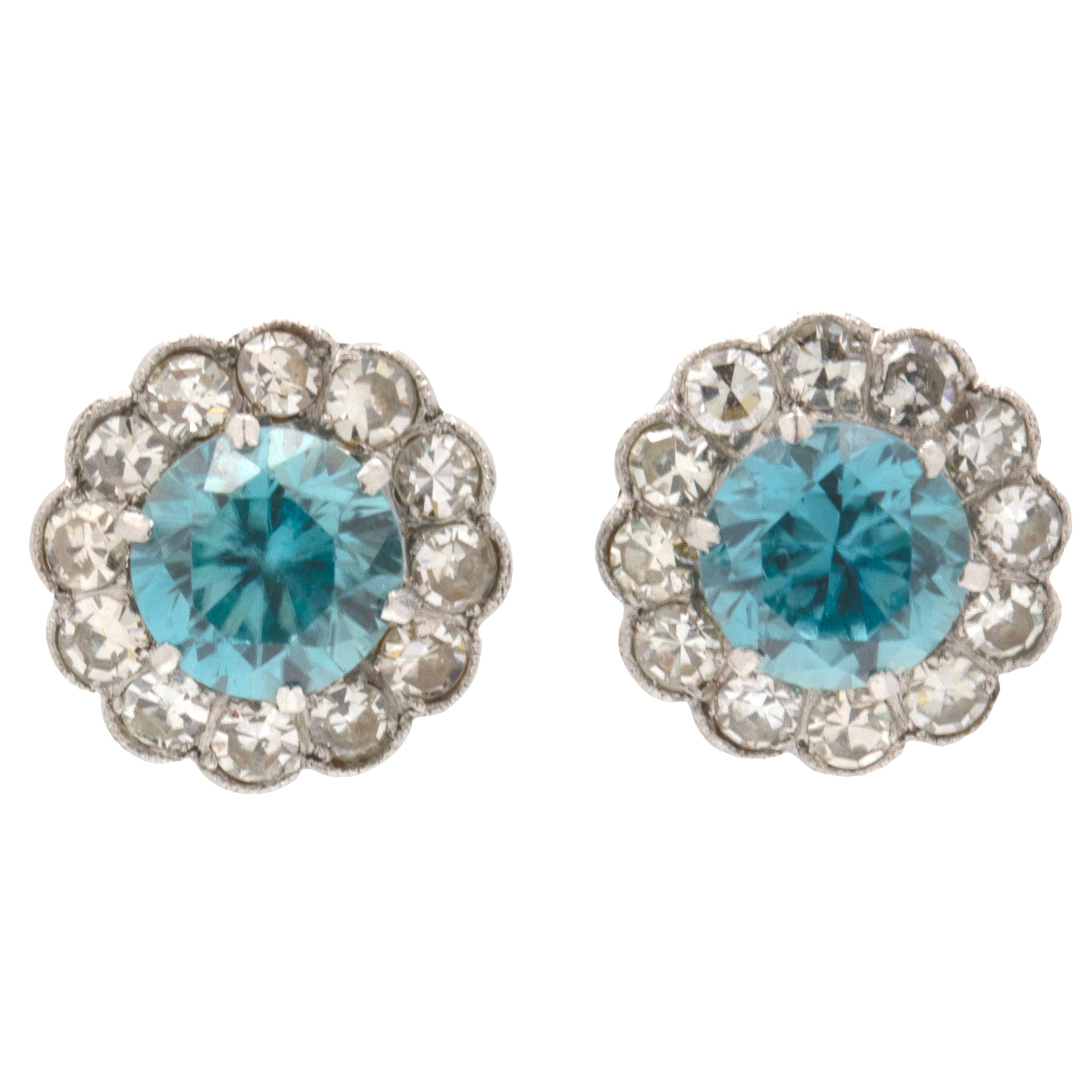 エドワーディアン ブルージルコン ダイヤモンド クラスター イヤリング、18ct ゴールド&プラチナ