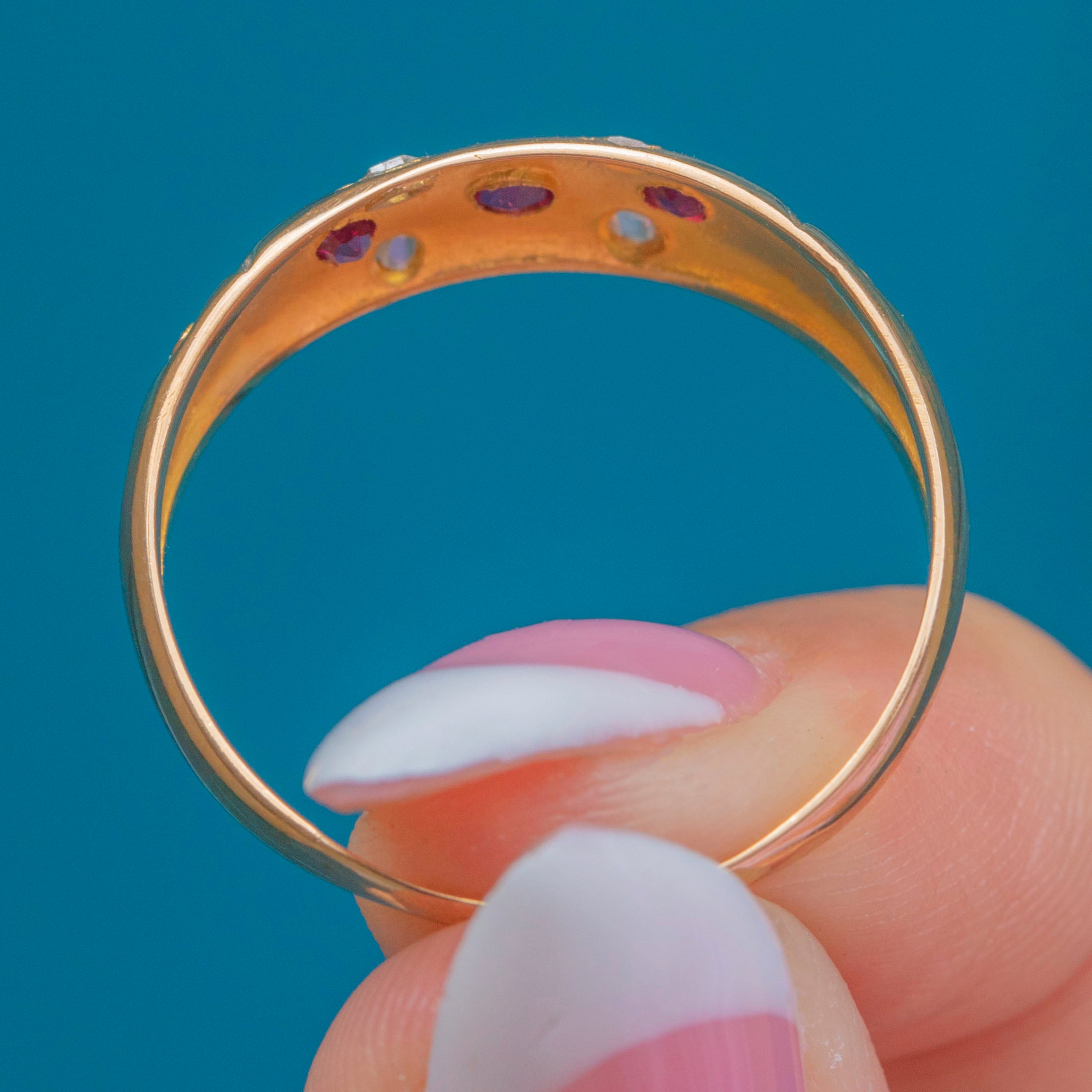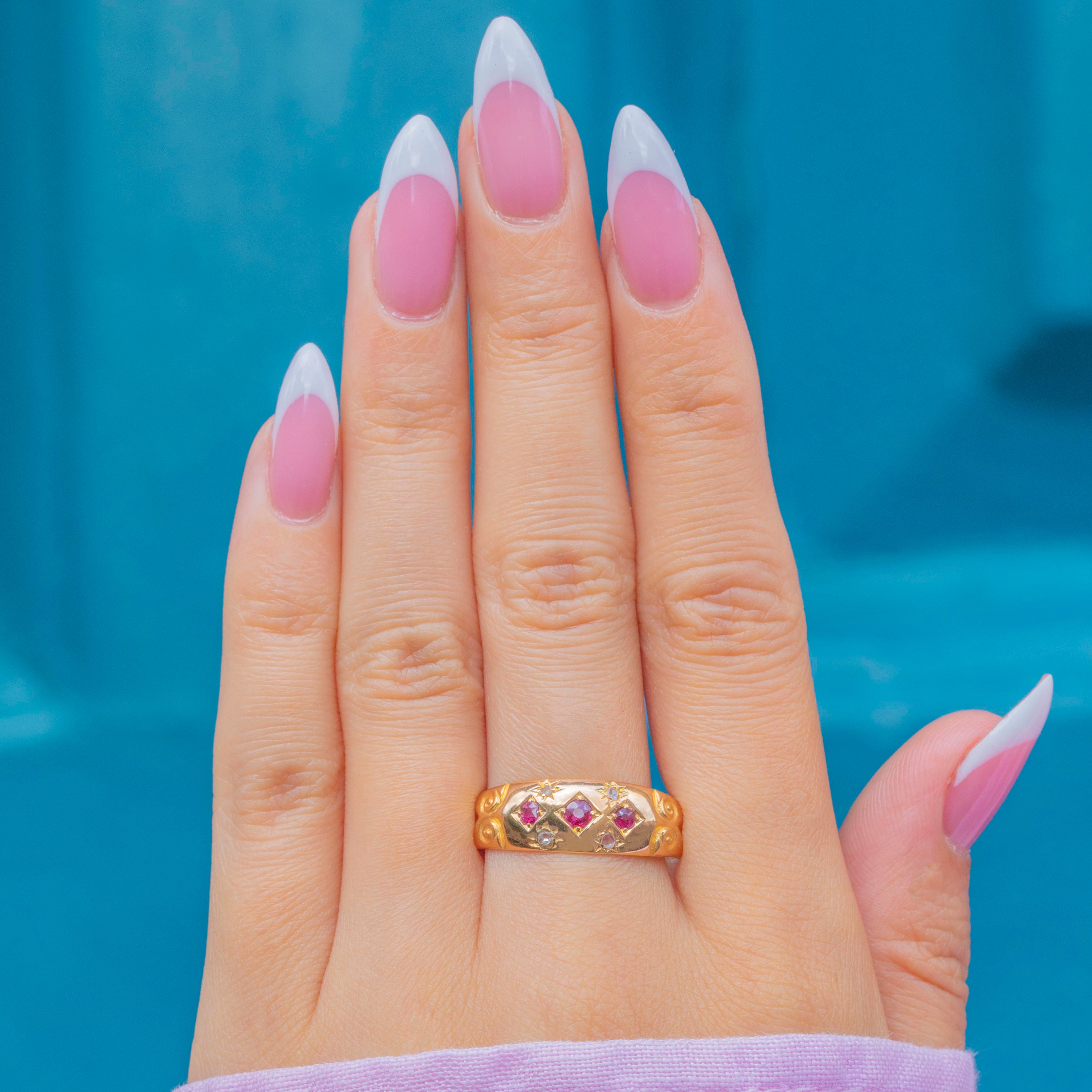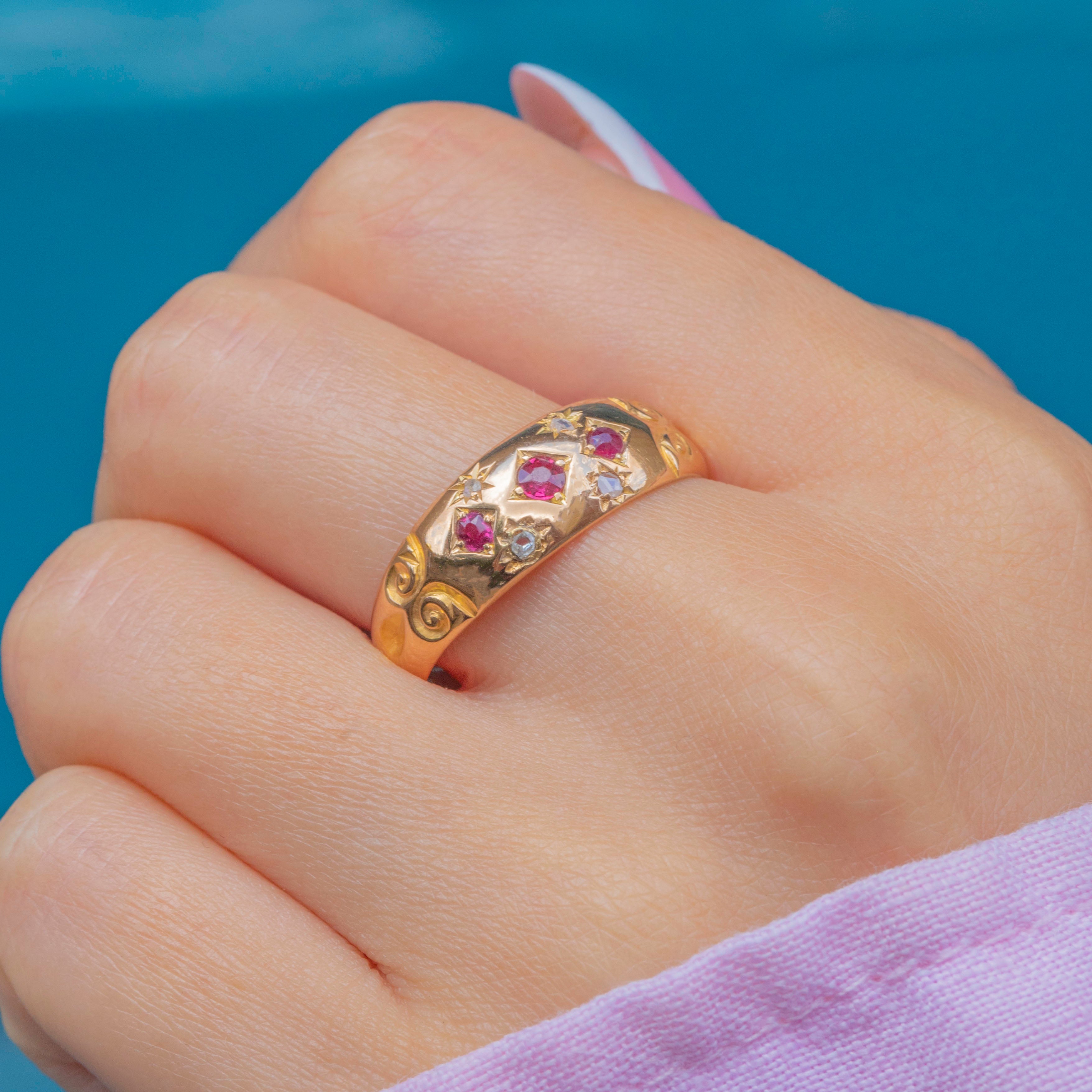 Edwardian 18ct Gold Ruby Diamond Star Set Gypsy Ring c.1903