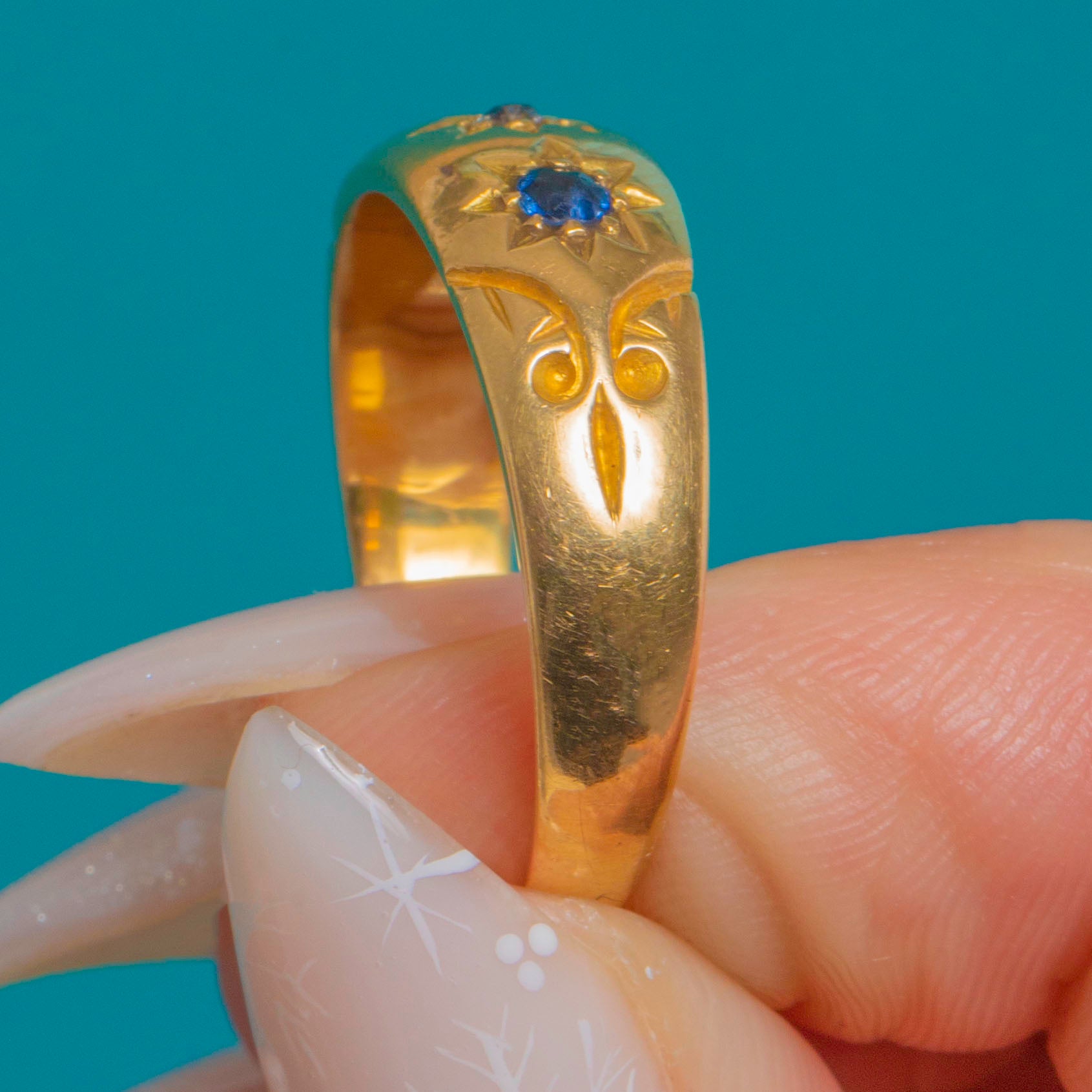エドワーディアン 18ct ゴールド サファイア ダイヤモンド ジプシースター トリロジーリング