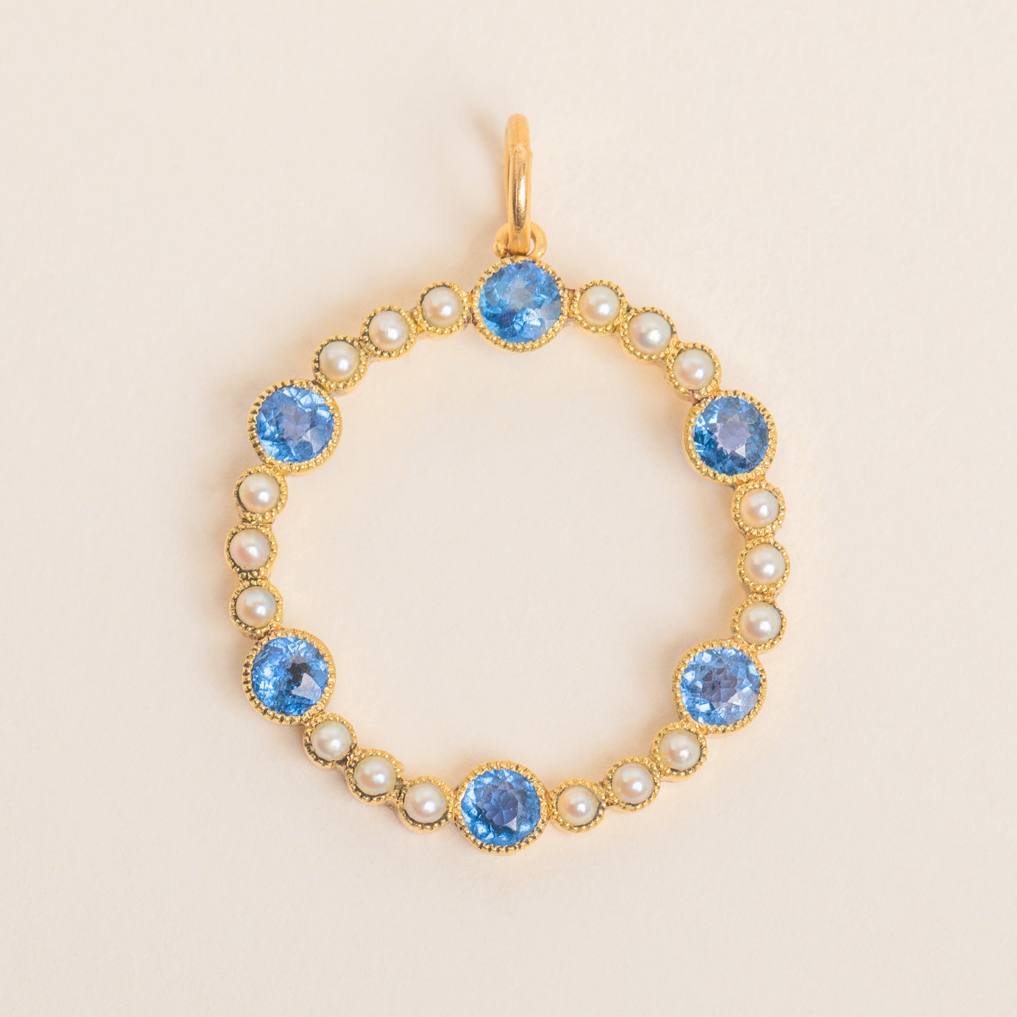 Edwardian 18ct Gold Sapphire Pearl Roundel Pendant