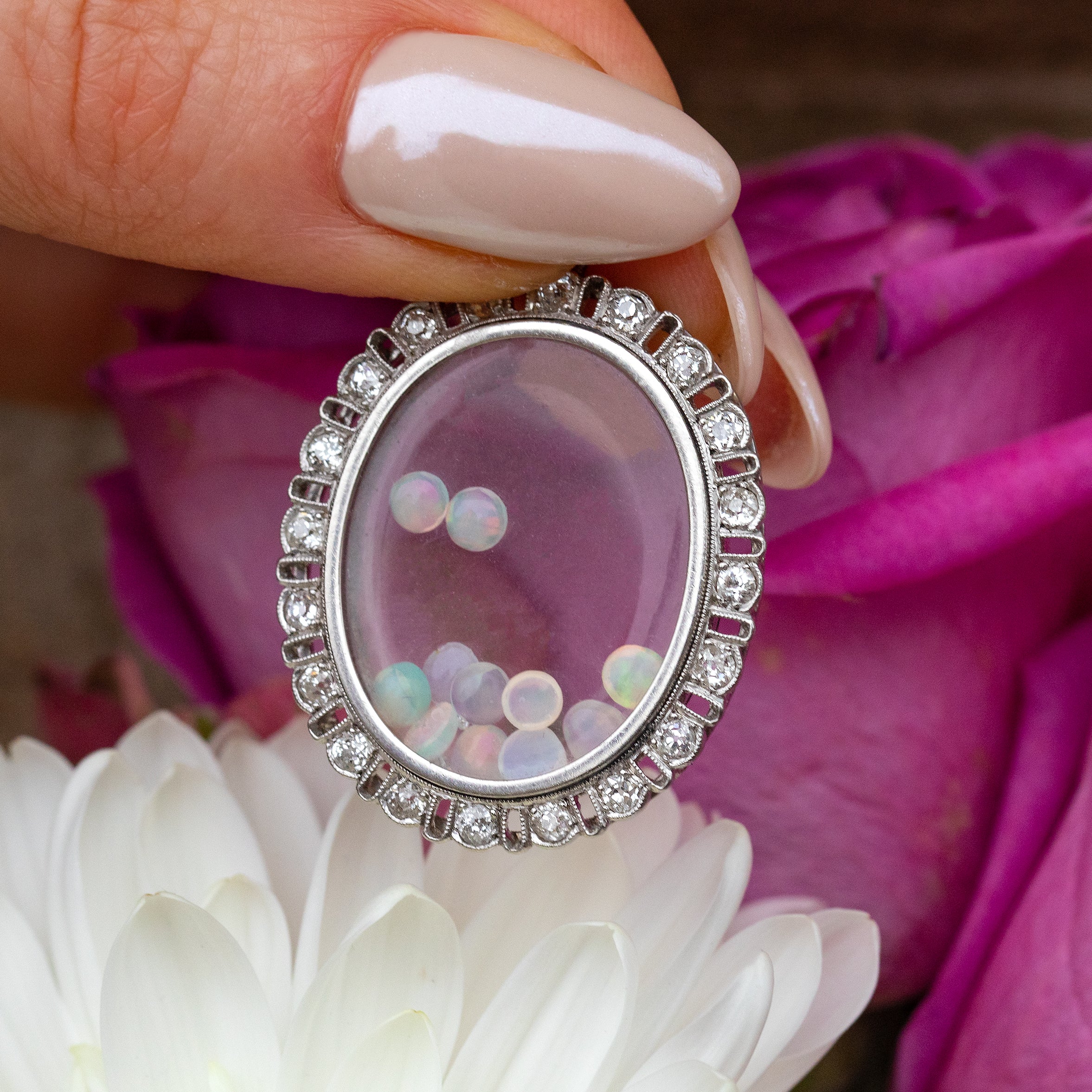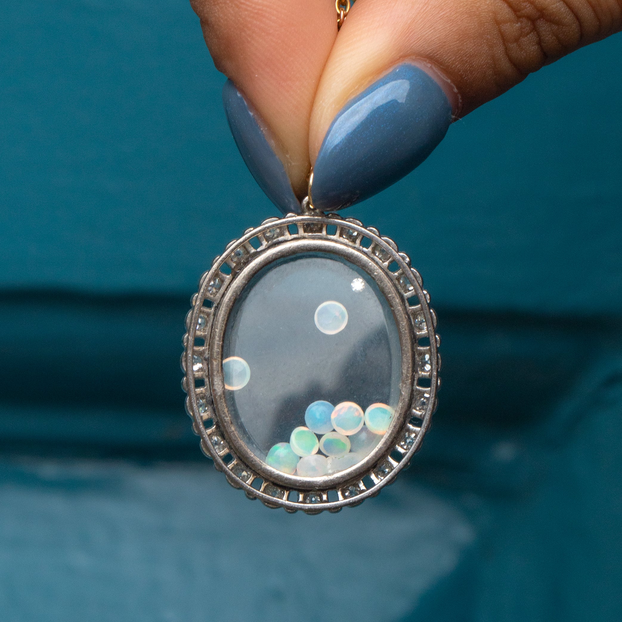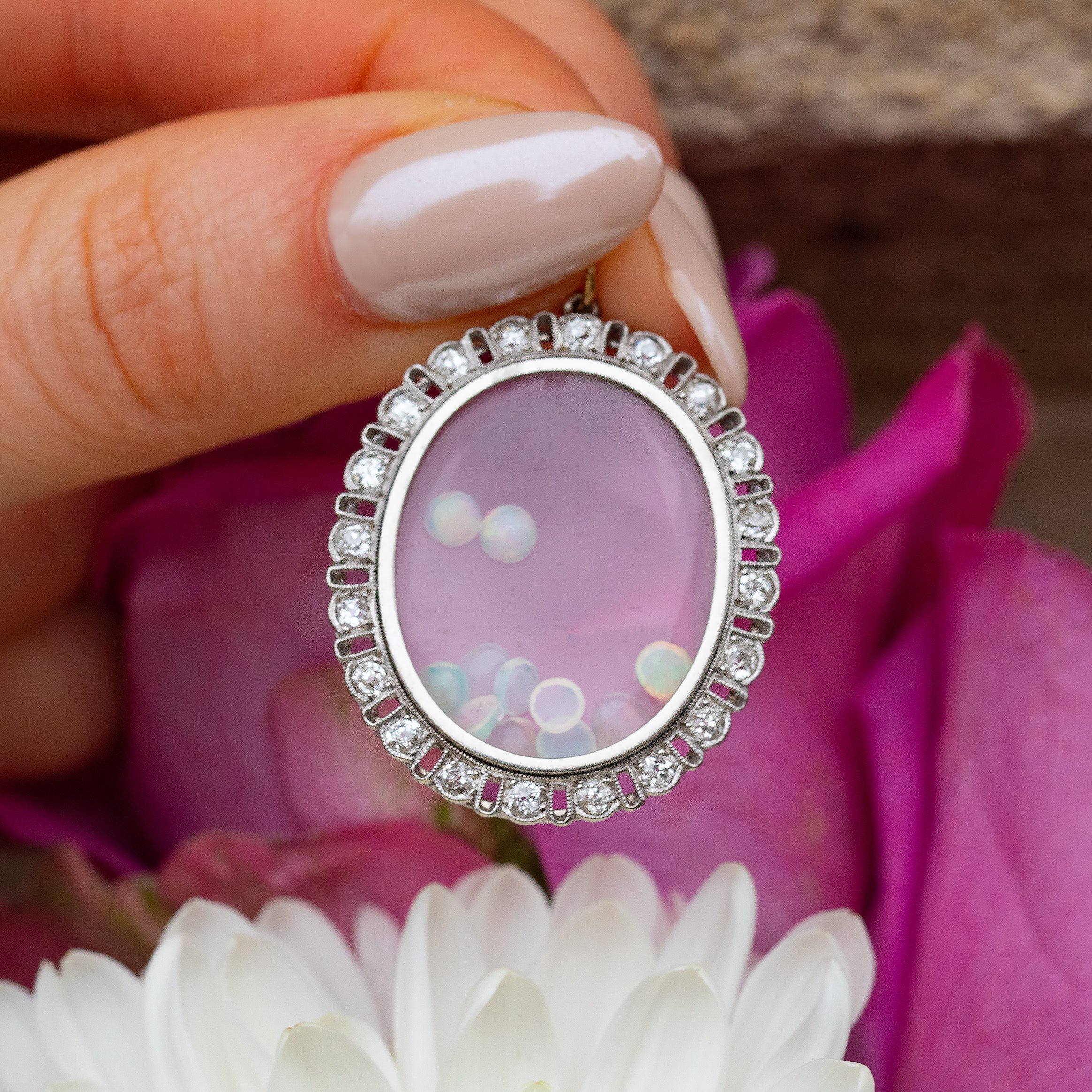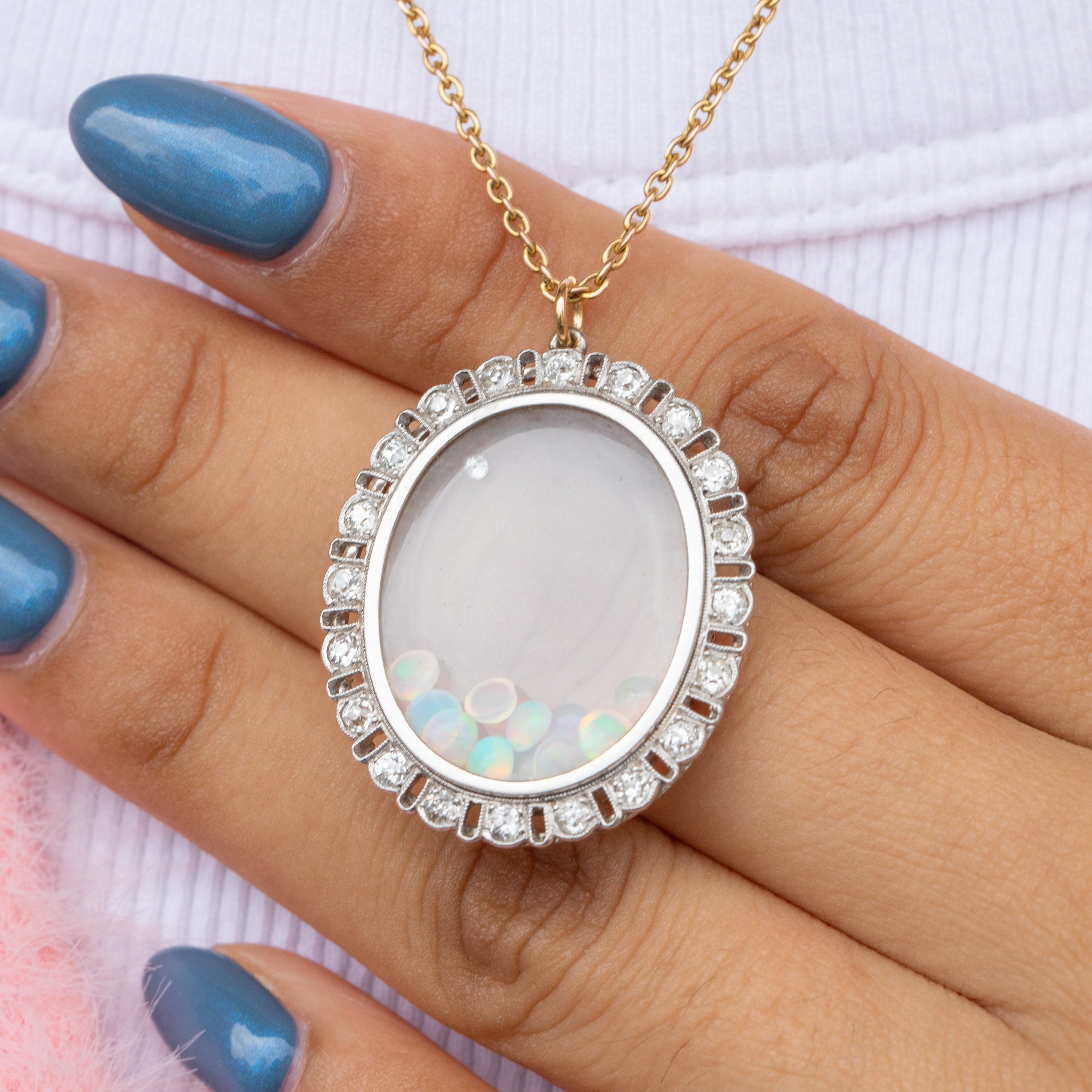 エドワーディアン 18ct ホワイトゴールド ダイヤモンド シェイカー ロケット