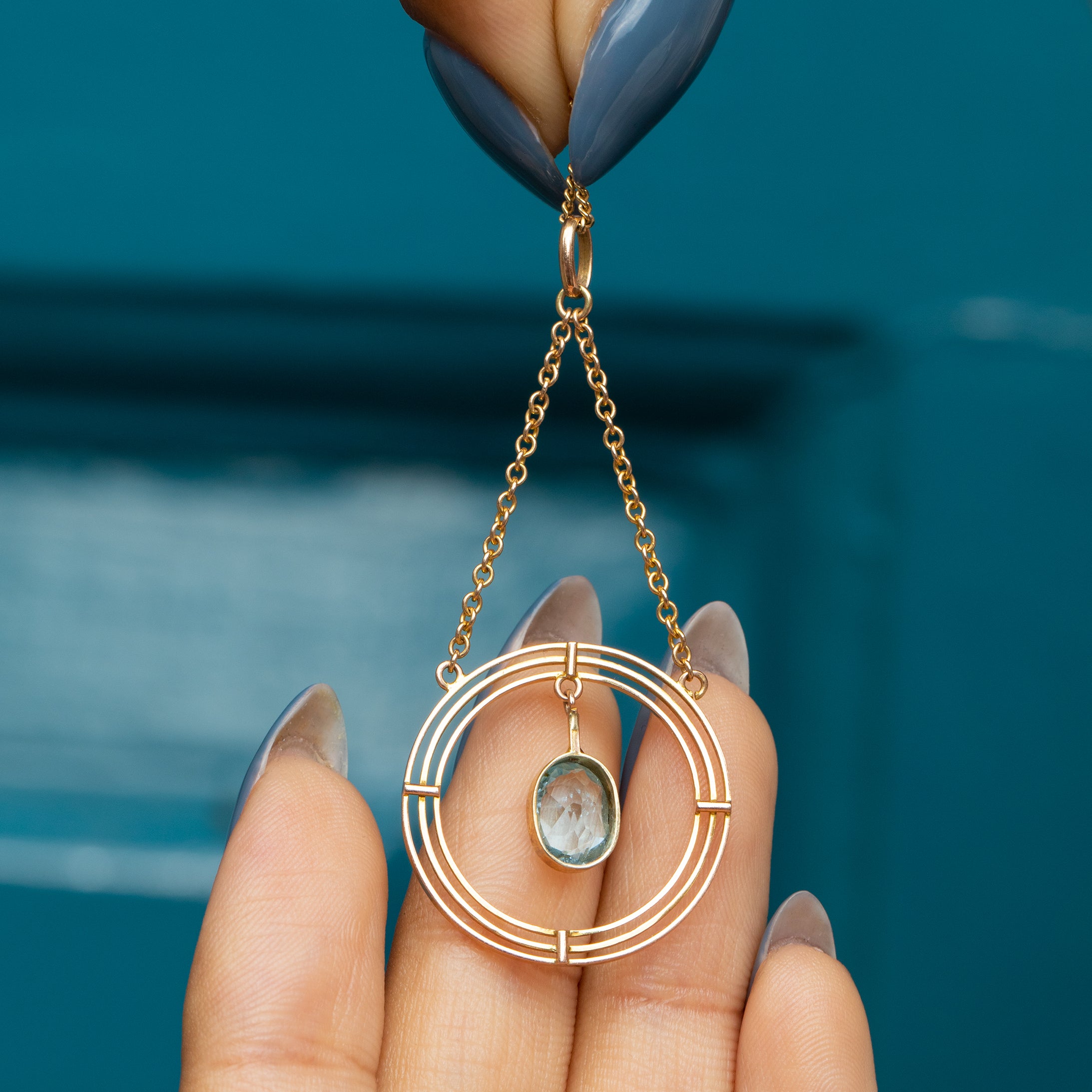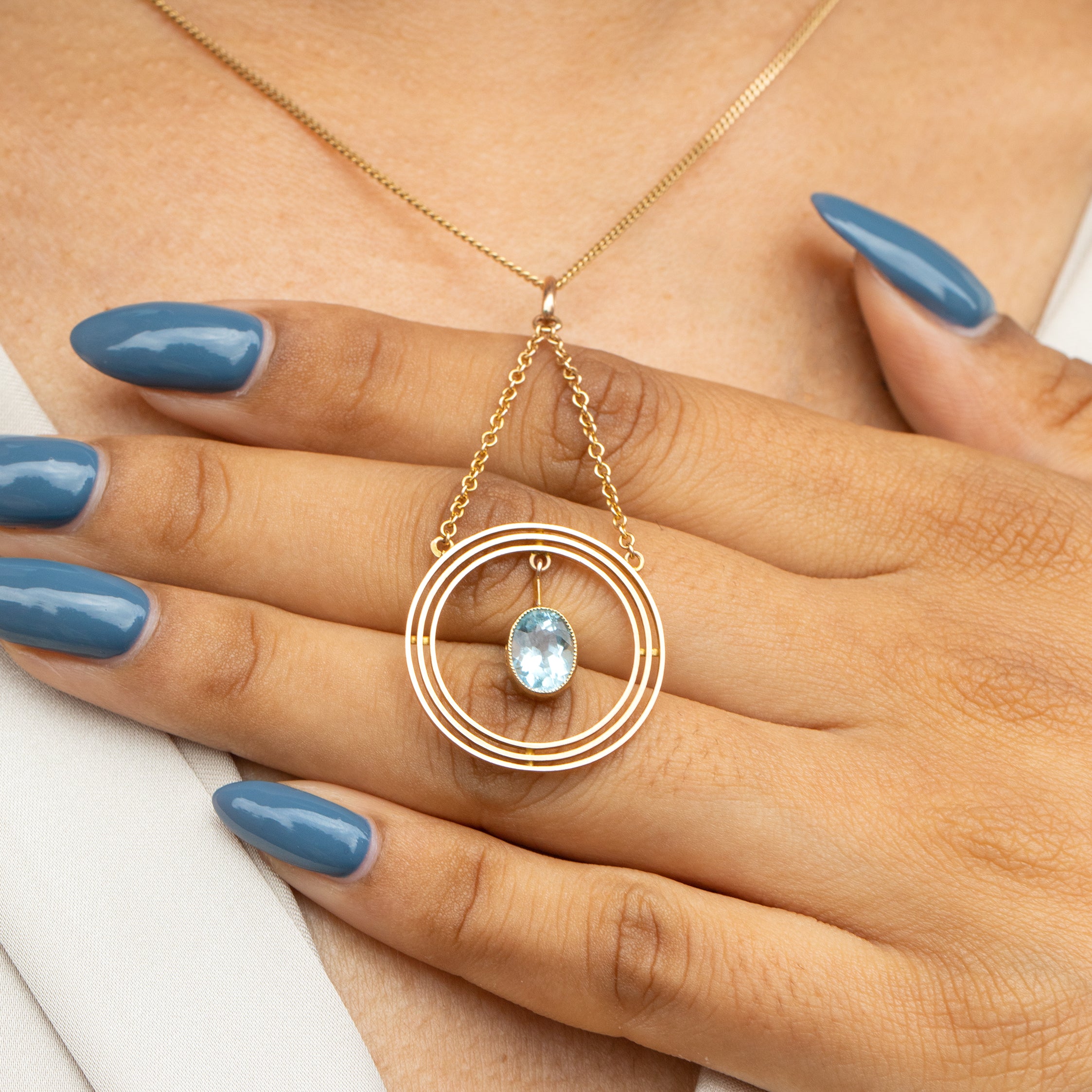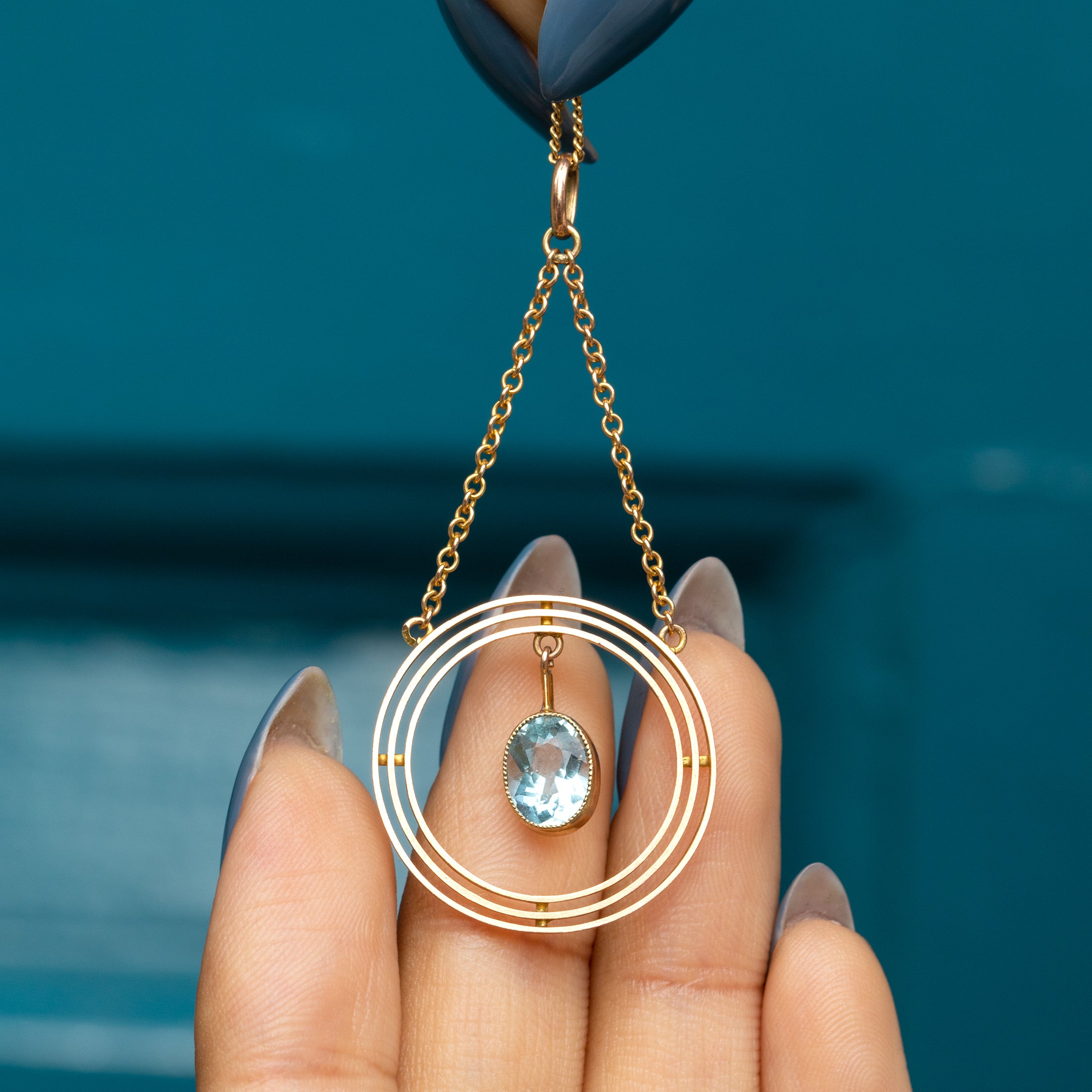 エドワーディアン 9ct ゴールド アクアマリン ペンダント、0.88ct