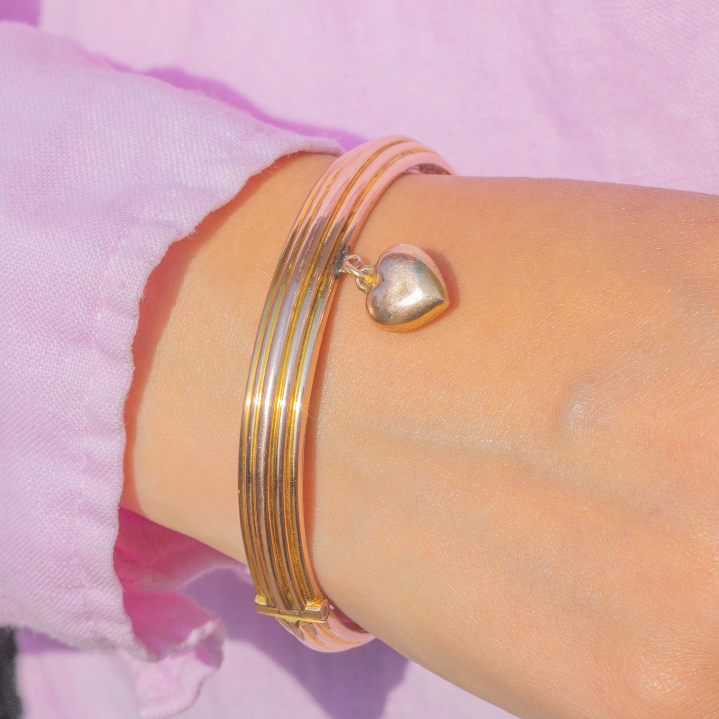 Edwardian 9ct Gold Bangle with Puffy Heart Charm