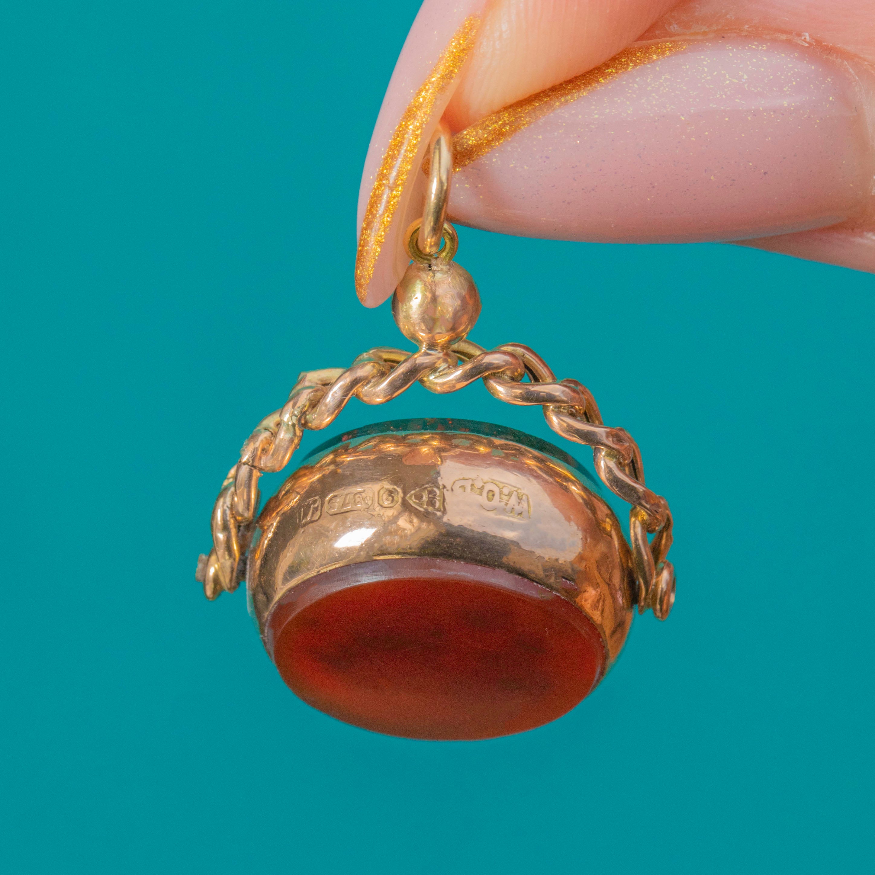Edwardian 9ctゴールド ブラッドストーン カーネリアン フォブ