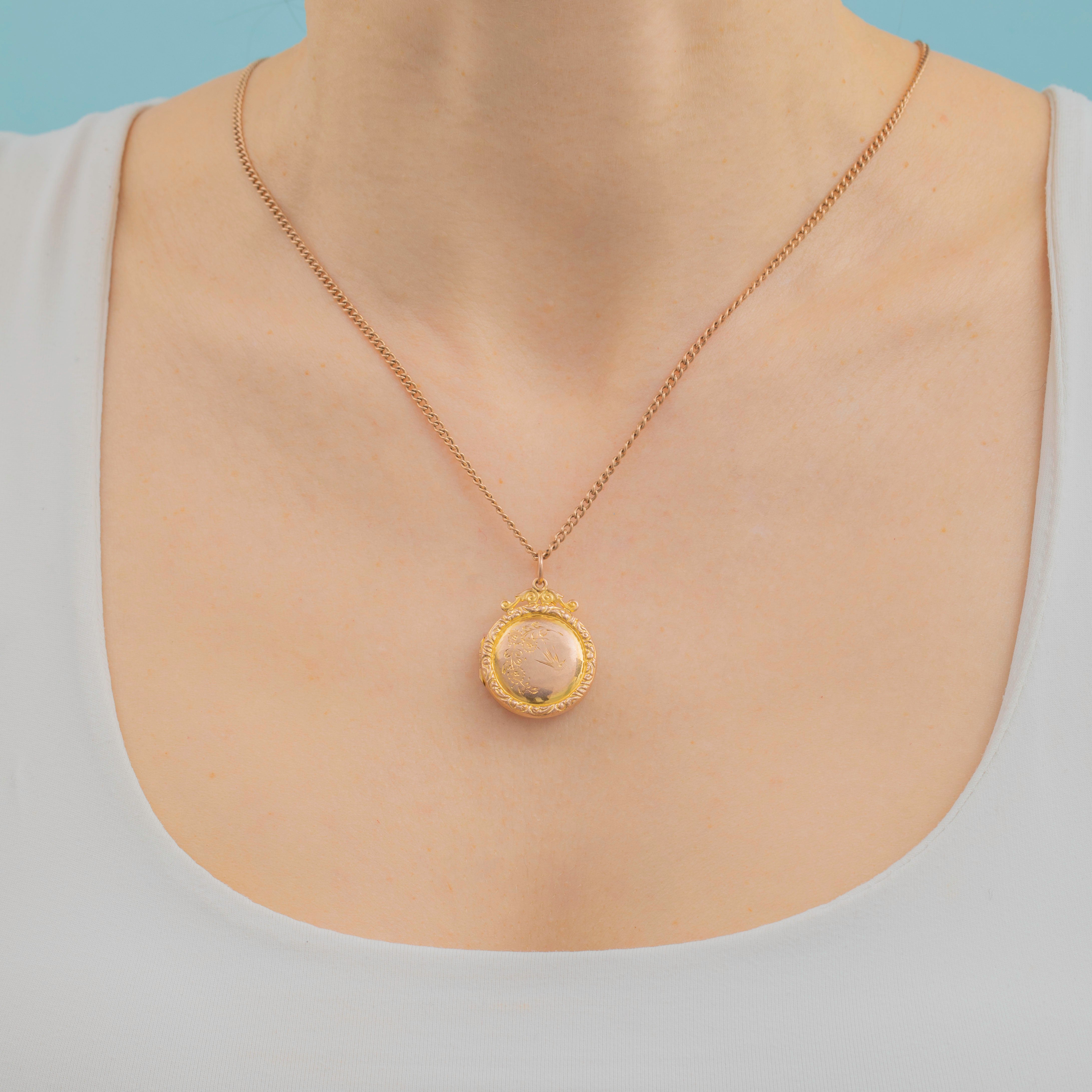 VERY GOOD. This Edwardian 9ct Gold chased locket is in very good condition! The chased detailing is prominent on both sides and has lasted incredibly well considering this piece is over 100 years old, with only some very minor discolouration to the Gold. The doors shut tightly so your photos will be safe! How wonderful for a piece this old to be so well preserved, and with the right care she should last many more.