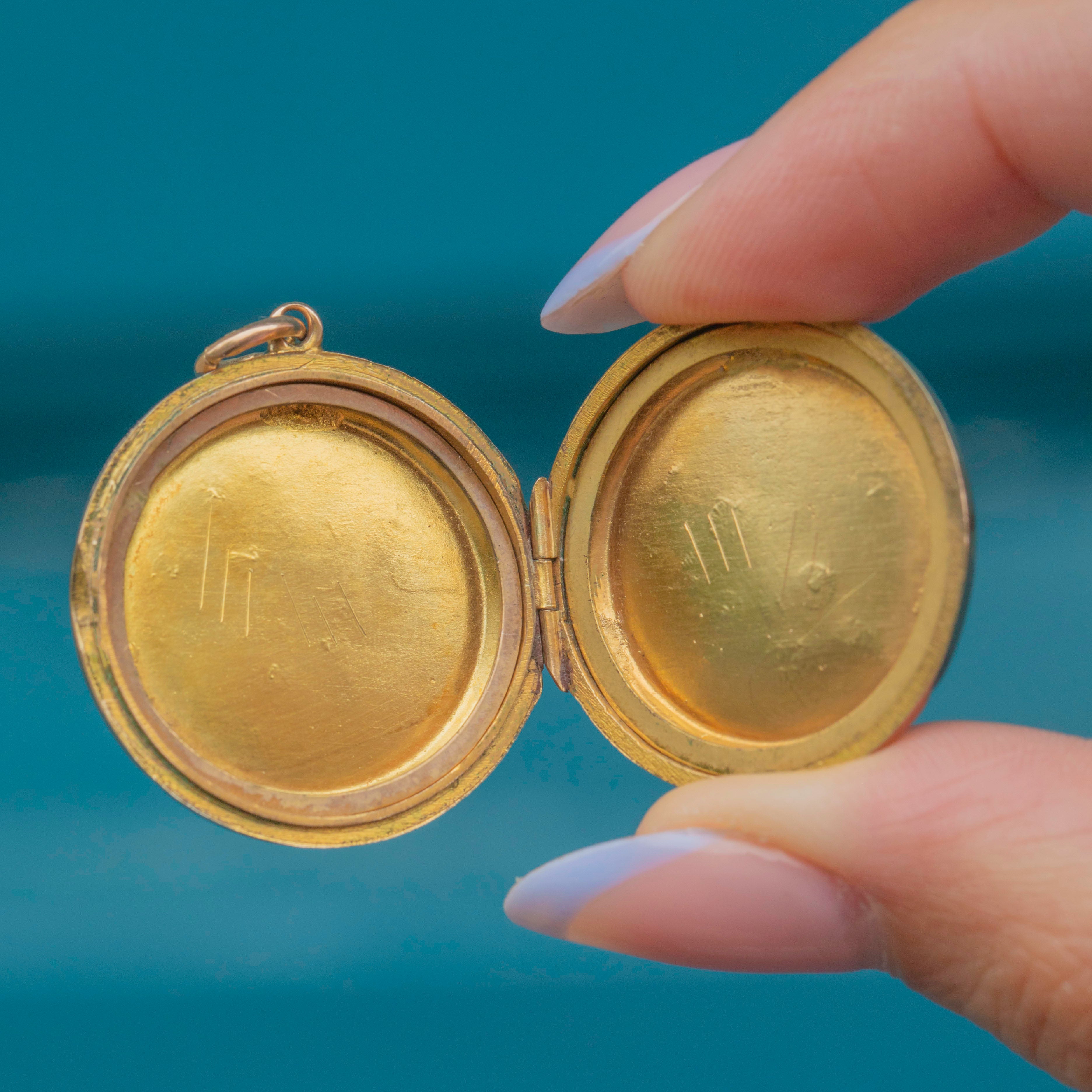 VERY GOOD-EXCELLENT: This Edwardian 9ct Gold engraved bird in flight round locket is in great condition. Her engravings have remained crisp and her Gold bright and buttery. There are some scratches and points of discolouration inside the locket, though this cannot be seen when the locket is worn. With a securely soldered jump ring, this antique locket can be worn with utmost confidence!