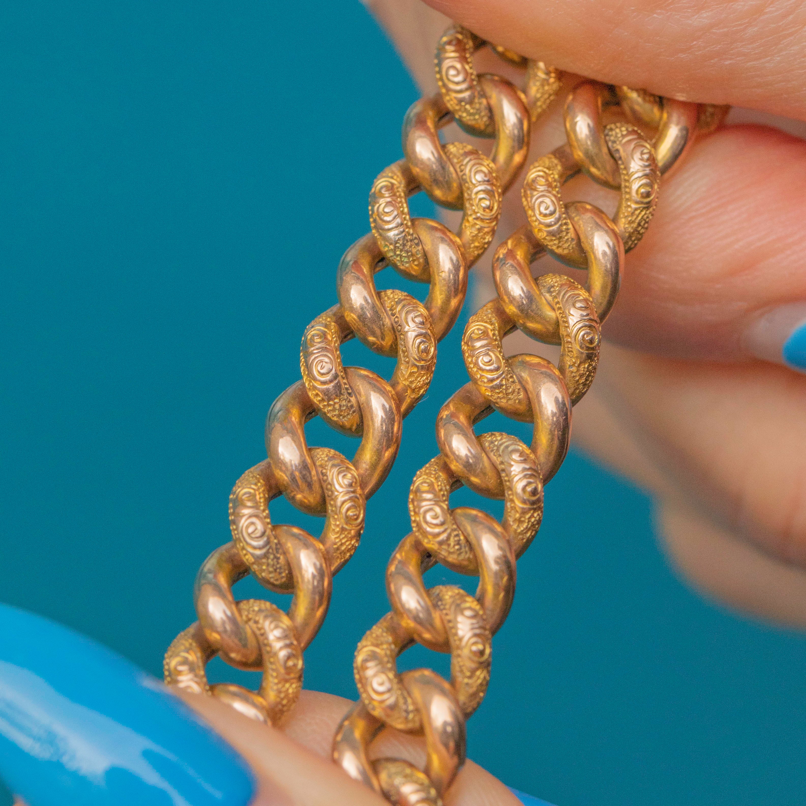 Each curb link has been exquisitely adorned with delicate engravings, bringing texture to the piece and perfectly capturing the craftsmanship of the era. Her beautifully detailed padlock adds a touch of romance, you won't want to take her off!
