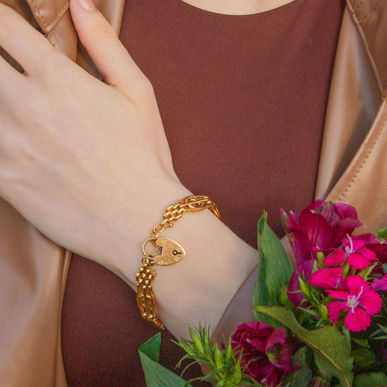 エドワーディアン 9ct ゴールド ゲート ブレスレット、12.5g