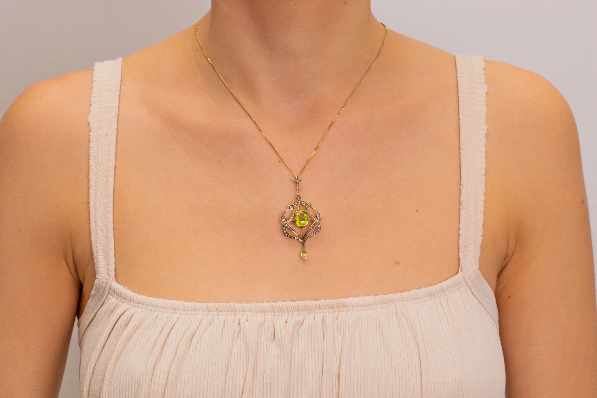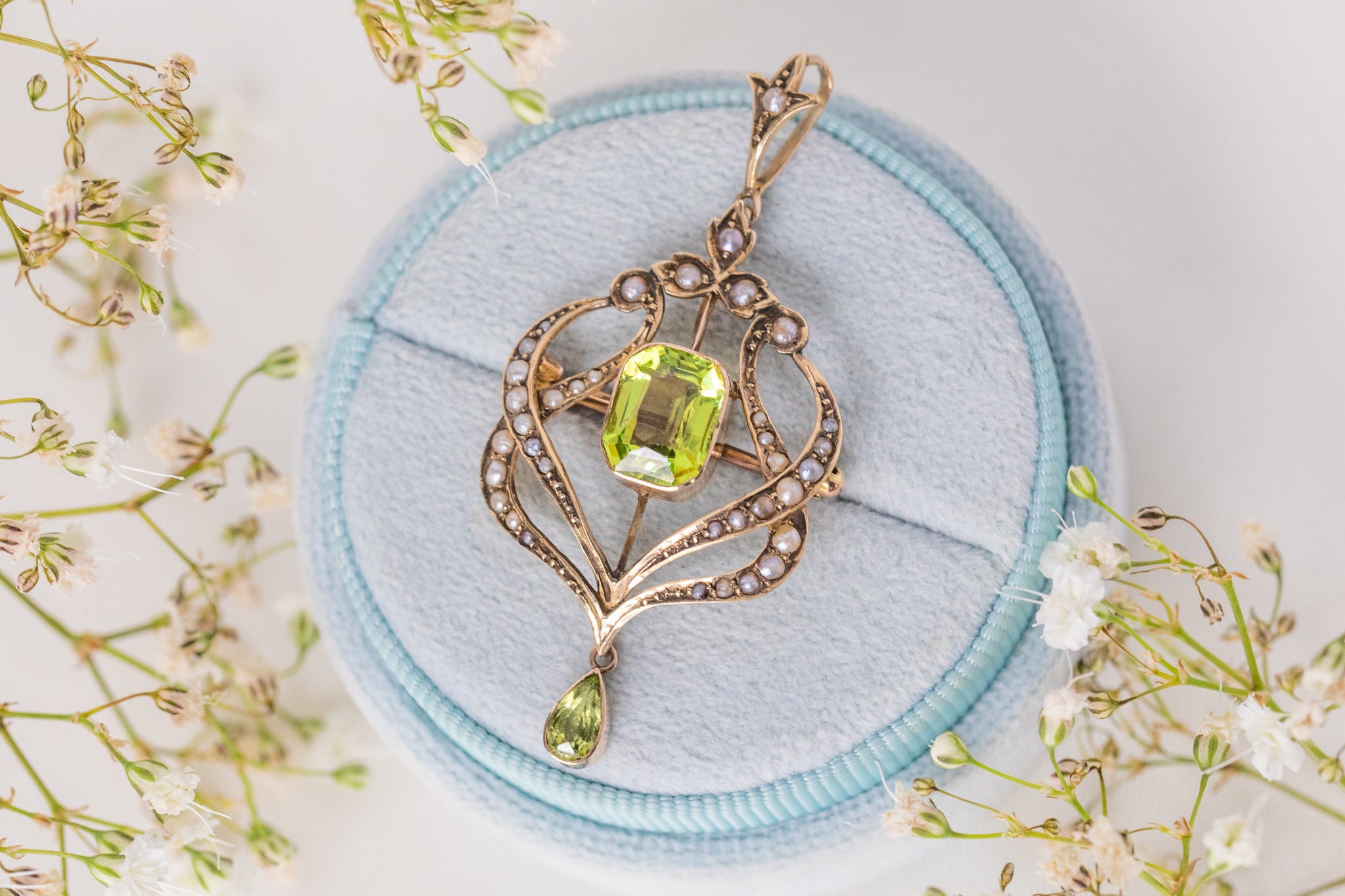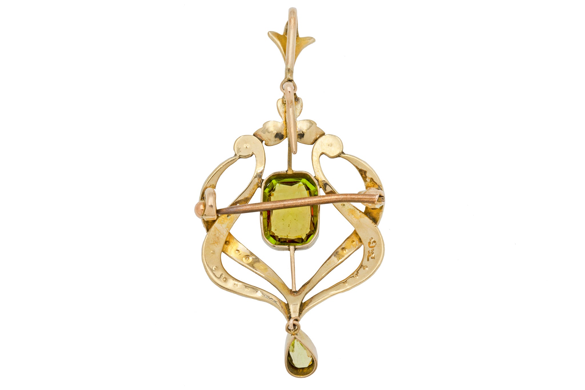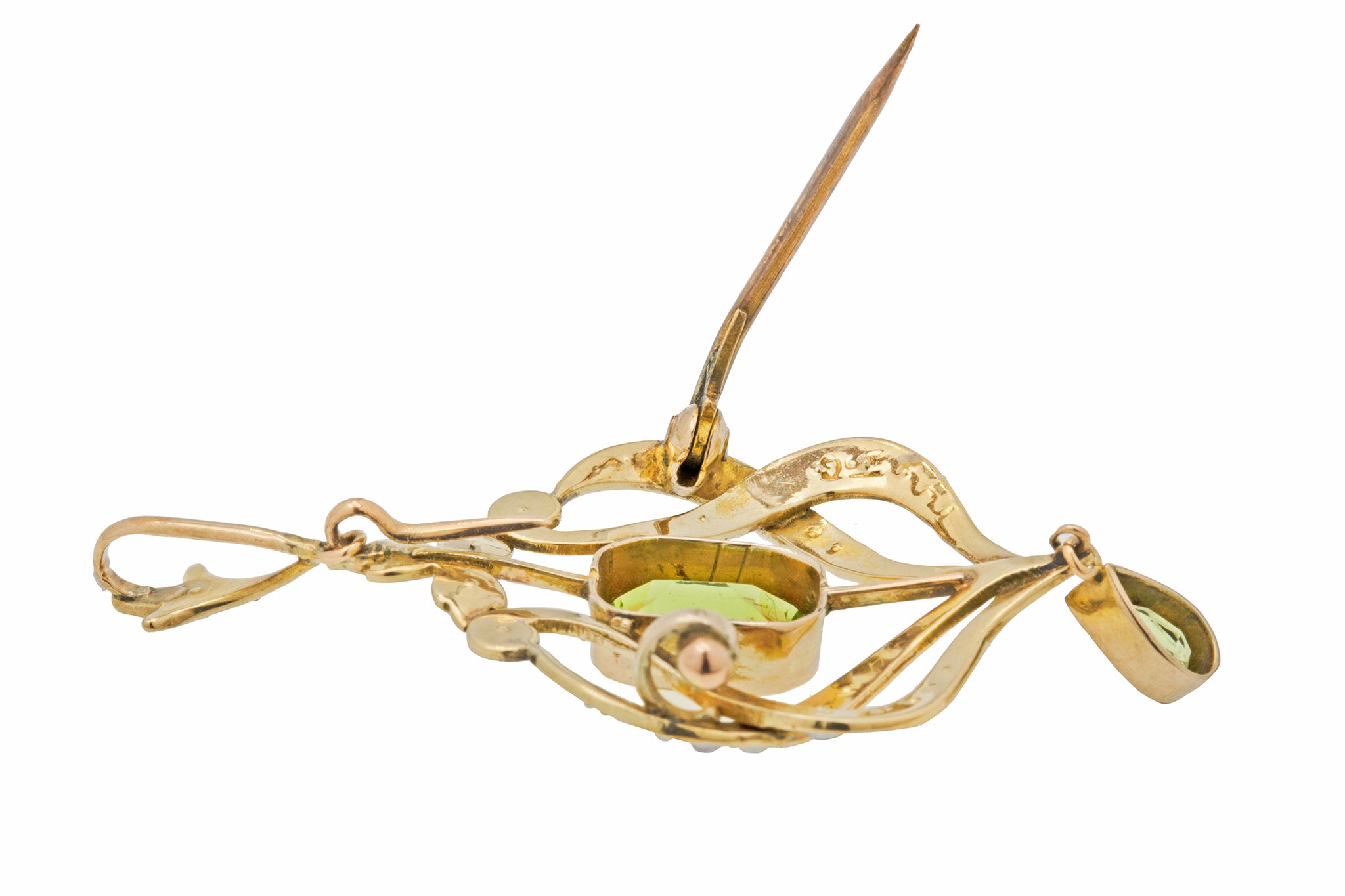 エドワーディアン 9ct ゴールド ペリドット パール ペンダント (2.00ct)、ブローチ金具付き