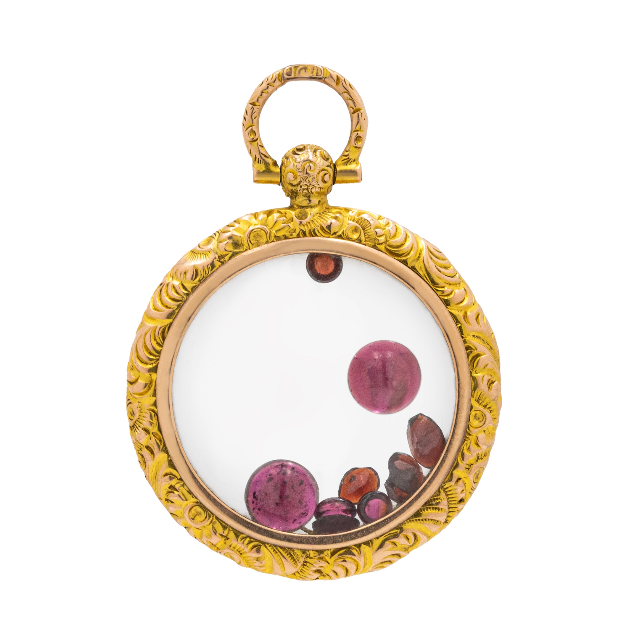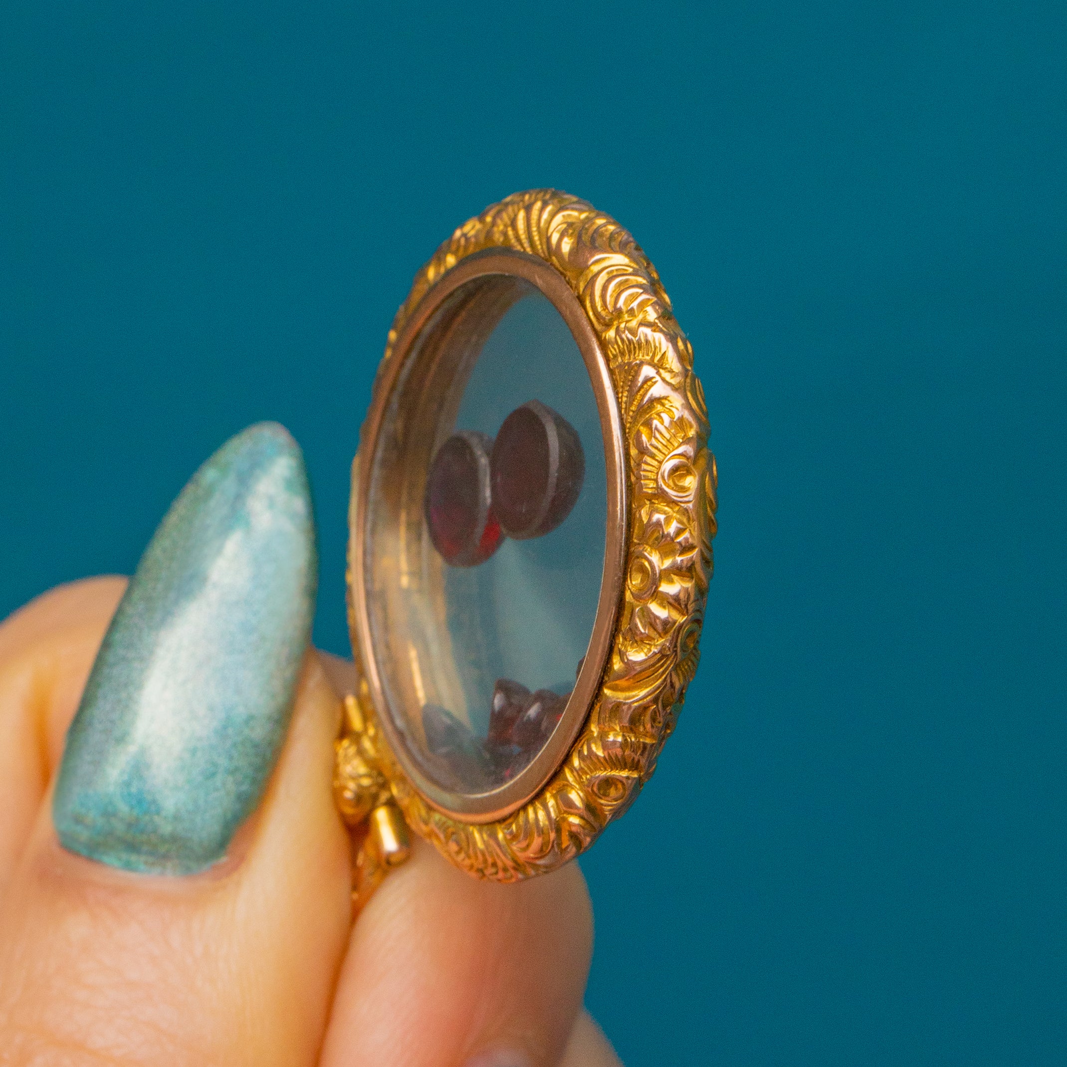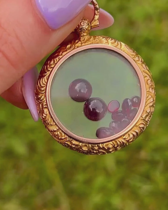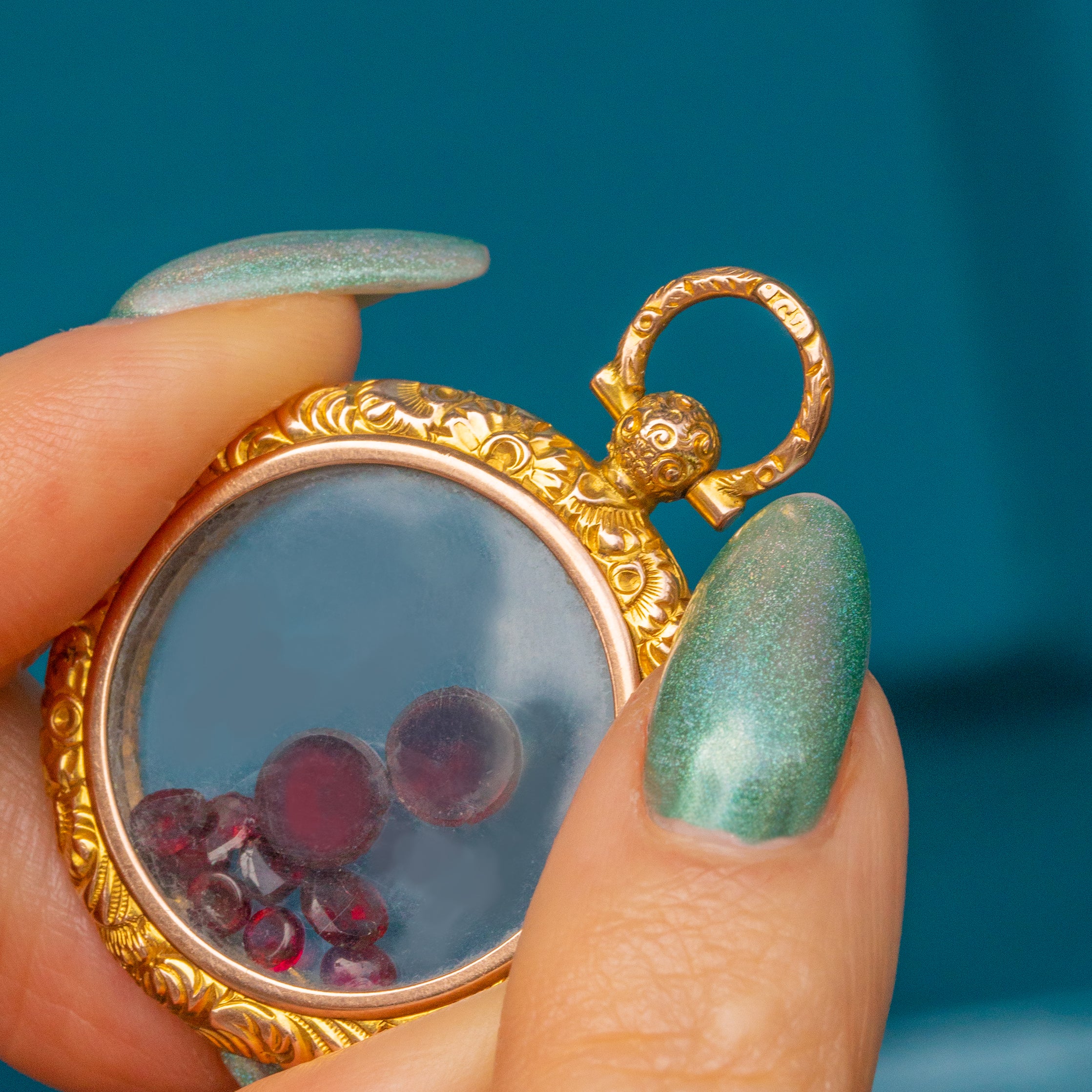 Edwardian 9ct Gold Repousse Shaker Locket, Loose Garnets