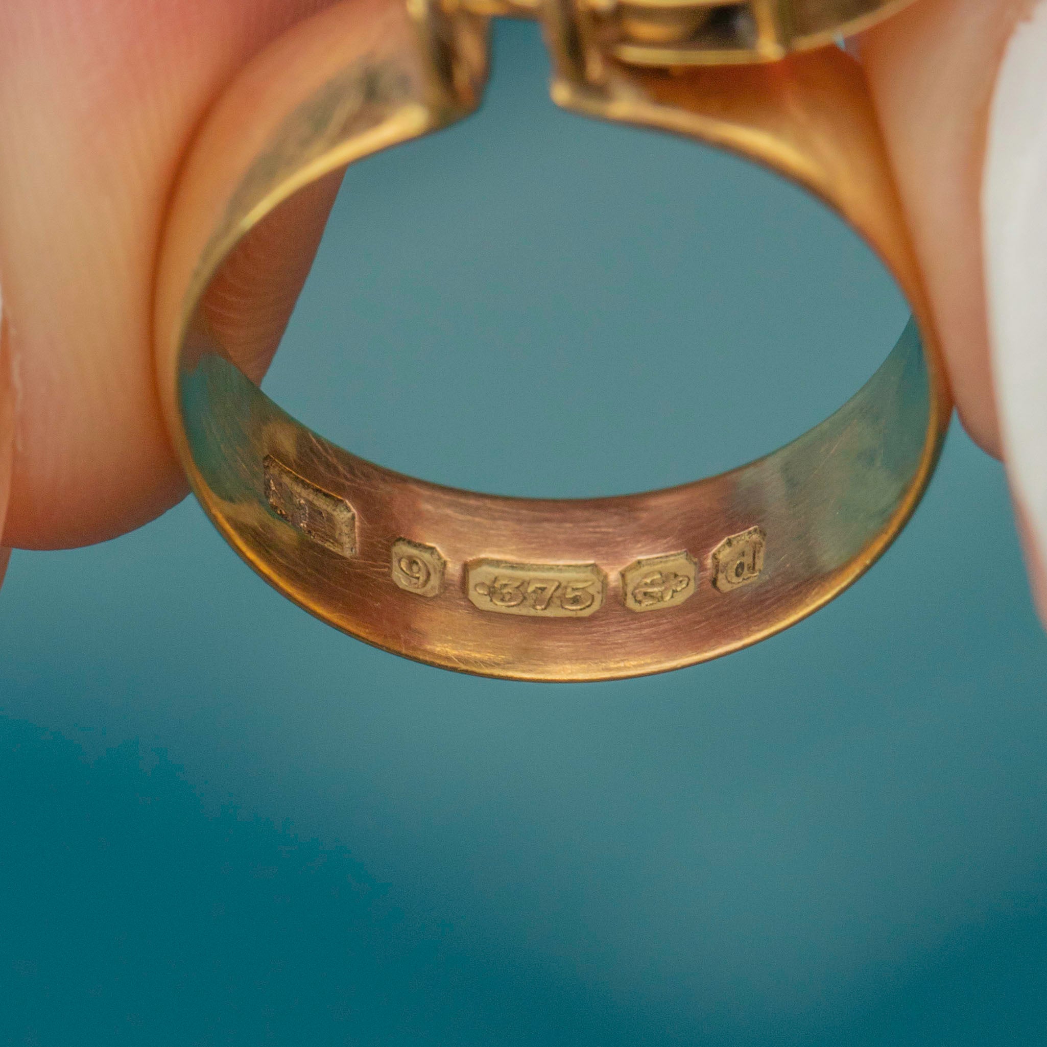 VERY GOOD: This Edwardian 9ct Gold ring is in very good condition. The Gold is buttery and the band is smooth, providing comfortable wear. The top left of the padlock is slightly misshapen, which is to be expected with age, however, this does not impact its functionality. Complete with a full set of English hallmarks dating to 1903, this Edwardian treasure will make a fine addition to your antique jewellery collection!