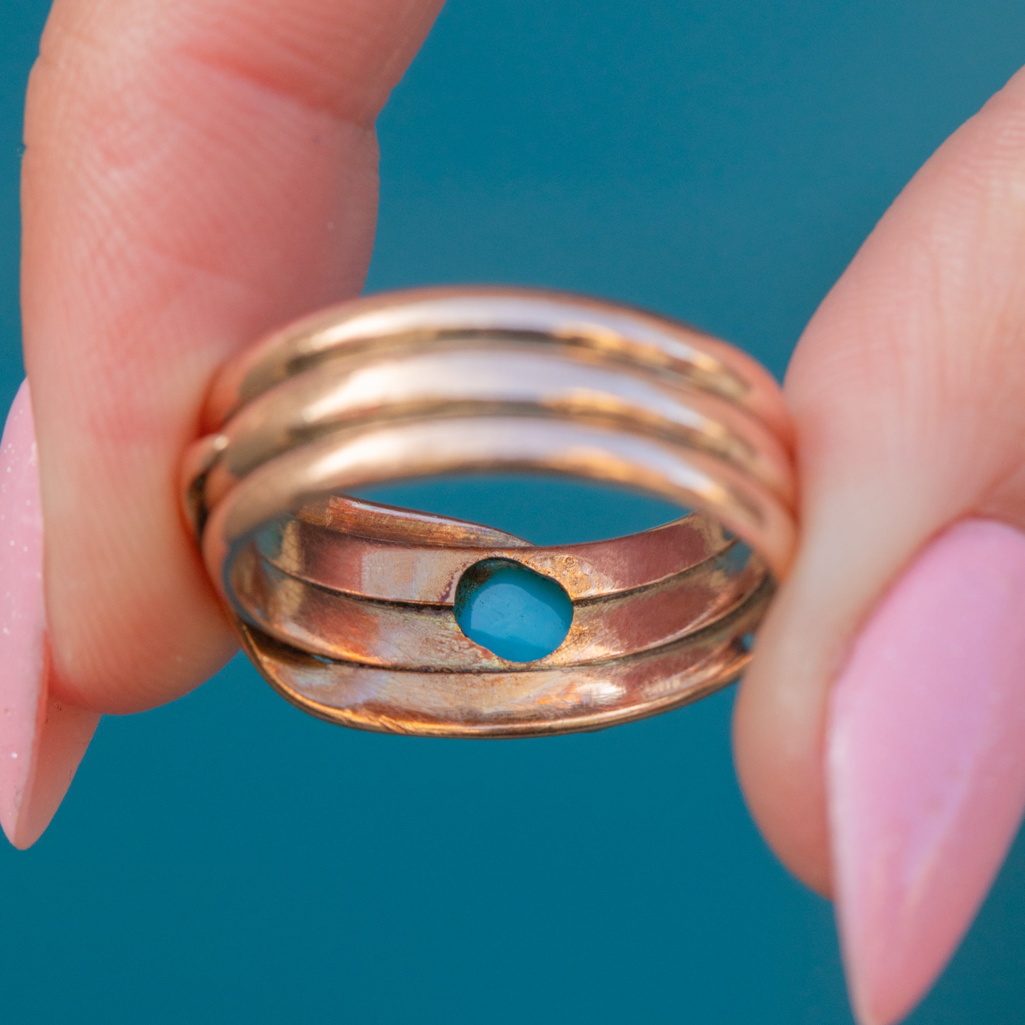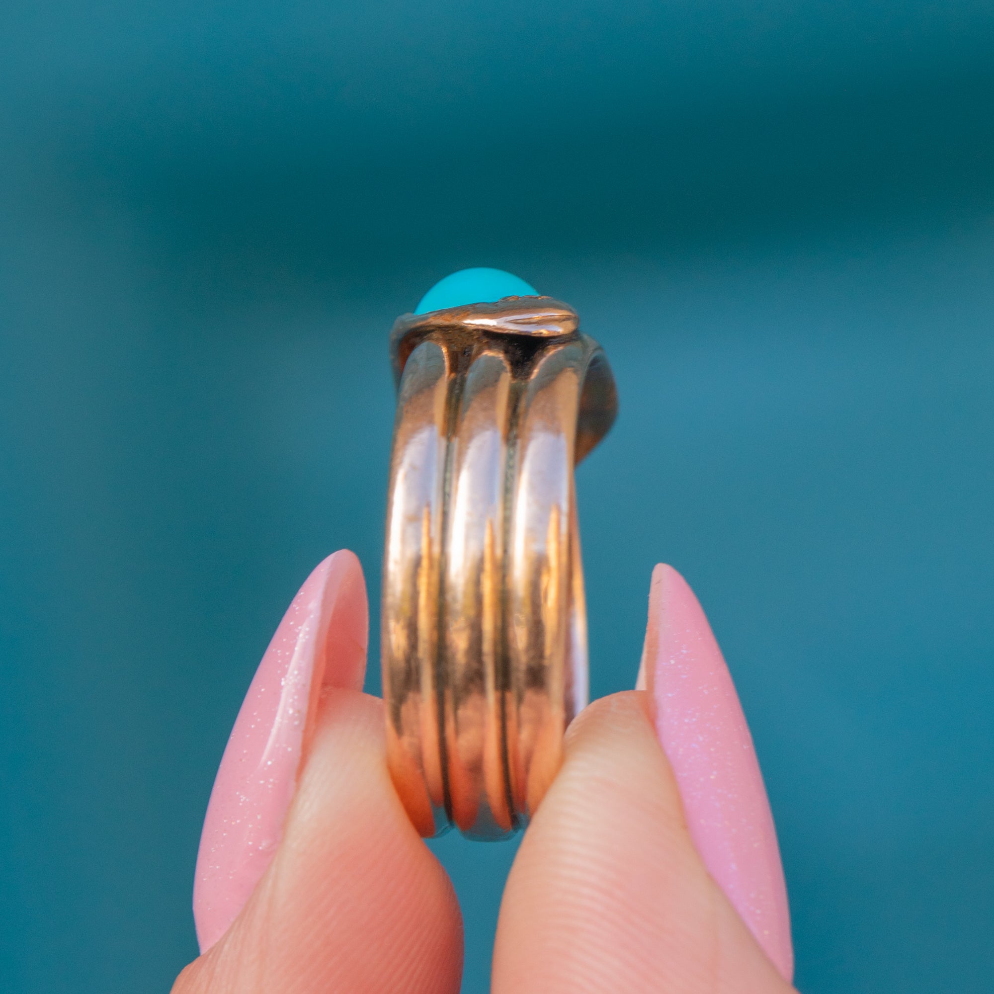 Edwardian 9ct Gold Turquoise Snake Ring, c.1902