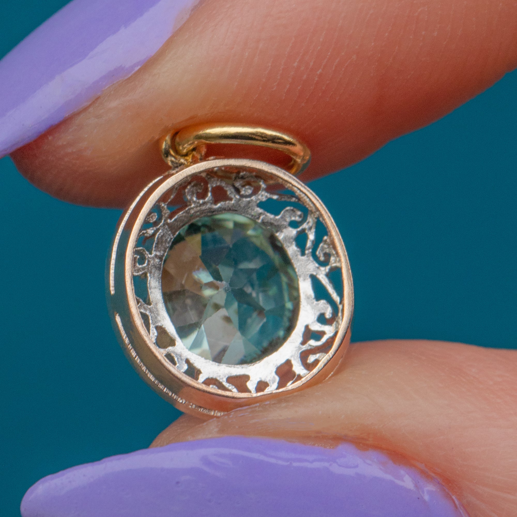 エドワーディアン ブルー ジルコン フィリグリー チャーム, 1.30ct