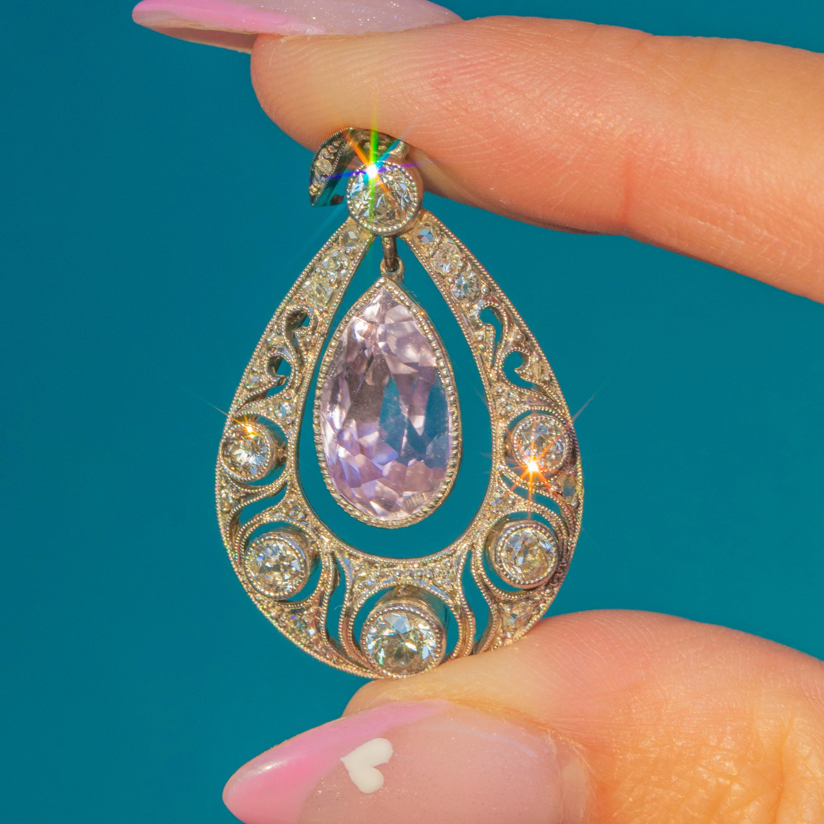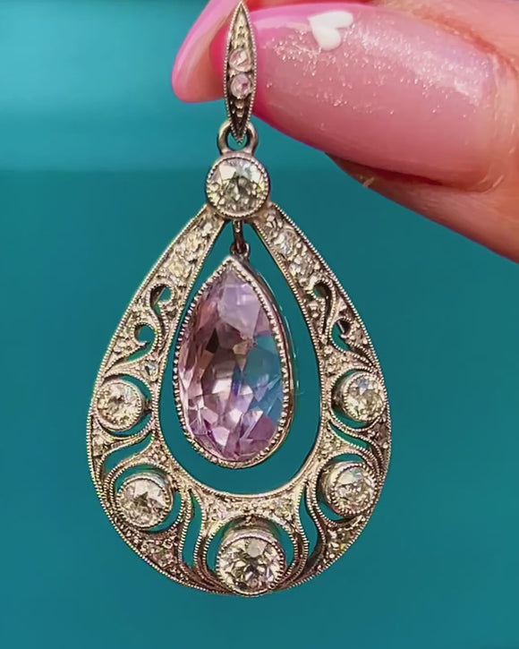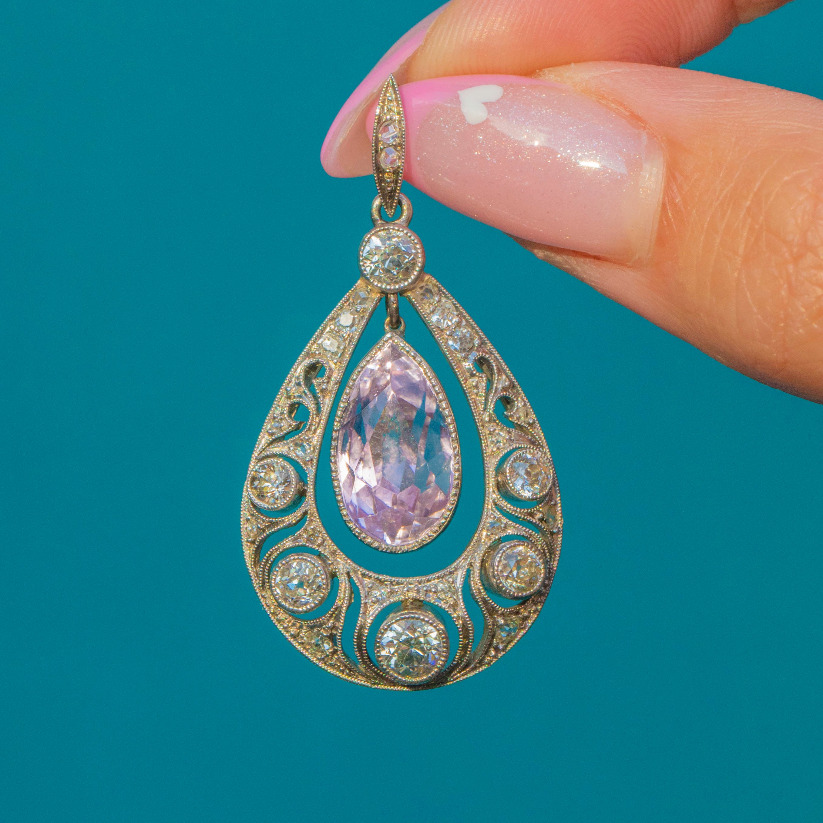 Edwardian 5.50ct Pink Kunzite Diamond Openwork Pendant c.1910
