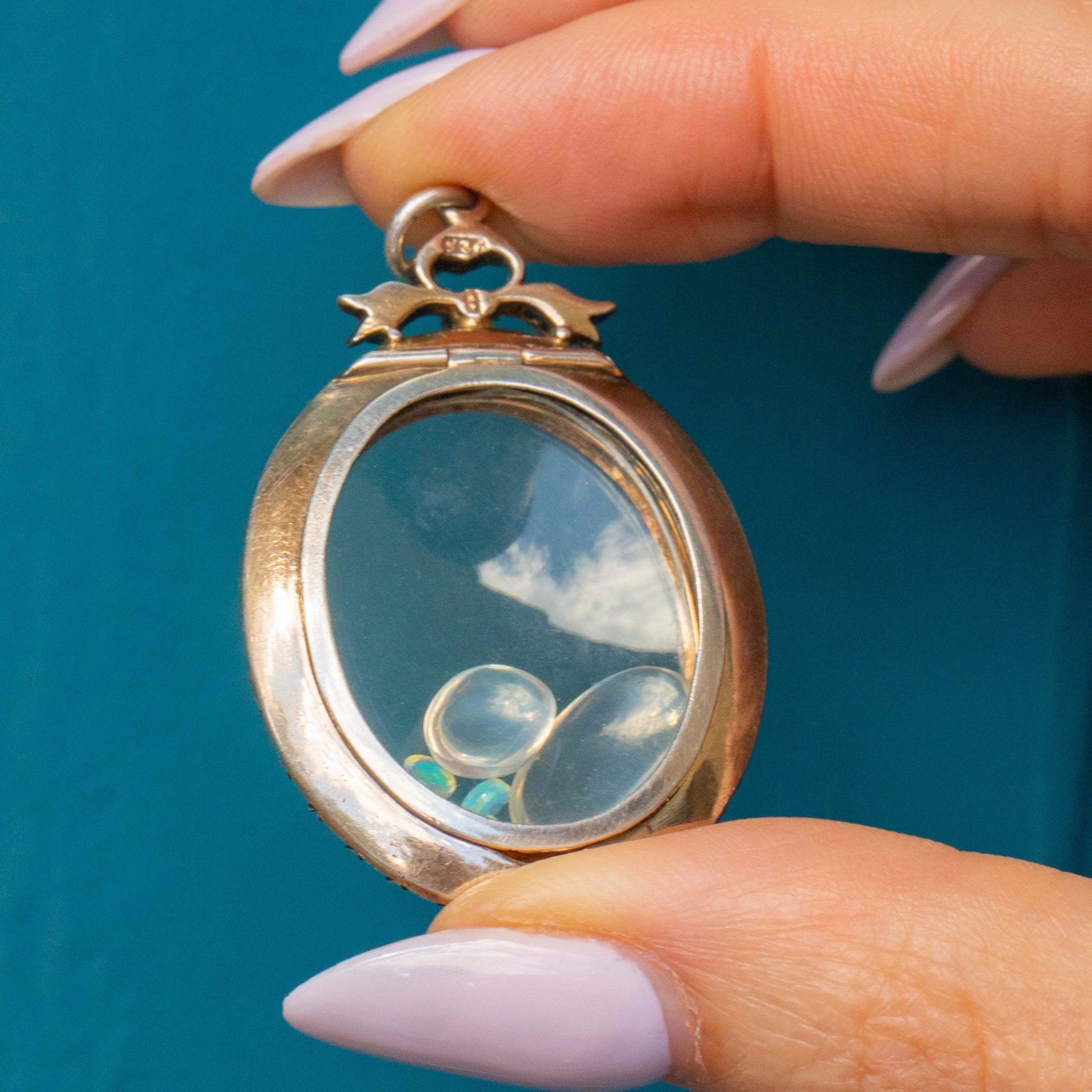 Edwardian Silver Paste Shaker Locket, Loose Moonstone & Opals