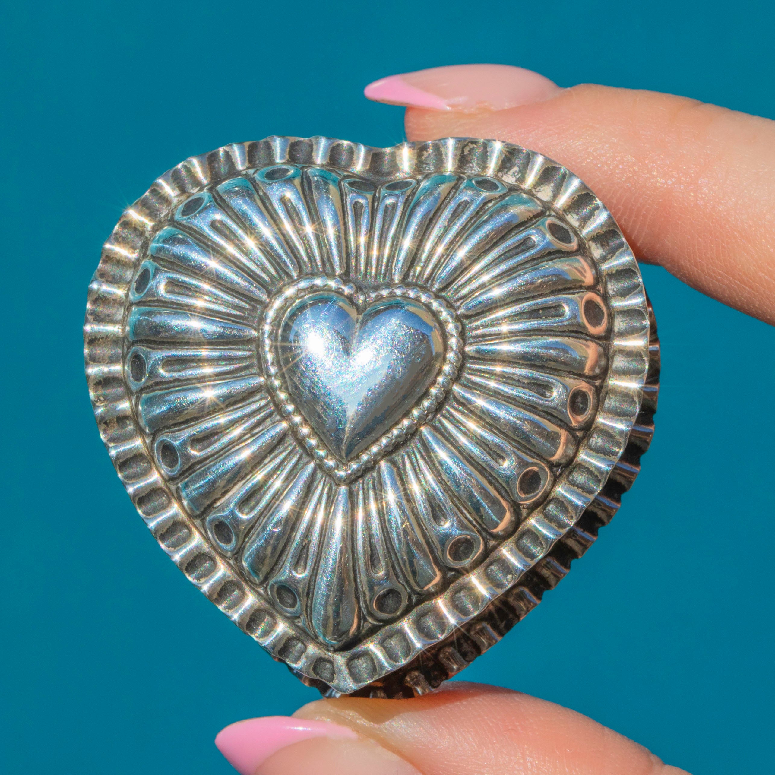 Edwardian Silver Repousse Heart Trinket Box, c.1901