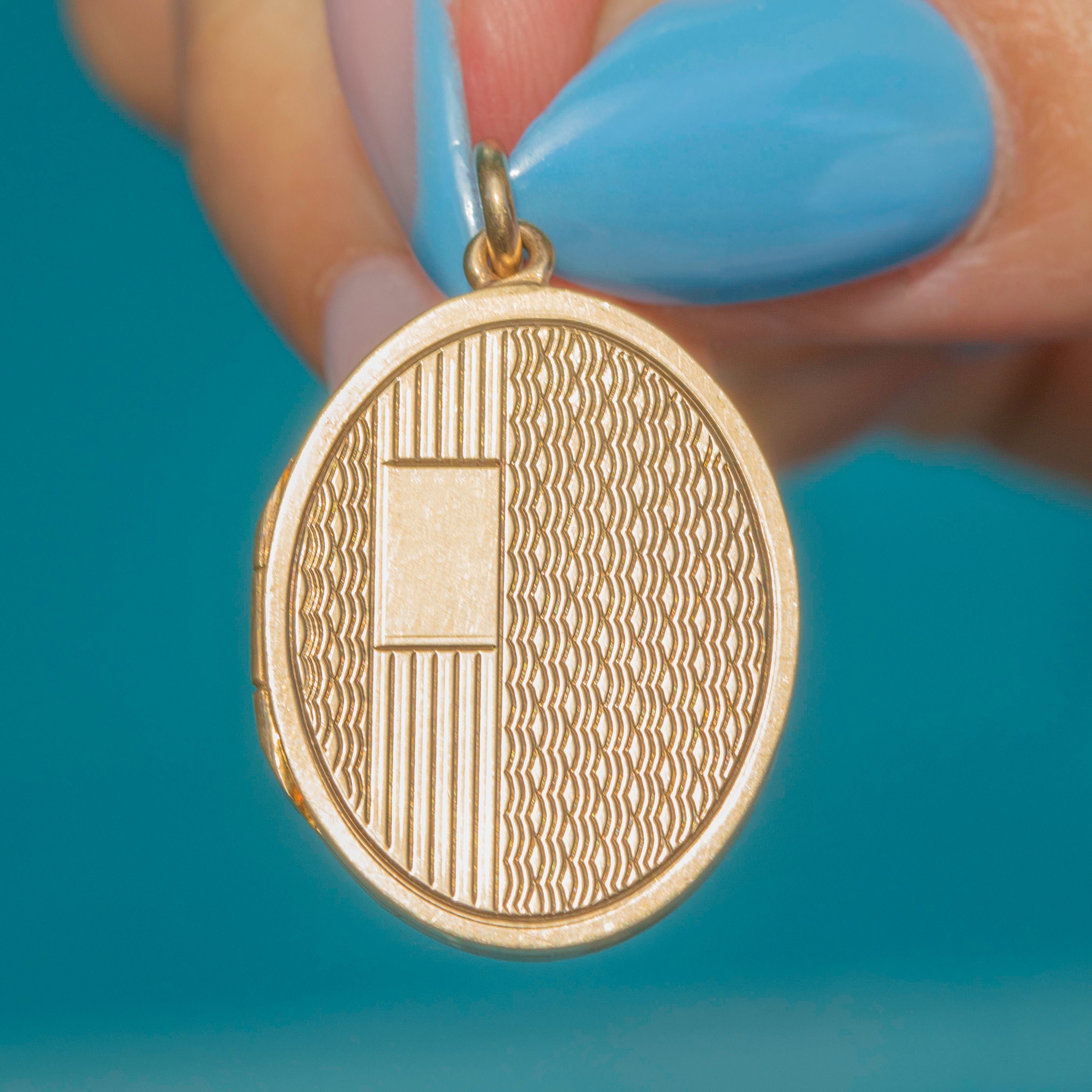 Edwardian Solid 9ct Gold Engraved Oval Locket, c.1907