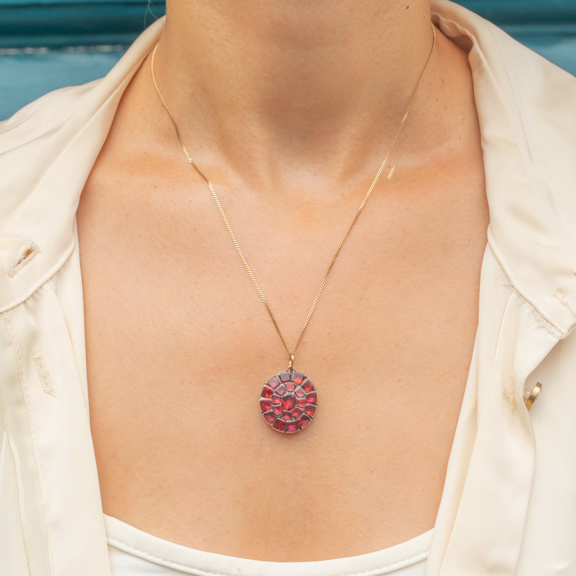 English Georgian Era Foiled Flat Garnet Cluster Pendant, c.1800