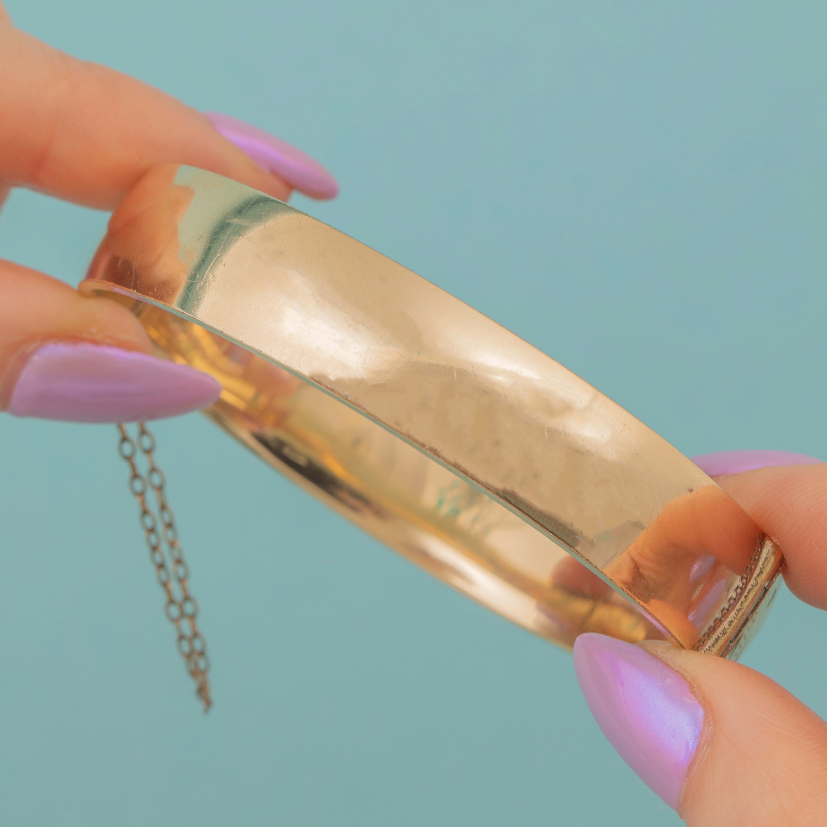 Formed of a Metal core with a layer of 9ct rolled Gold on top, this vintage bangle gives the appearance of solid Gold for a fraction of the price, and no one would know the difference!