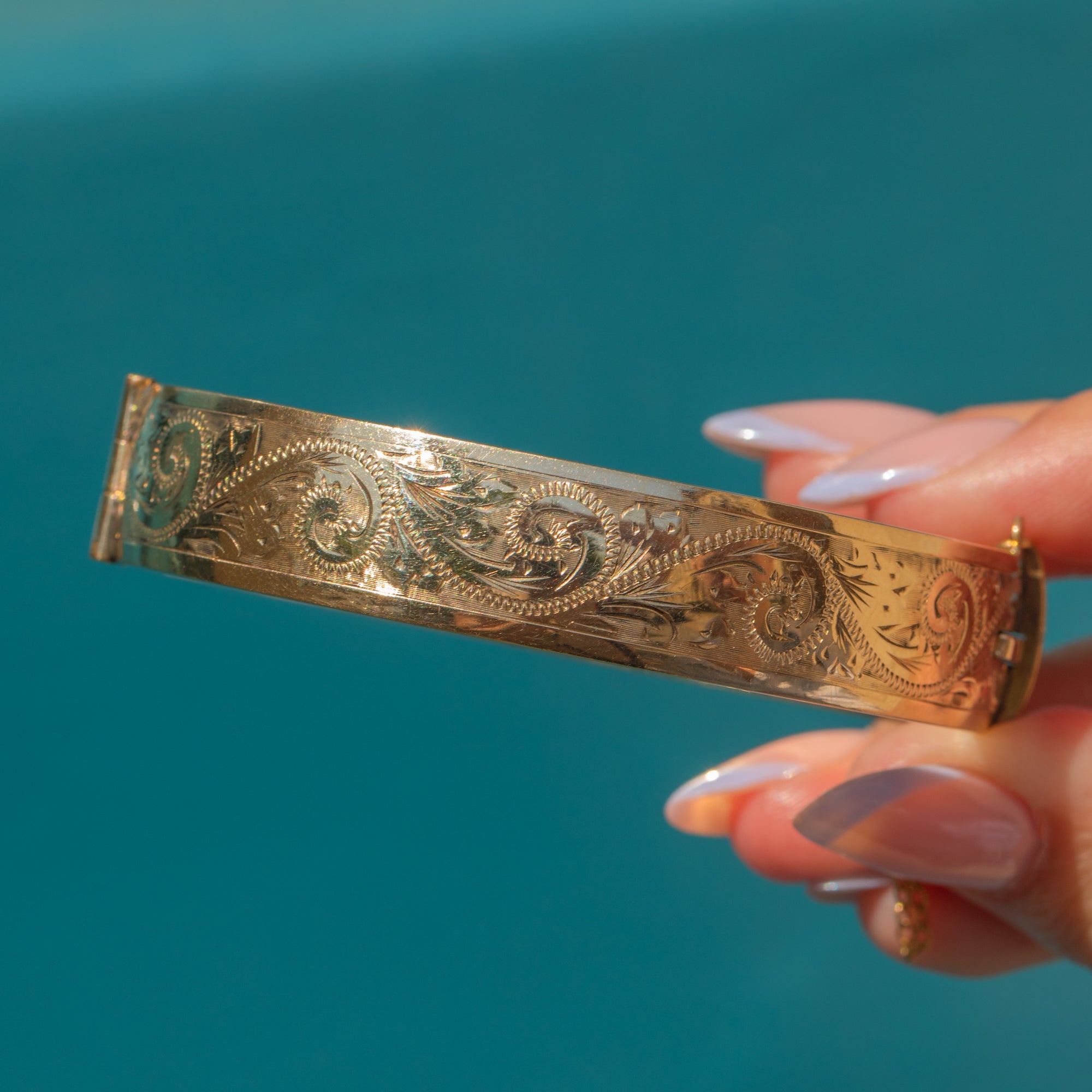 Featuring a classy engraved pattern, this vintage bangle will add a decorative finishing touch to your attire. Chunky 9ct buttery Gold bangles are the perfect versatile choice for a jewellery collection!