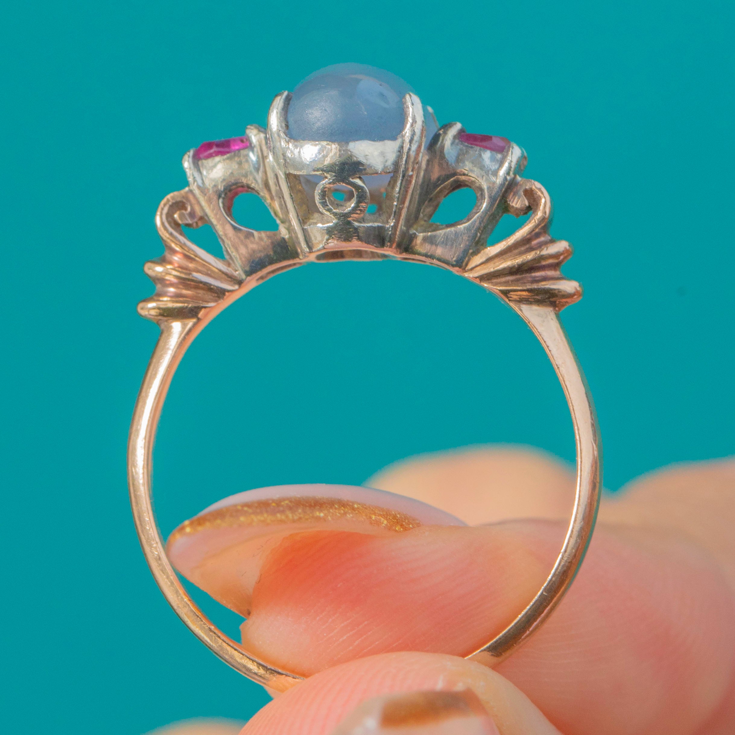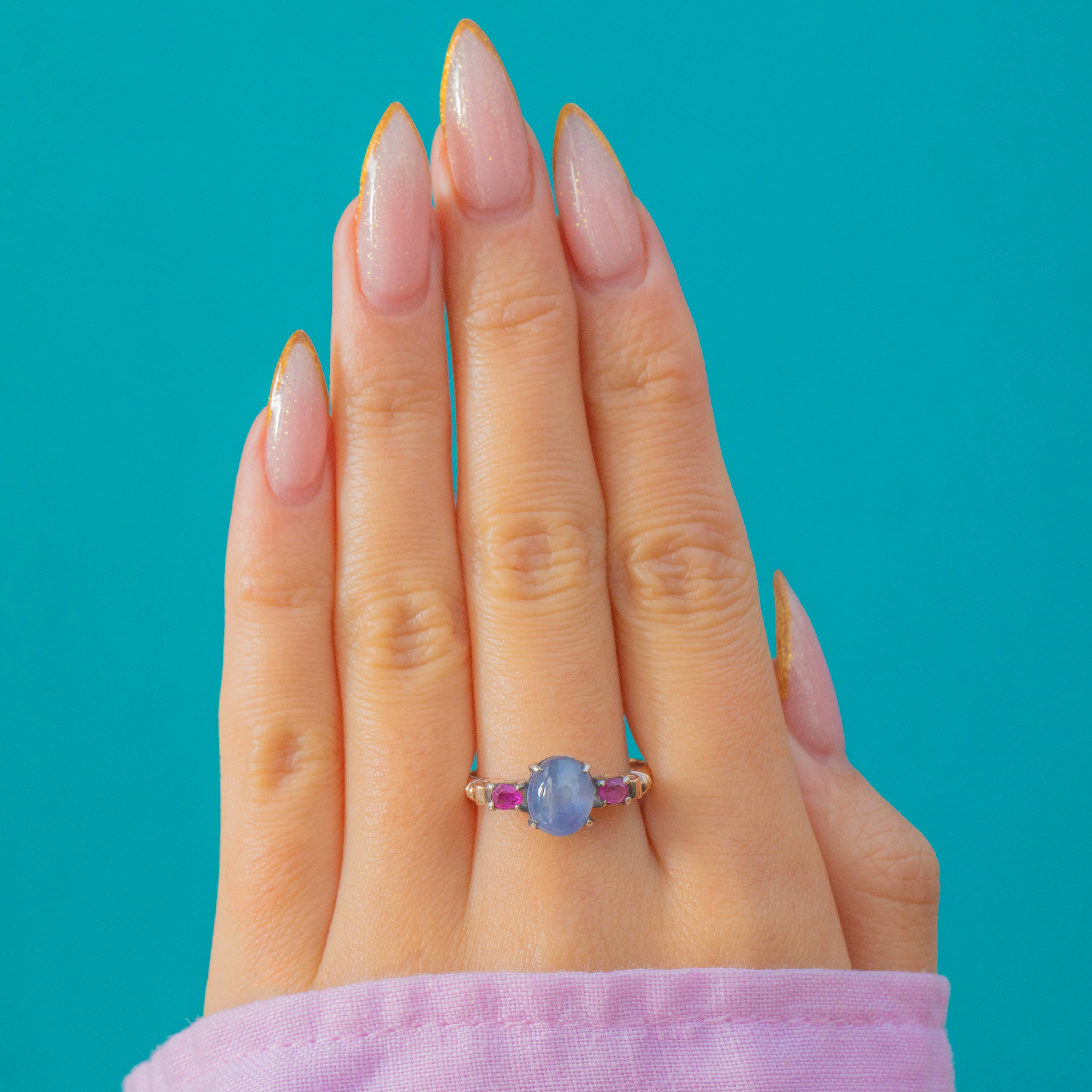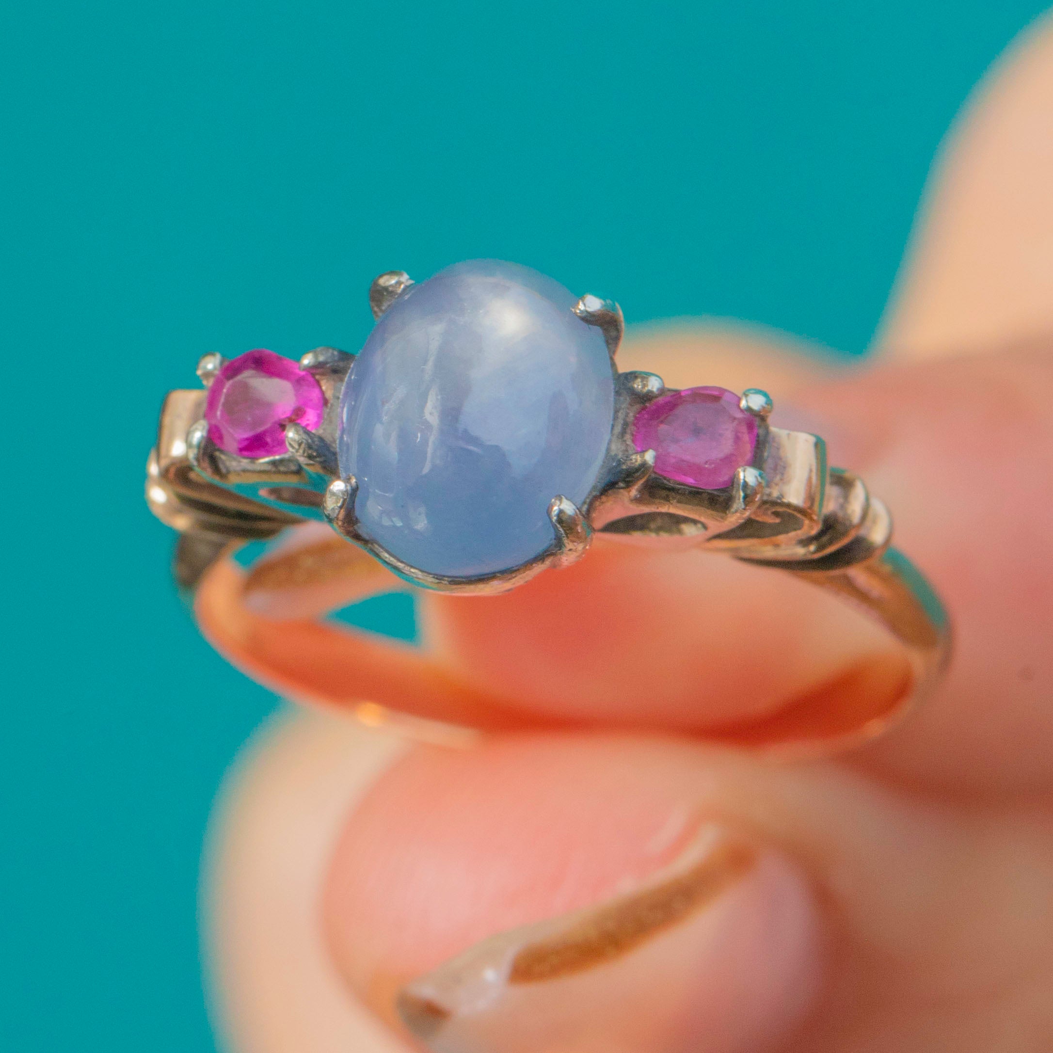 ヨーロッパ製 Art Deco スターサファイア&ルビー リング 9ct ゴールド