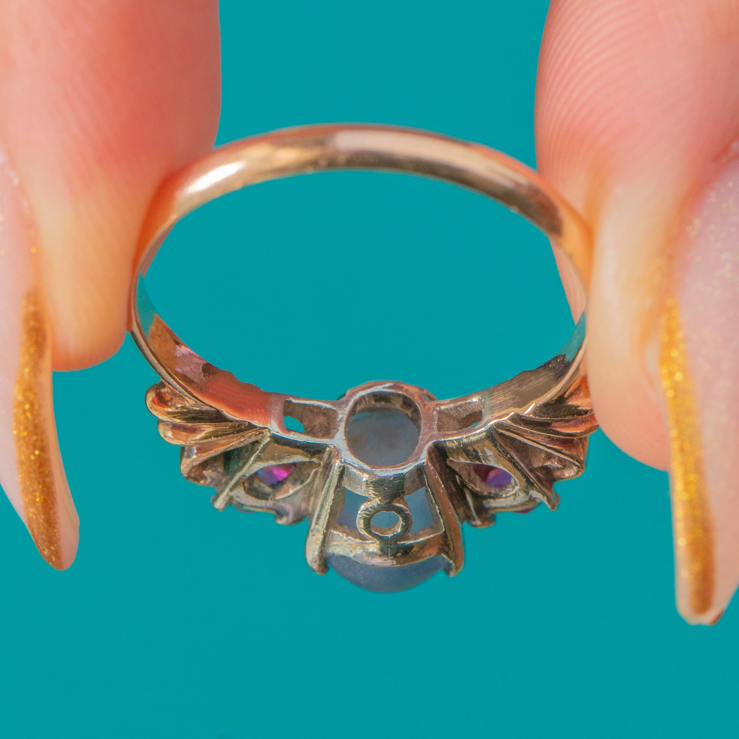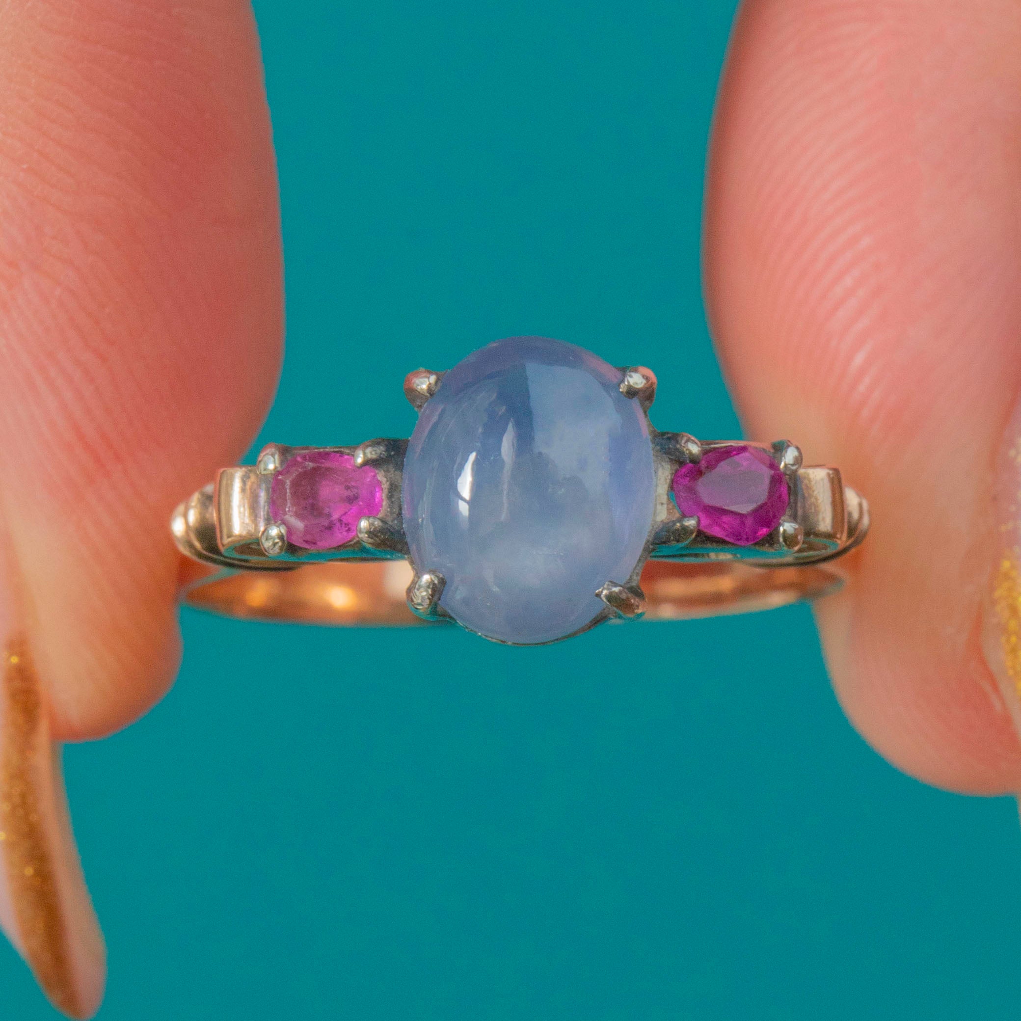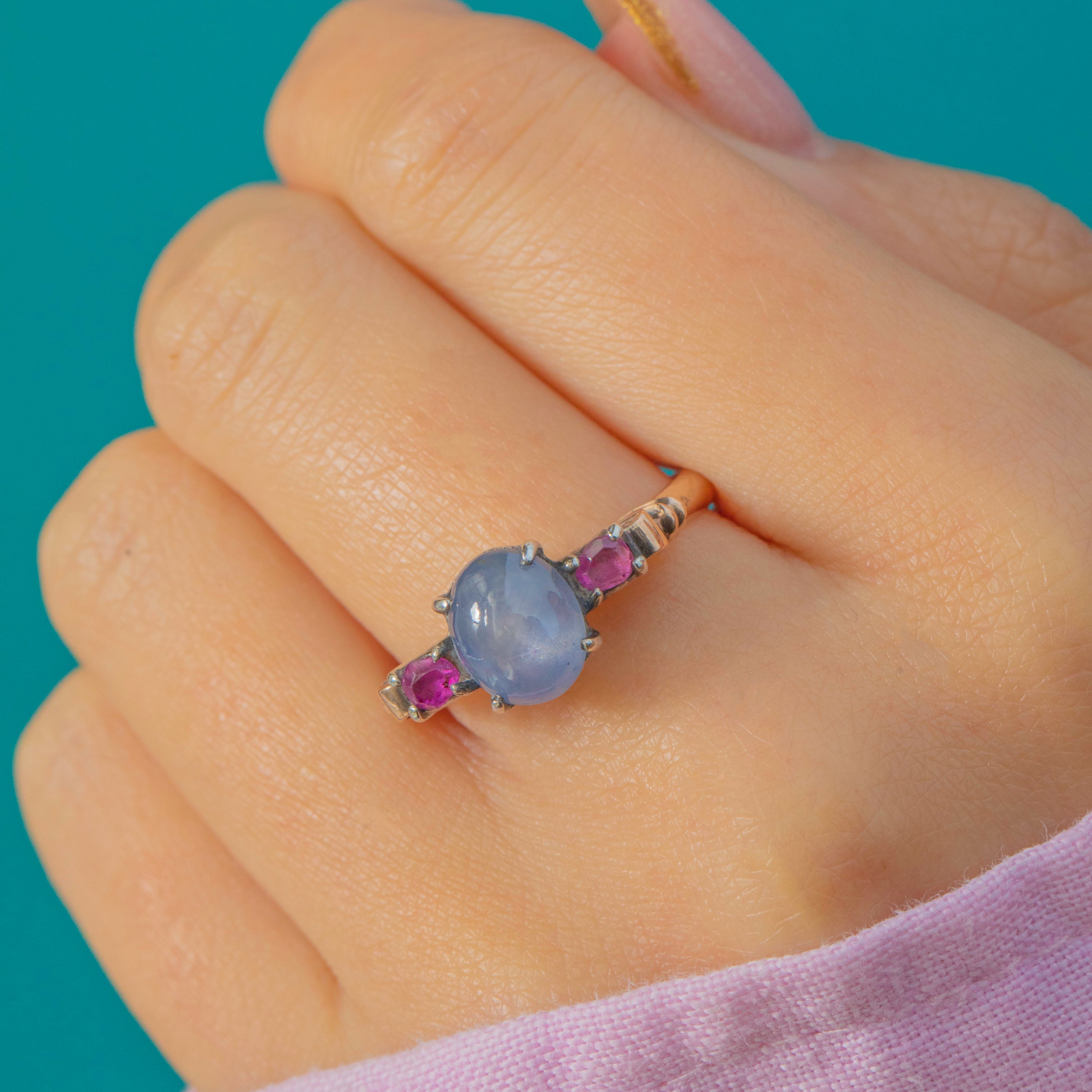 ヨーロッパ製 Art Deco スターサファイア&ルビー リング 9ct ゴールド
