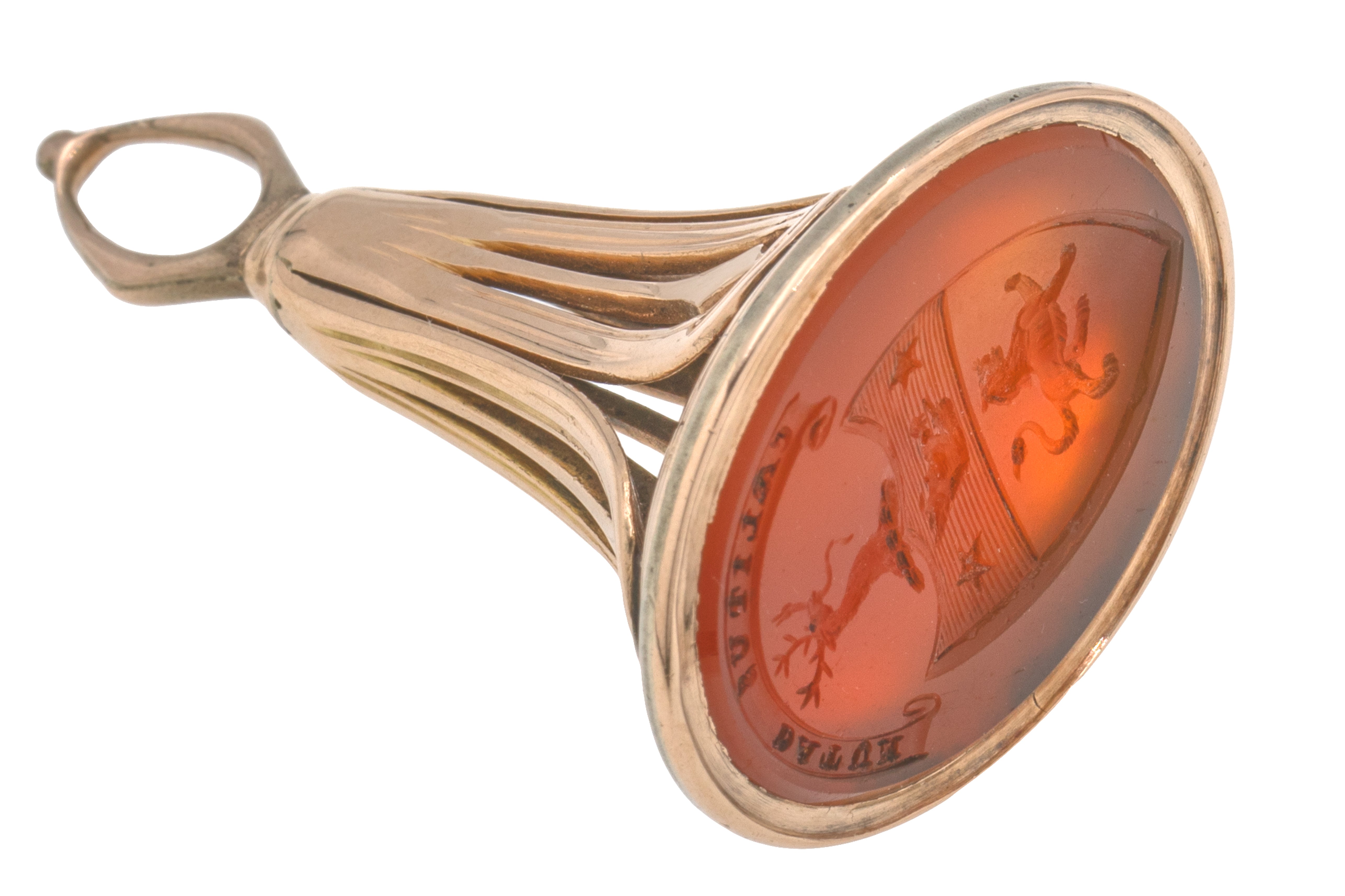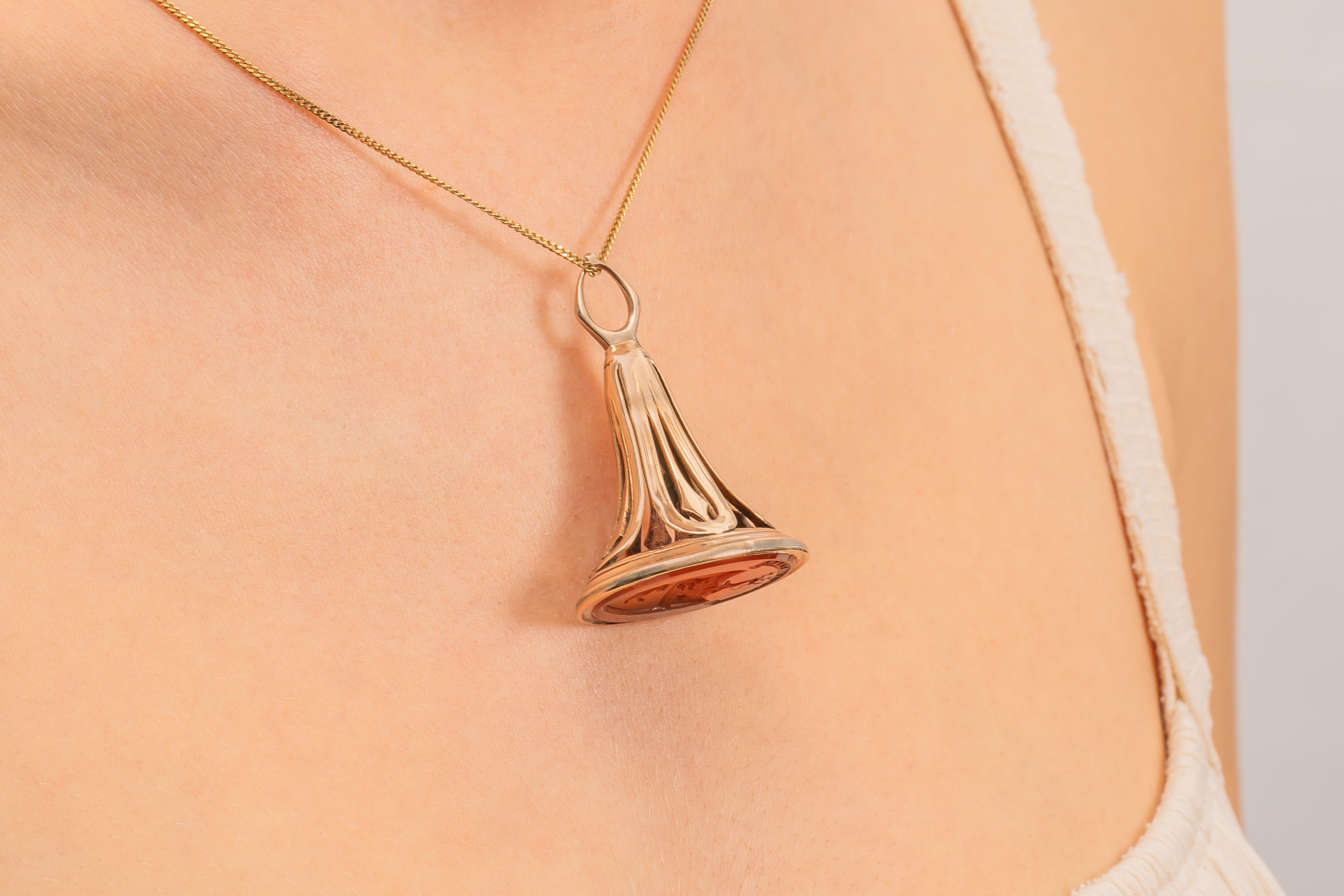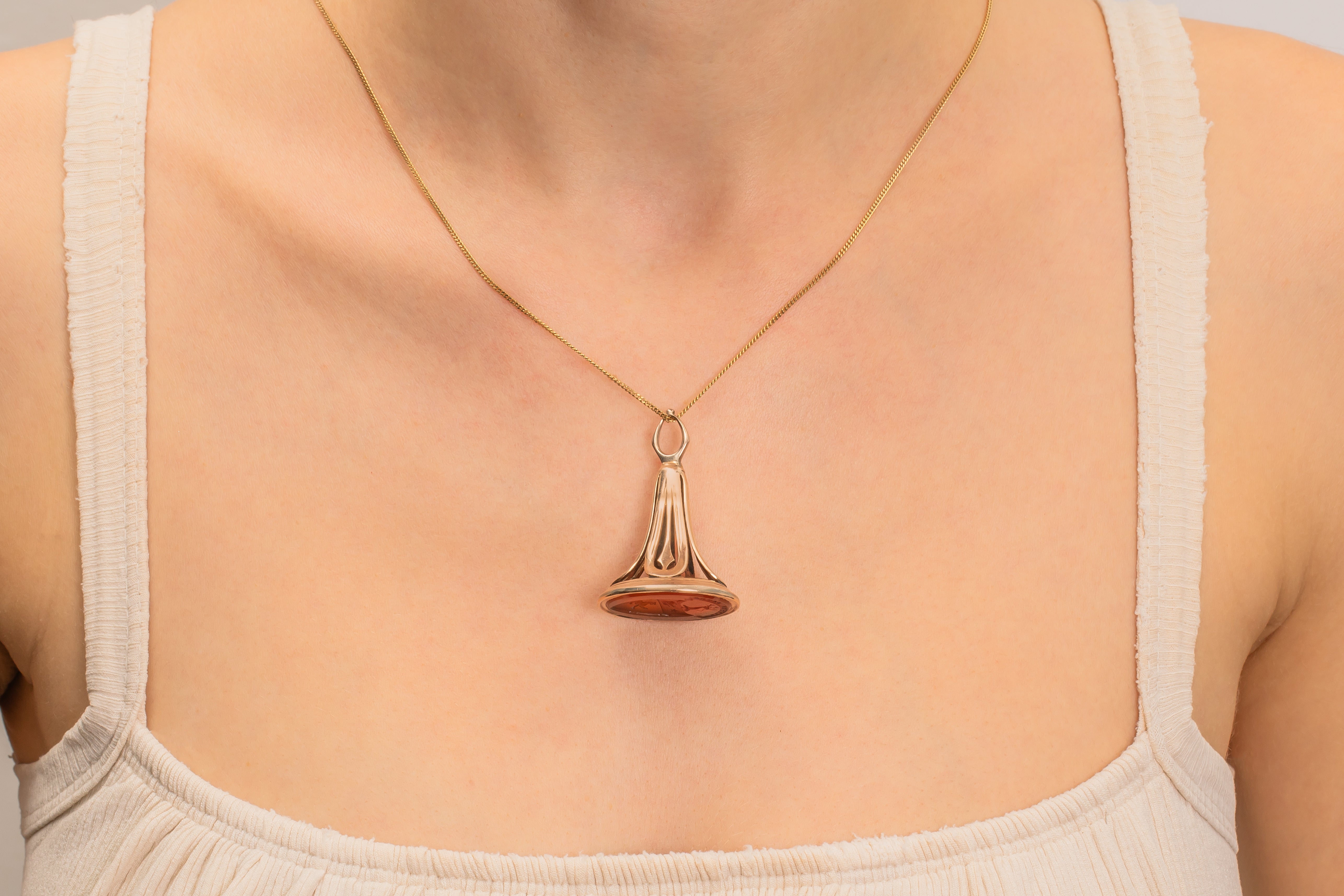 ジョージアン 9ct ゴールド カーネリアン インタグリオ フォブ ペンダント、「神からの贈り物」