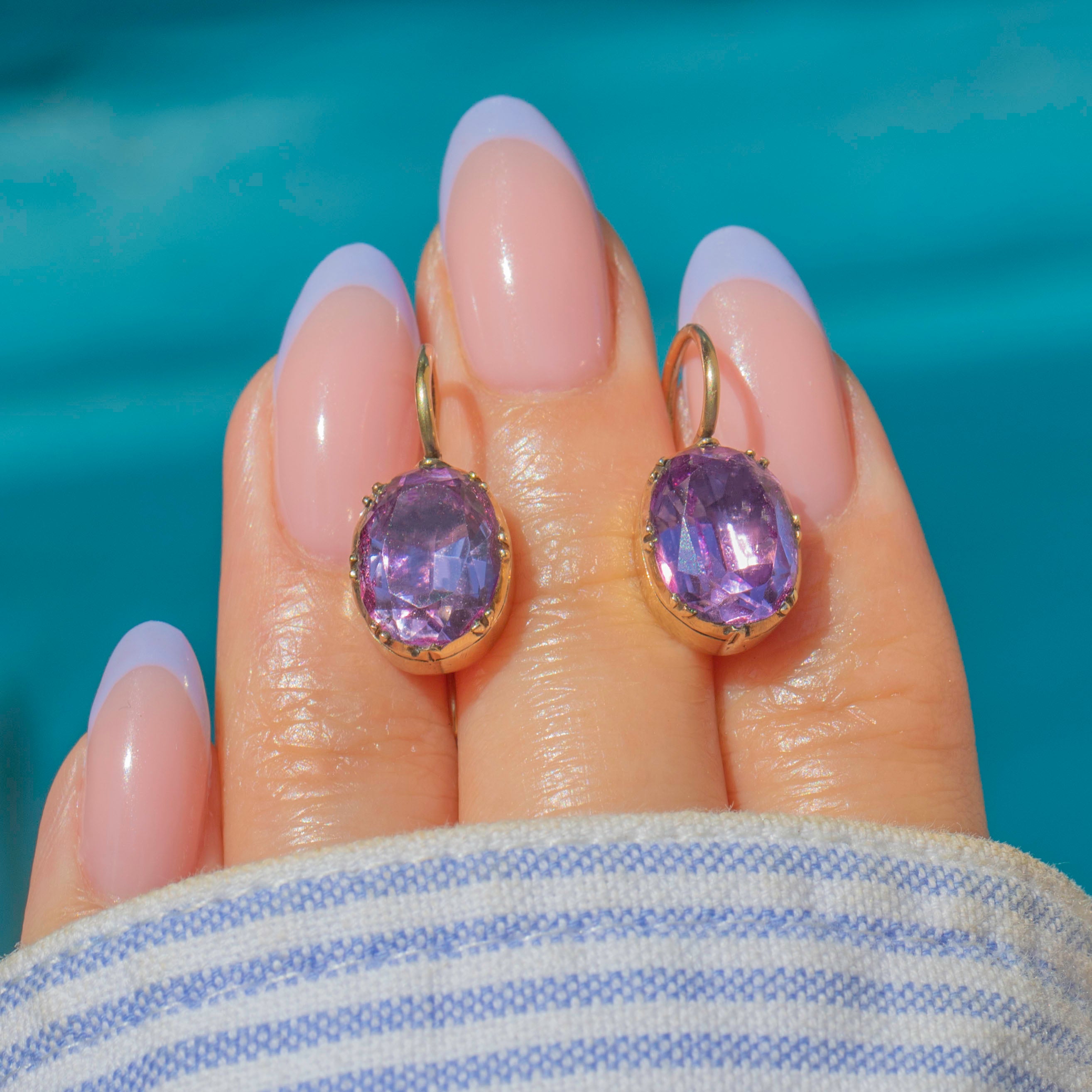 The Amethysts are displayed within buttery 15ct Gold, with decorative crimpled details in classic Georgian style. Endlessly pleasing to look at and with plenty of wear potential, don't hesitate to make these exquisite antique Amethyst earrings yours!