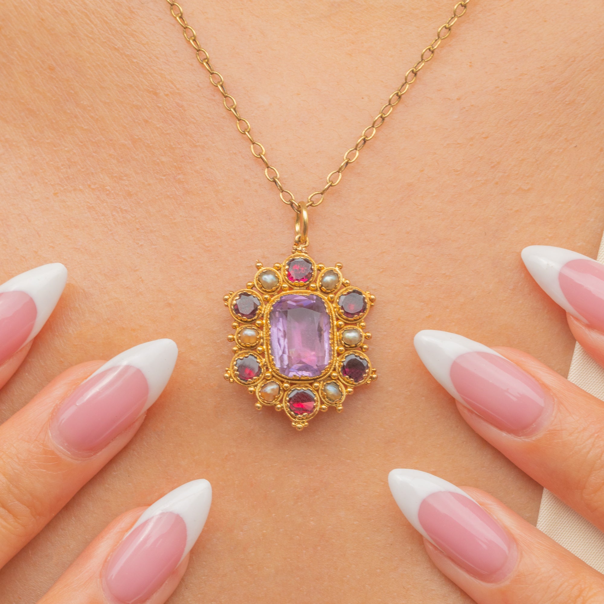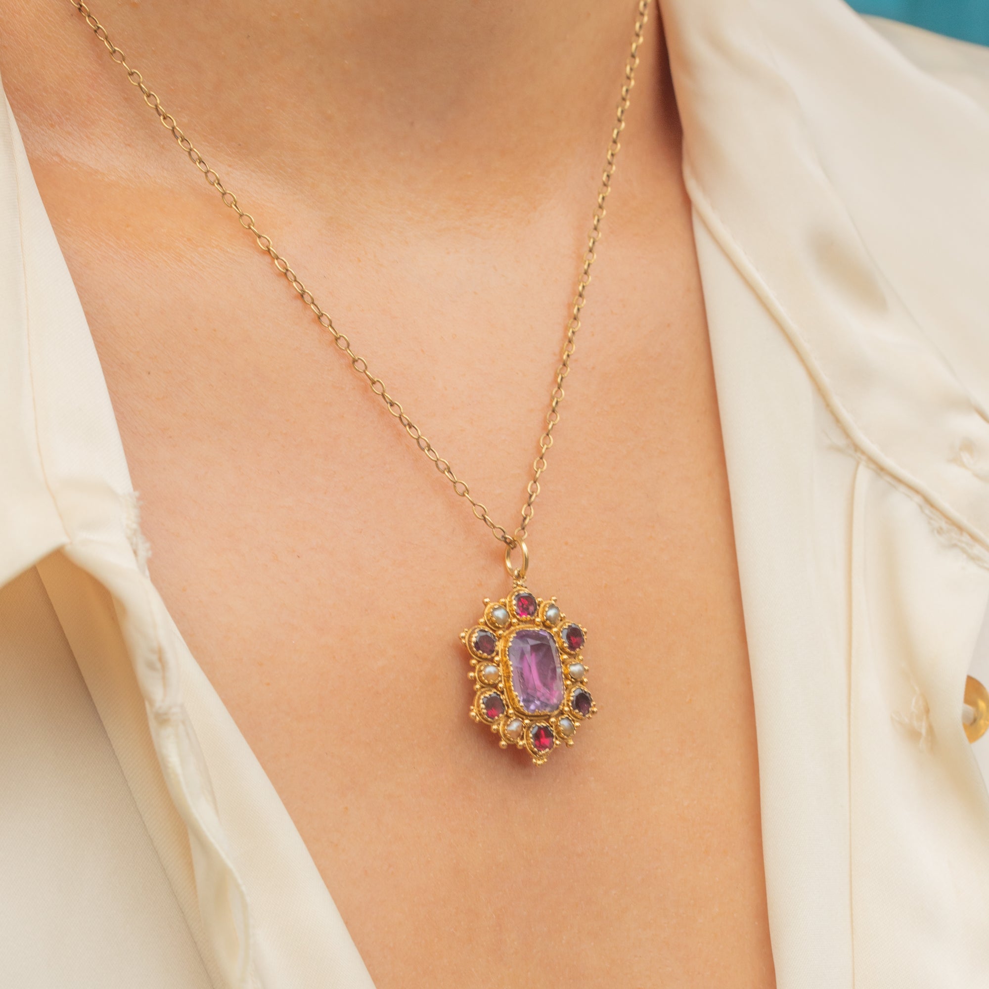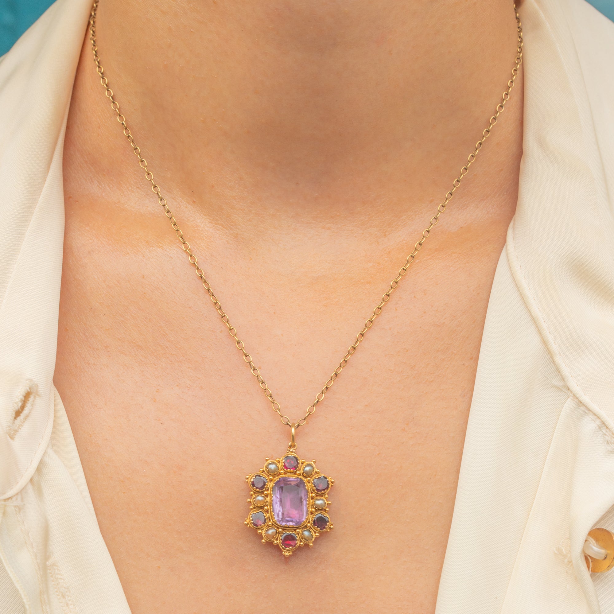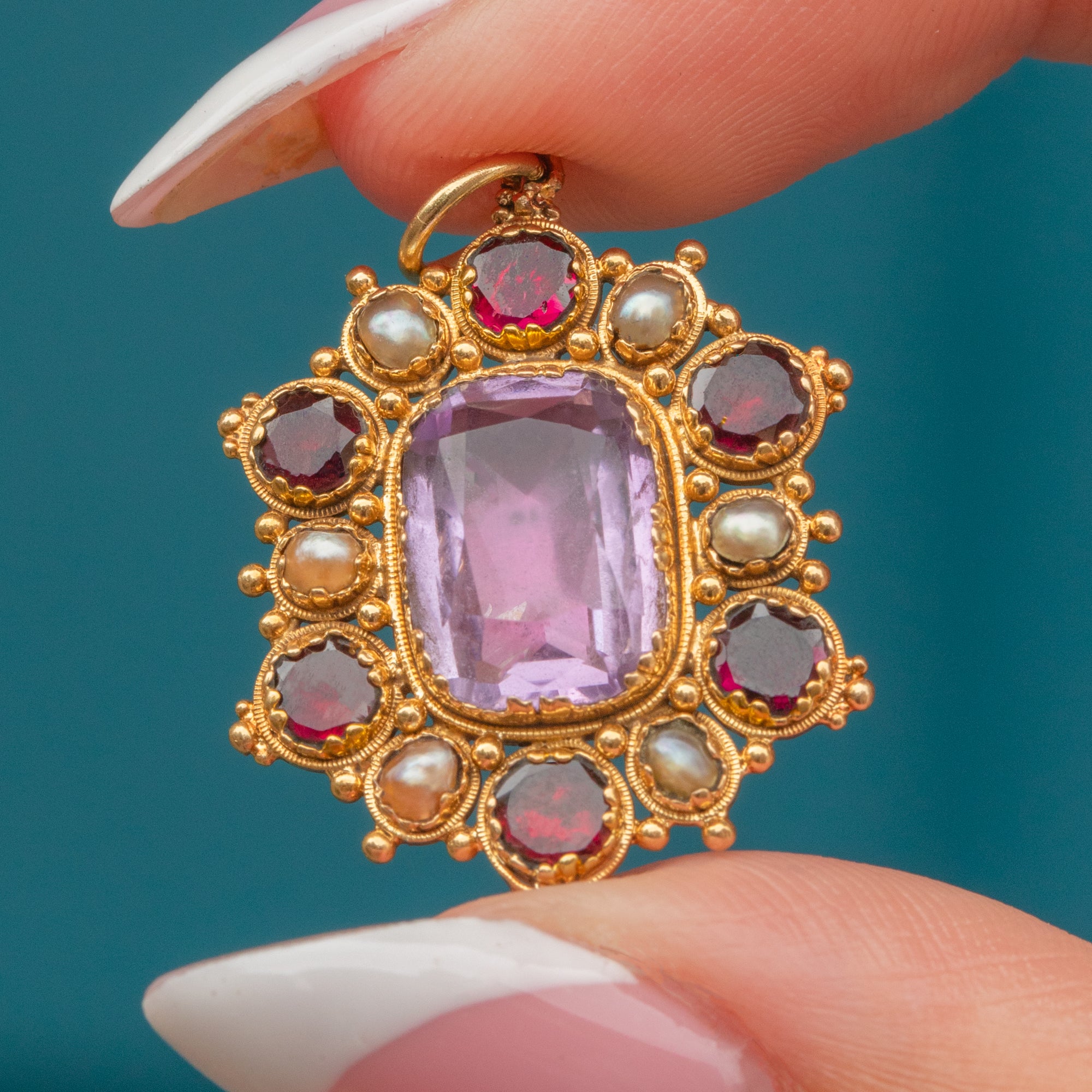 Georgian 15ct Gold Amethyst Garnet Pearl Charm