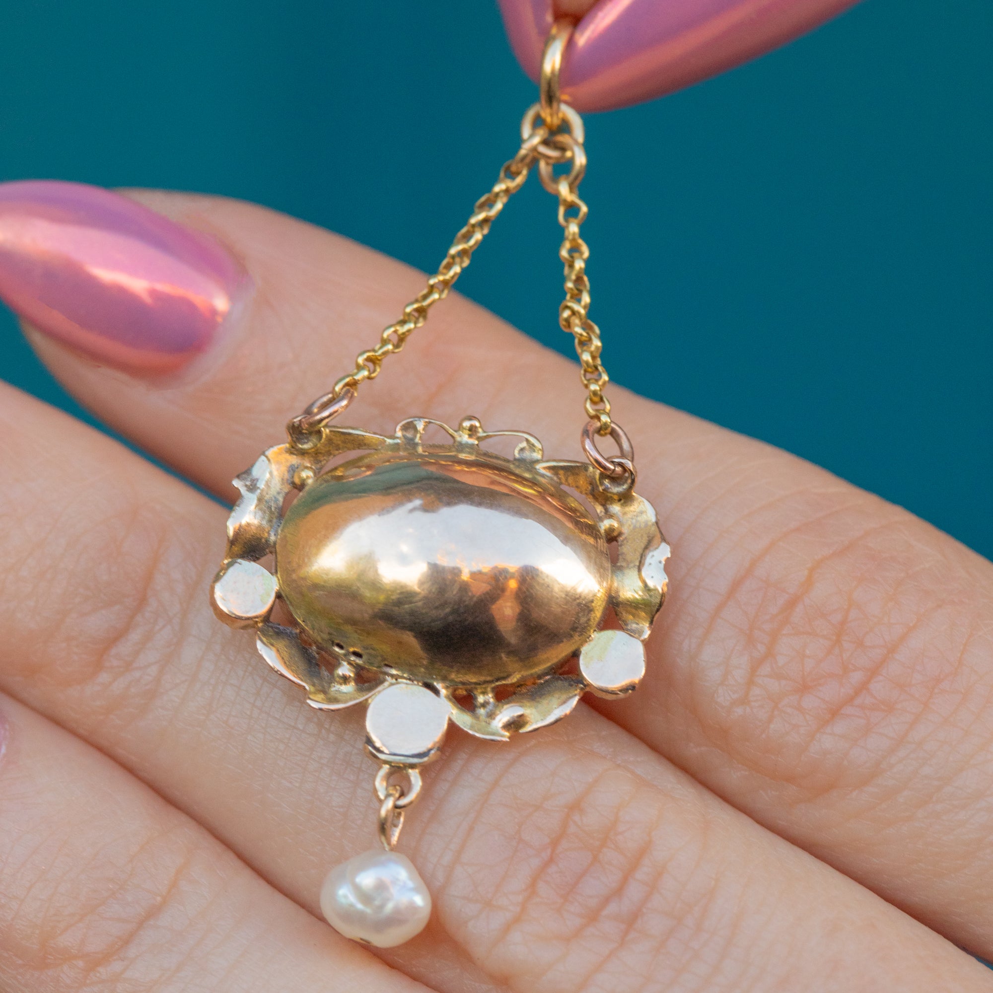 Suspended from two dainty belcher chains, this Georgian Amethyst pendant provides lovely fluidity and will create a striking statement once adorning your décolletage. With a domed back setting, comfort has been taken into account with this antique Pearl pendant, allowing you to wear it with ease from day to night.