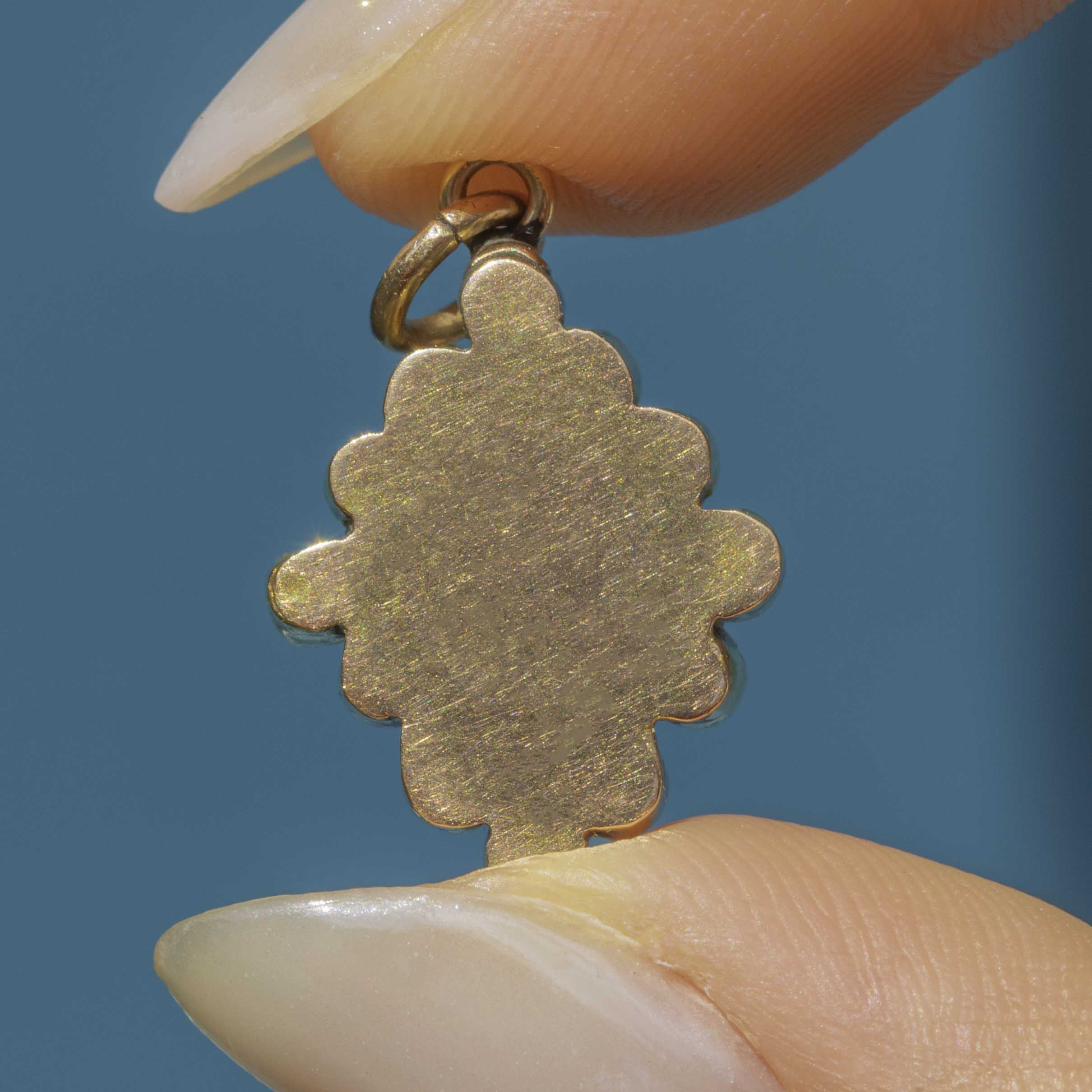 The pastel gemstones are set within bright and glossy 15ct Gold, adding a charming warmth to this Georgian pendant. Complete with a smooth back, this antique charm provides comfortable wear.