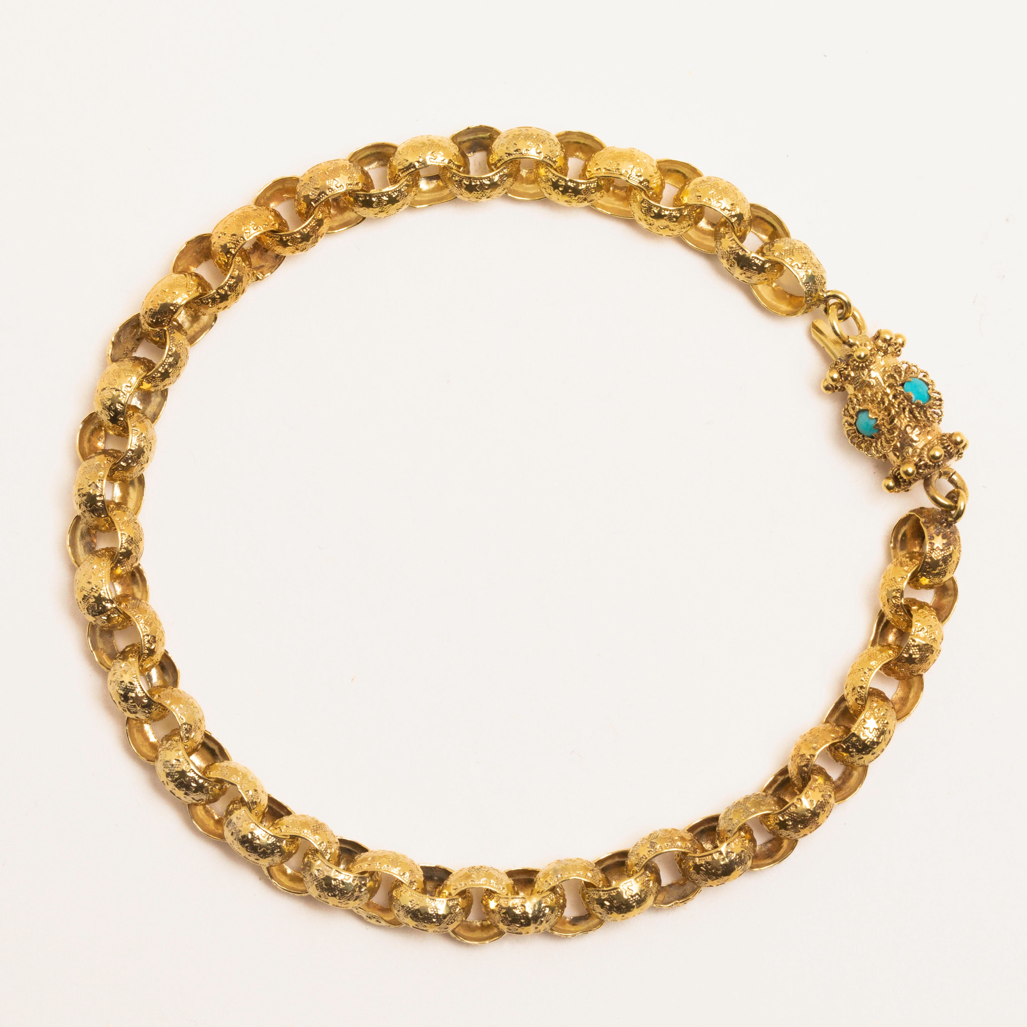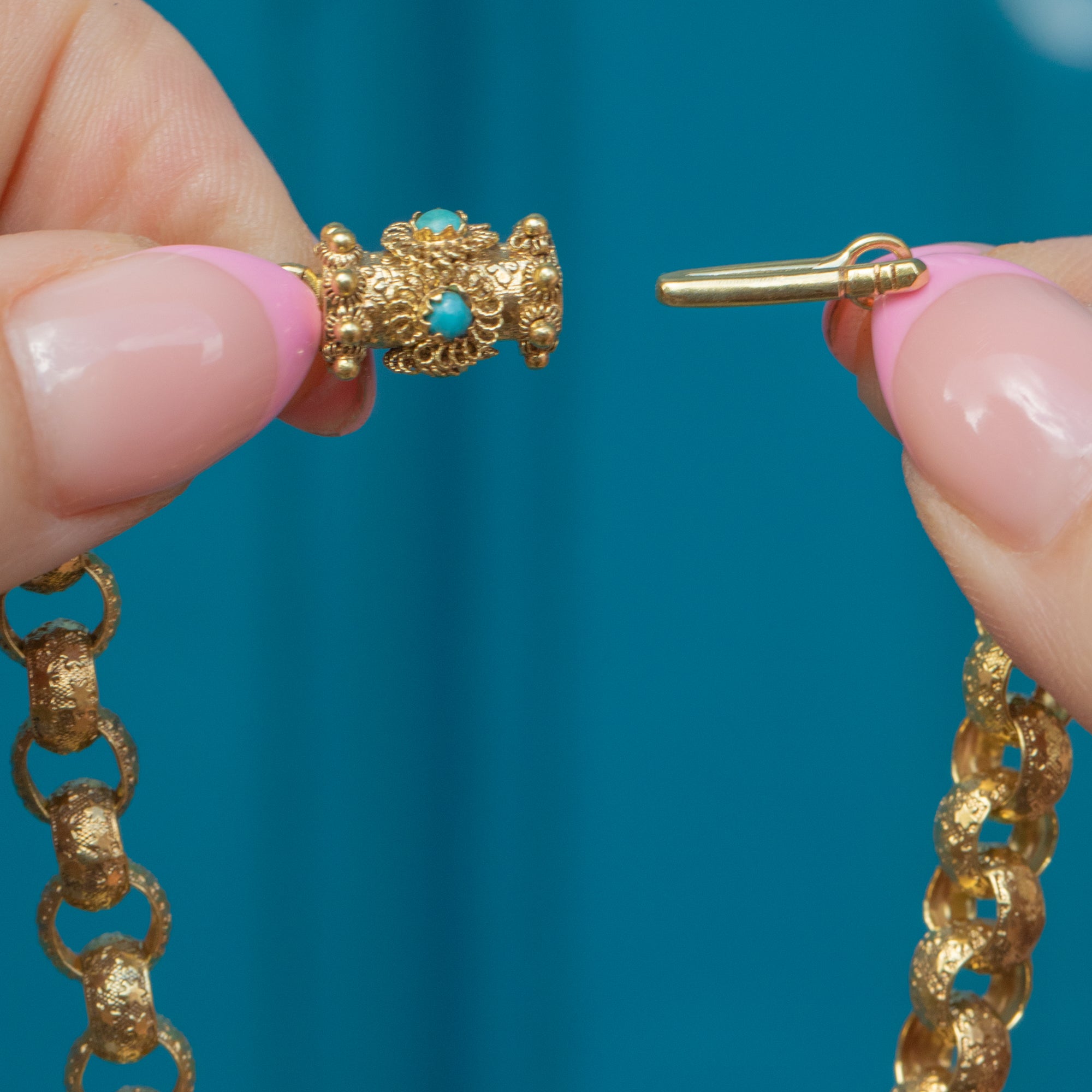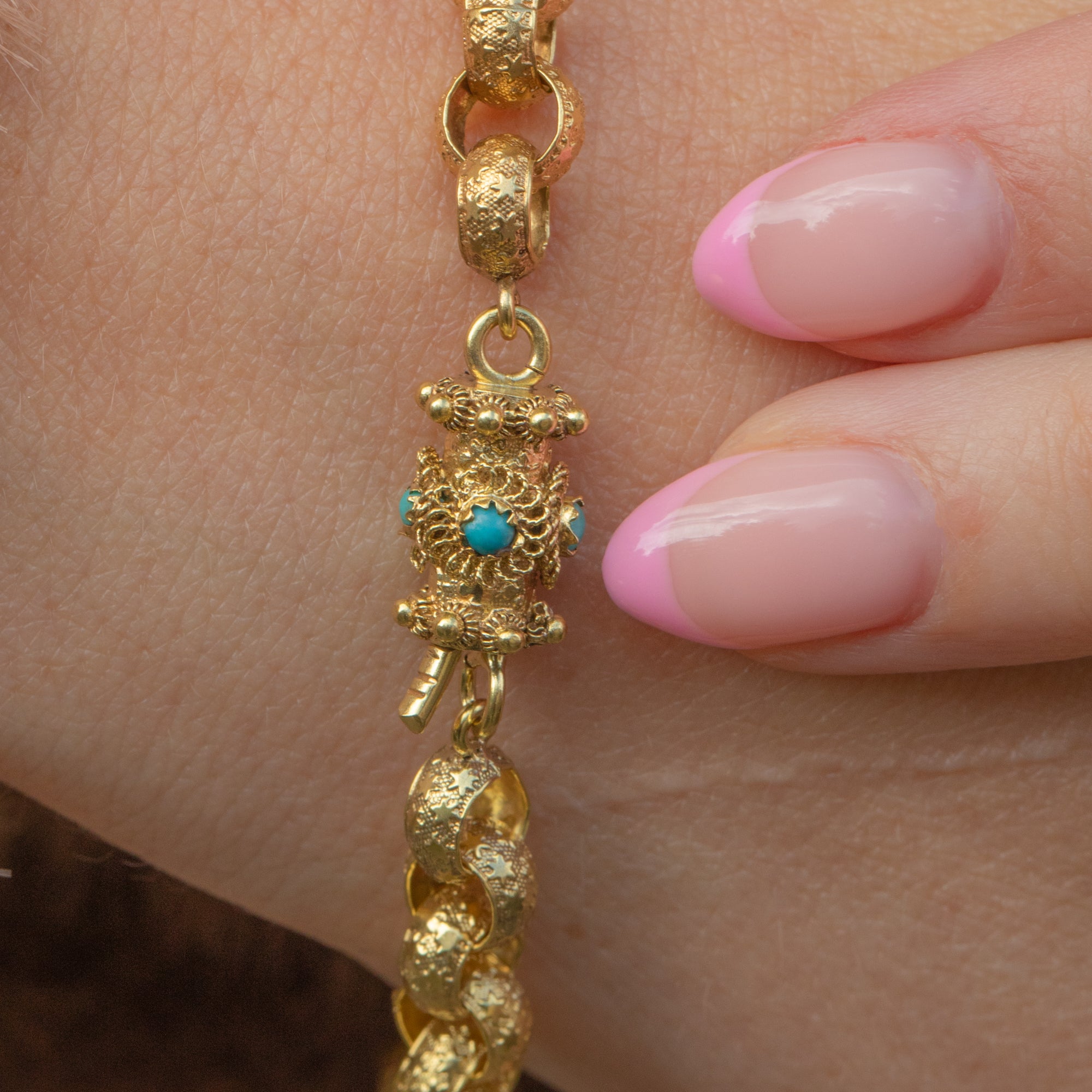 RARE Georgian 15ct Gold Star Link Bracelet, Turquoise Cannetille Clasp