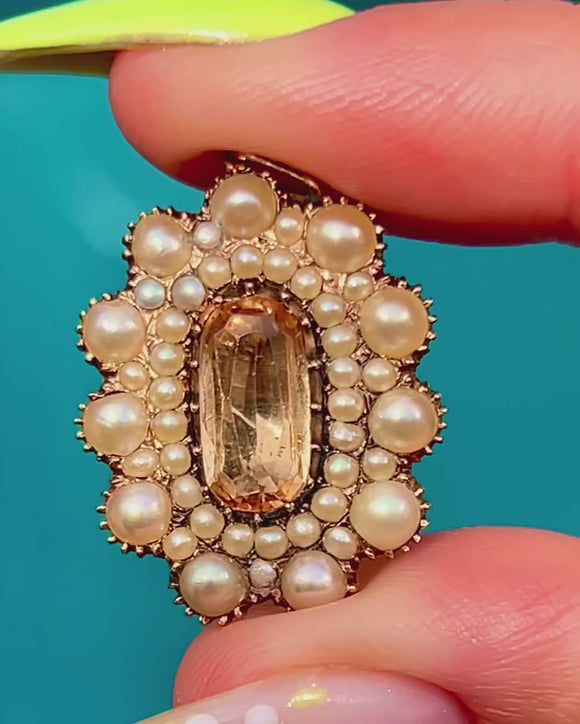 Georgian 15カラット ゴールド トパーズ パール クラスター ペンダント