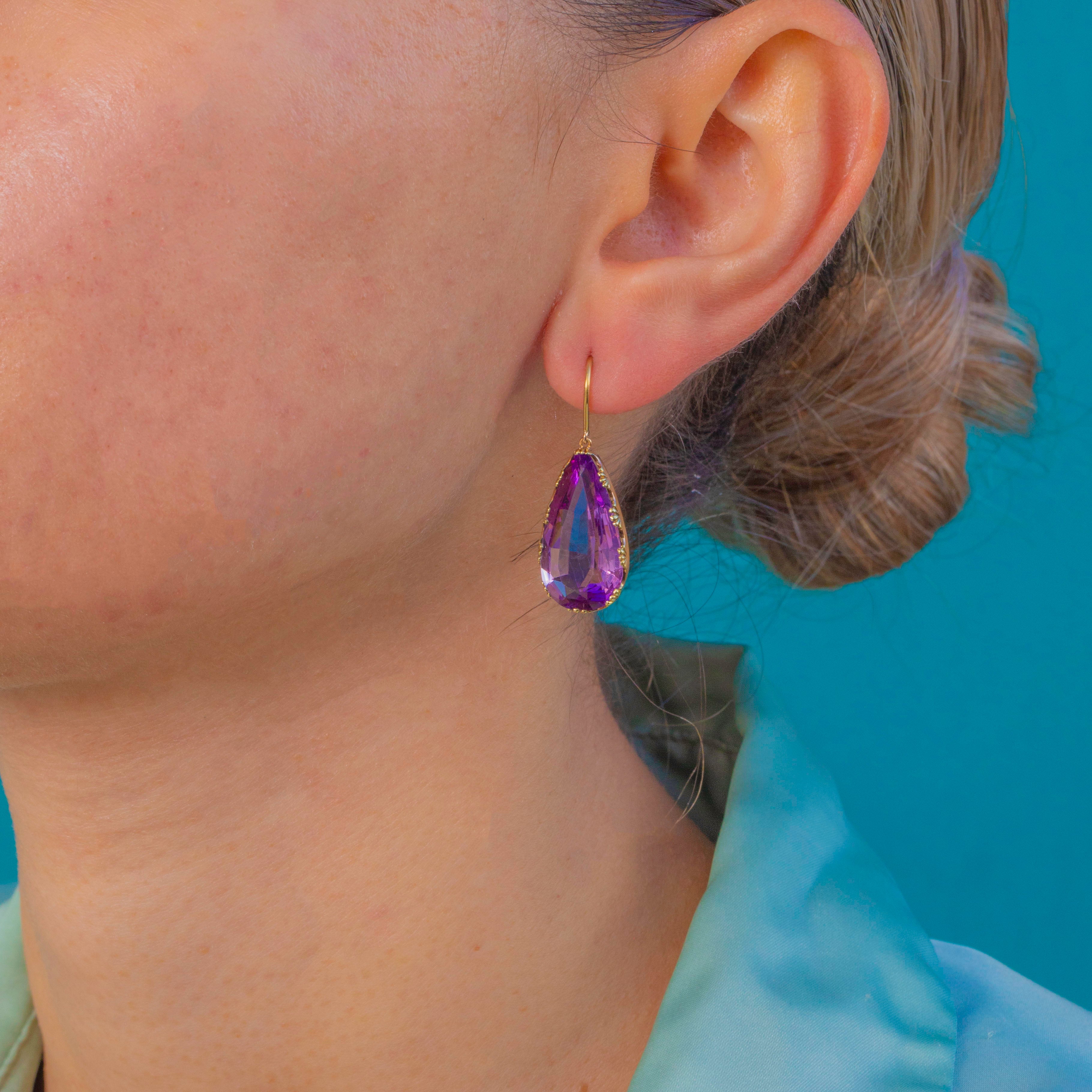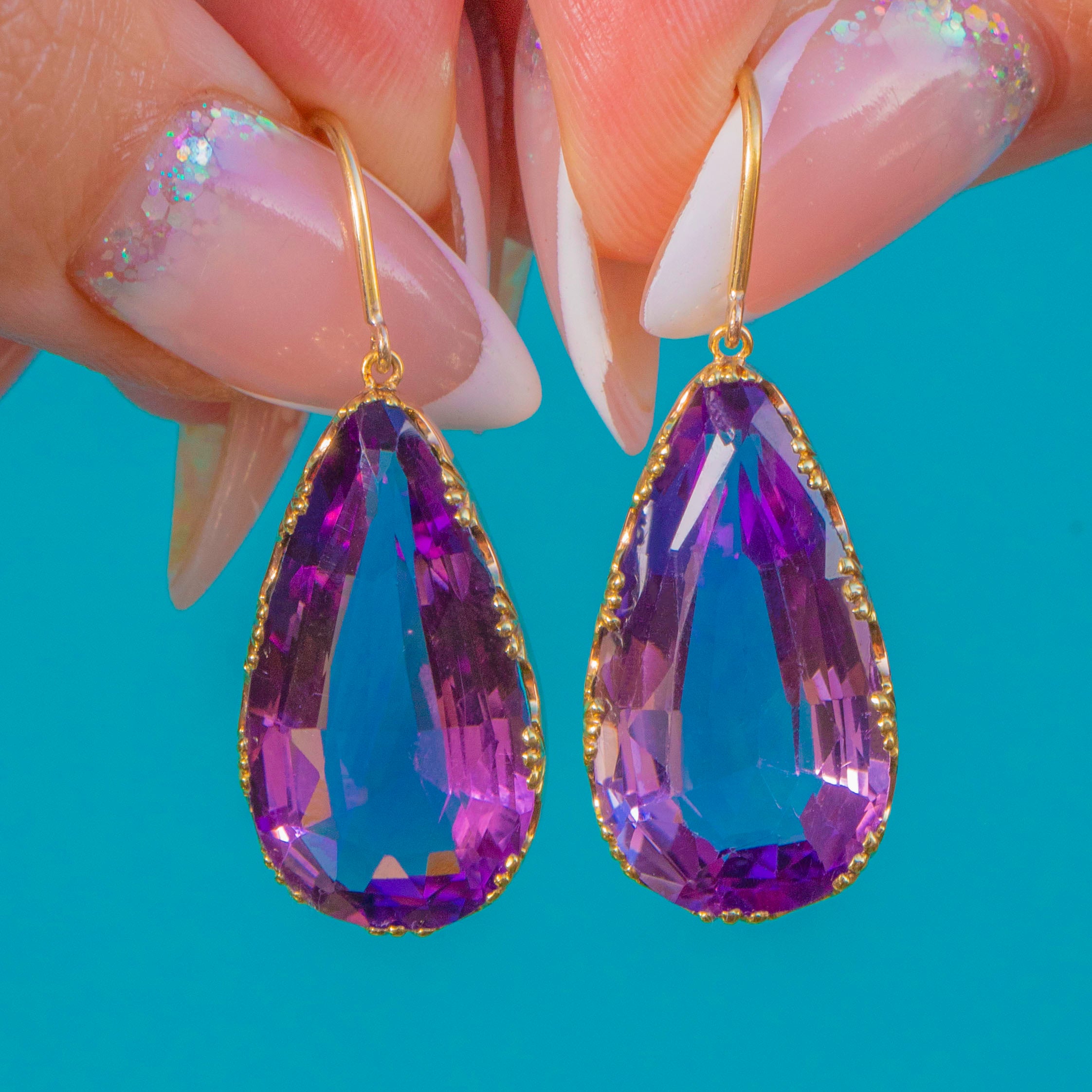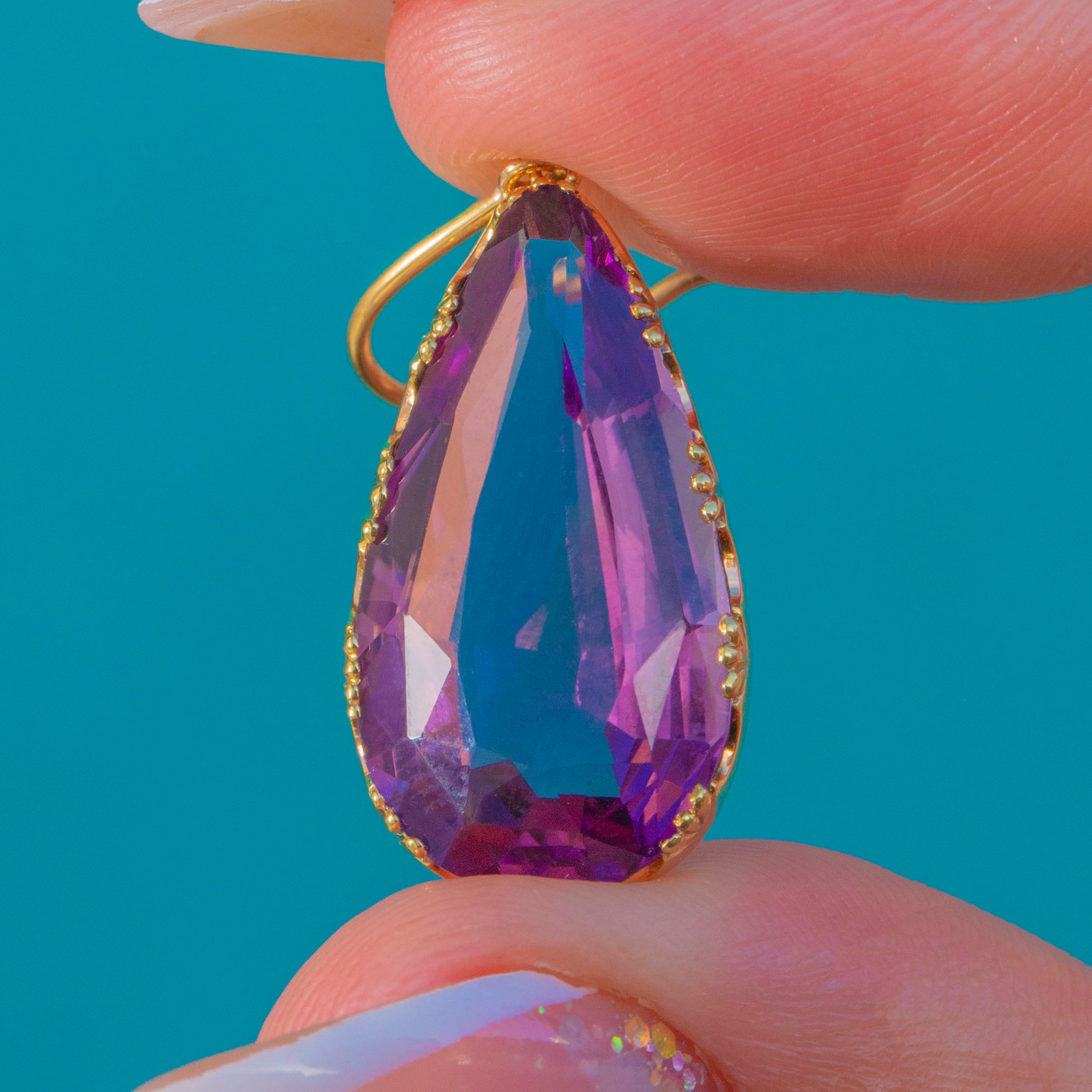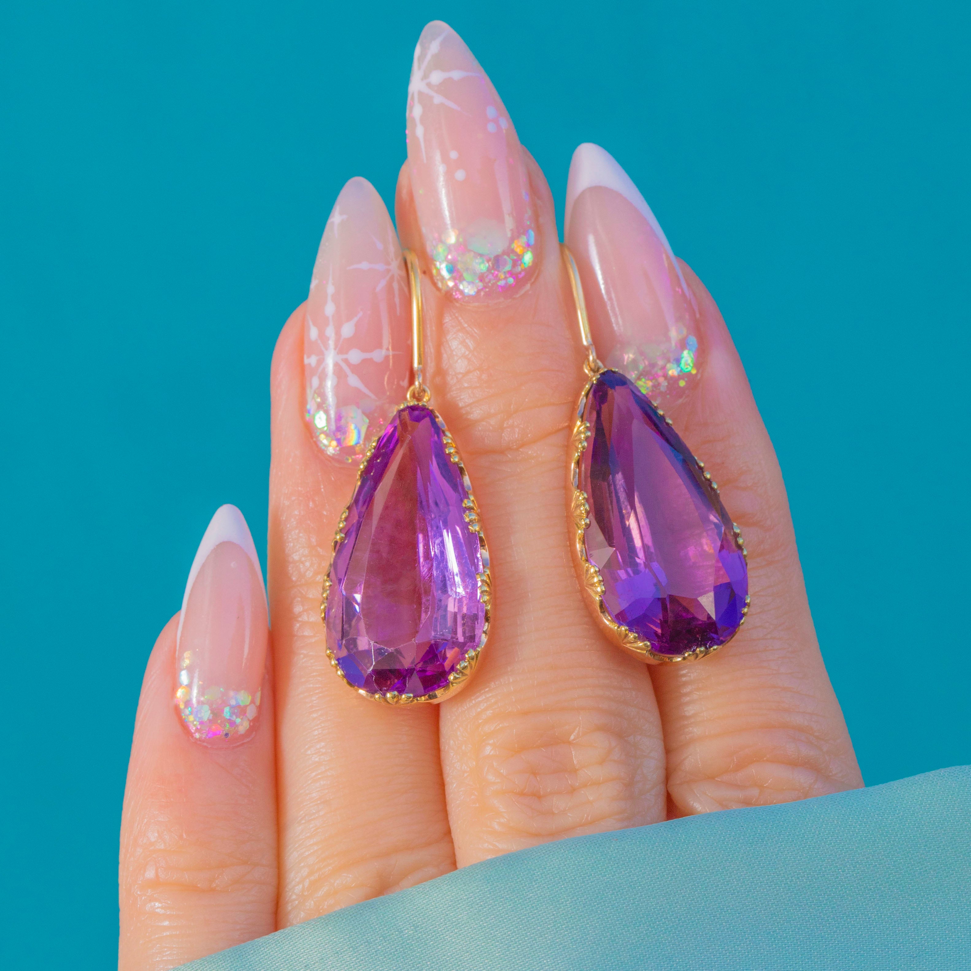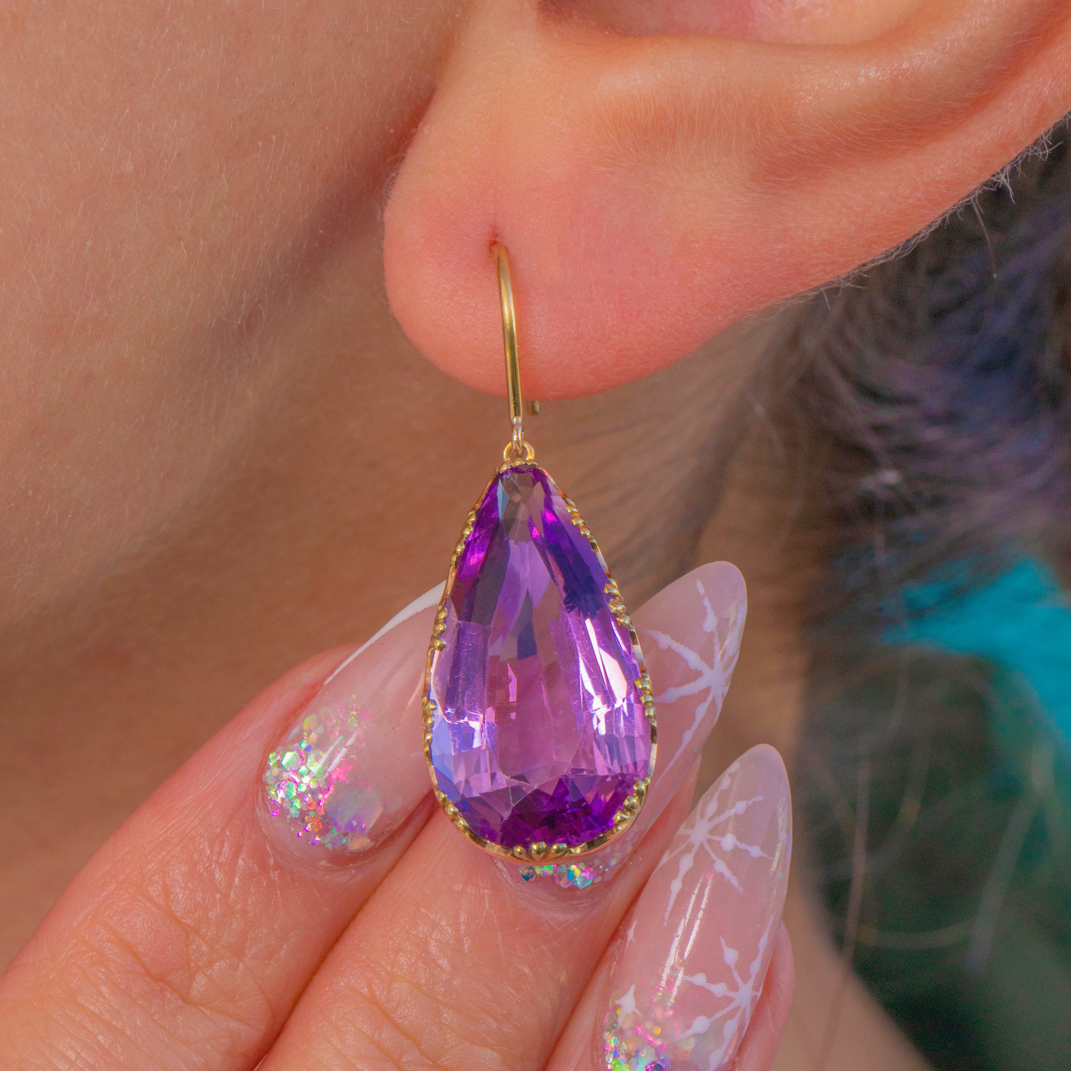ジョージアン 18金 アメシスト ティアドロップ ピアス 6.45カラット