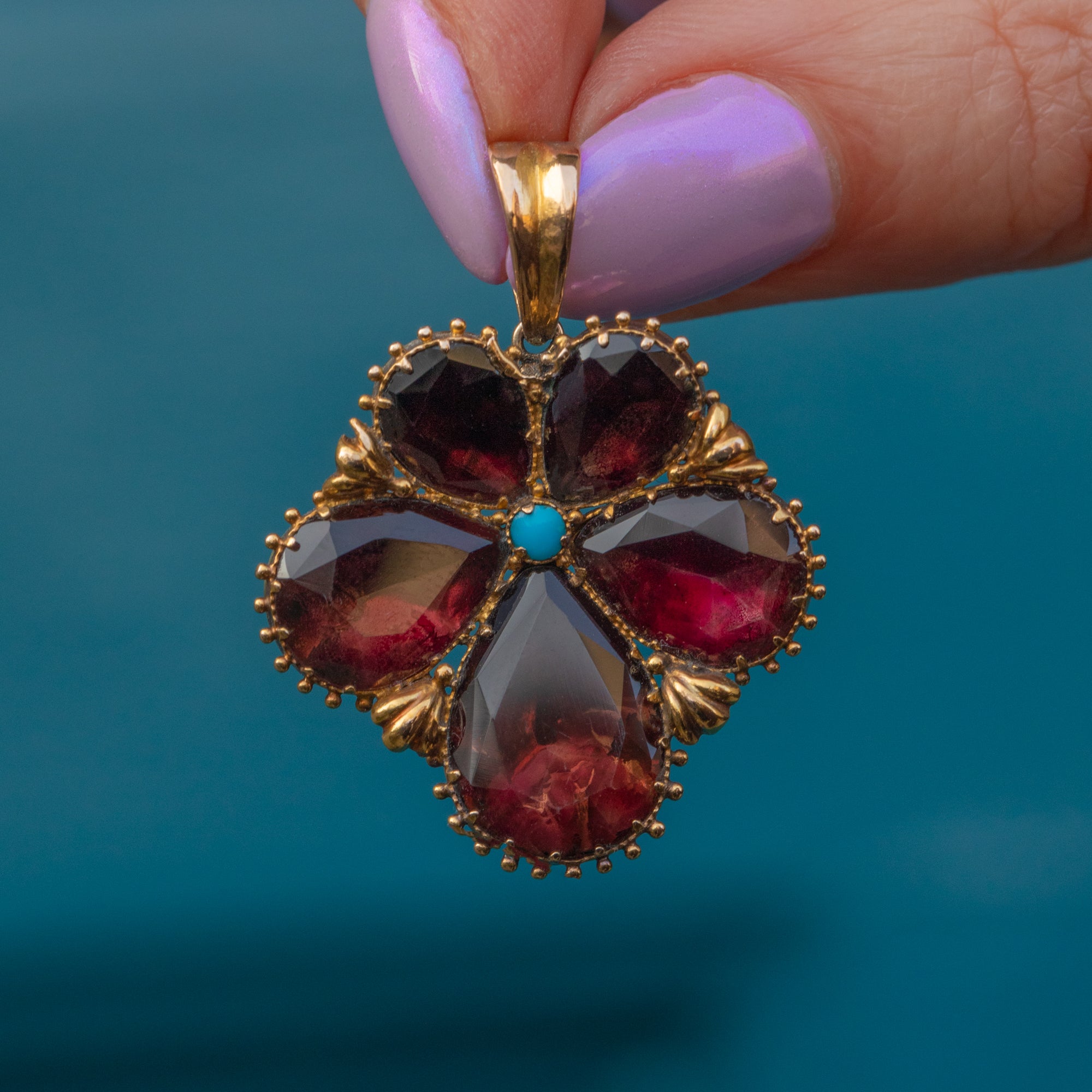 Georgian 18ct Gold Garnet Pansy Pendant, 5.00ct