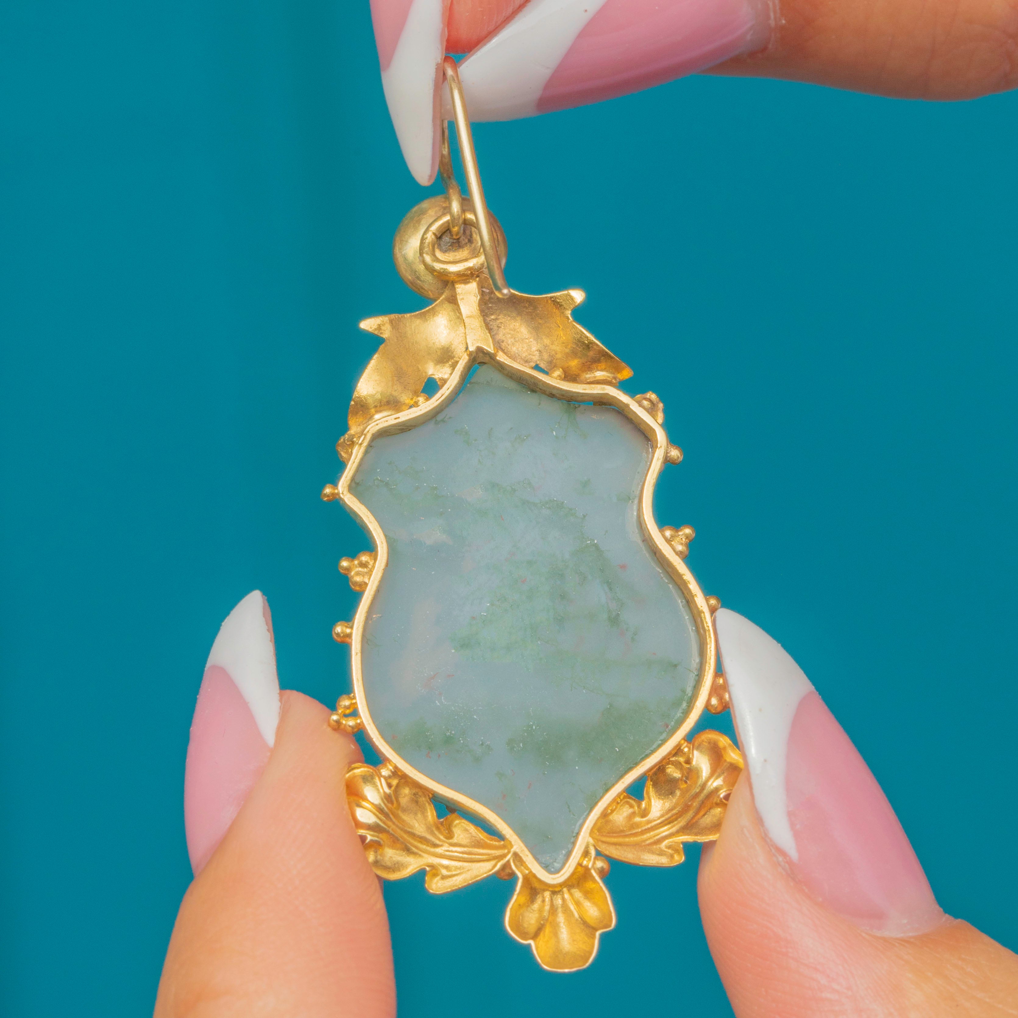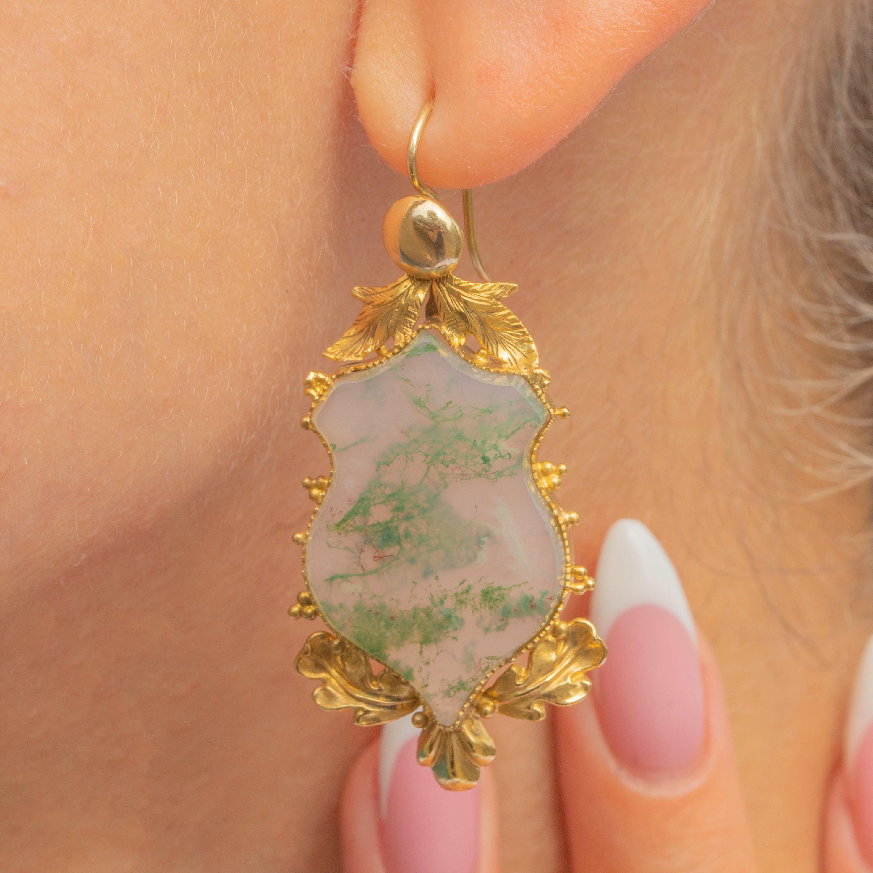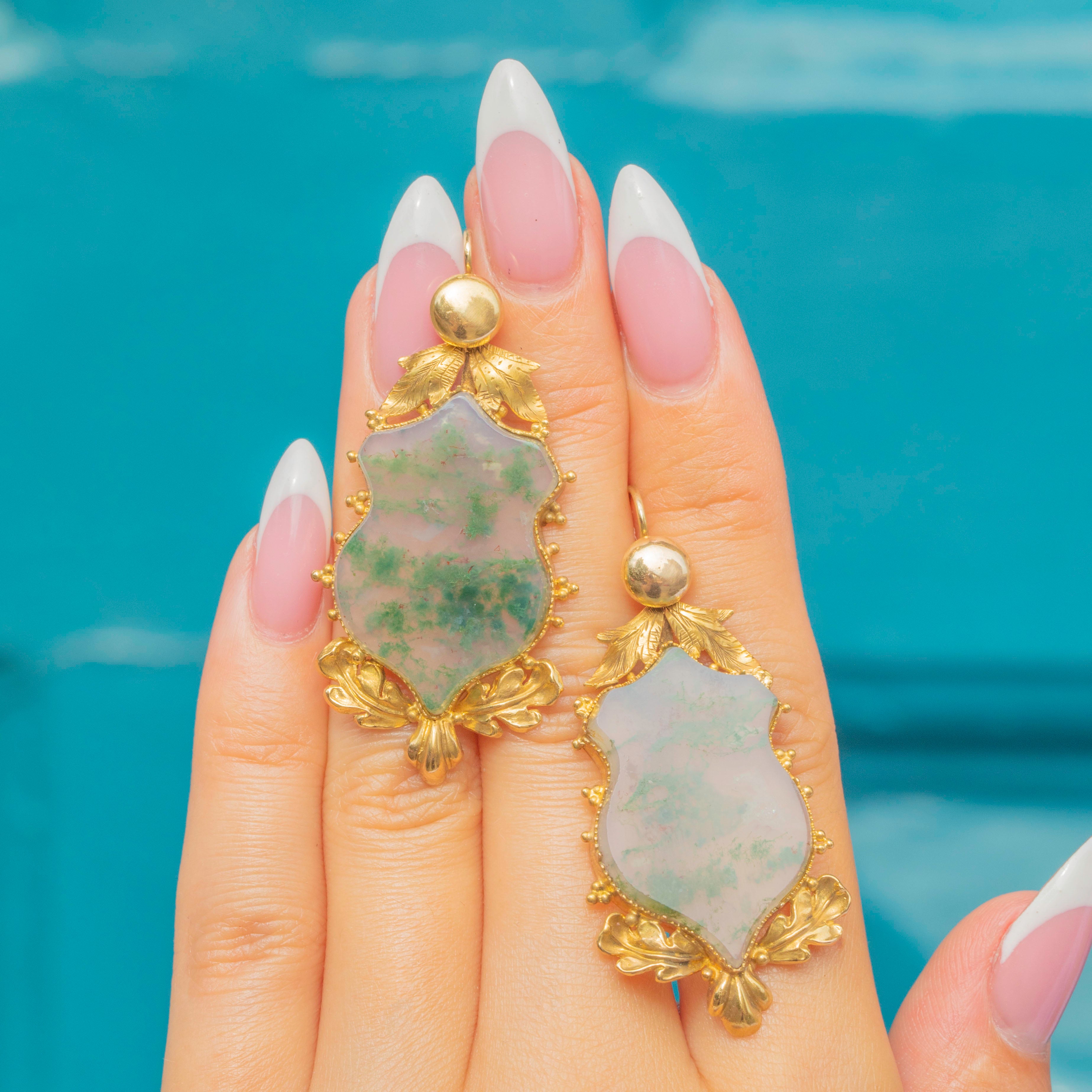 Georgian 18ct Gold Moss Agate Earrings – Antique Shield Design