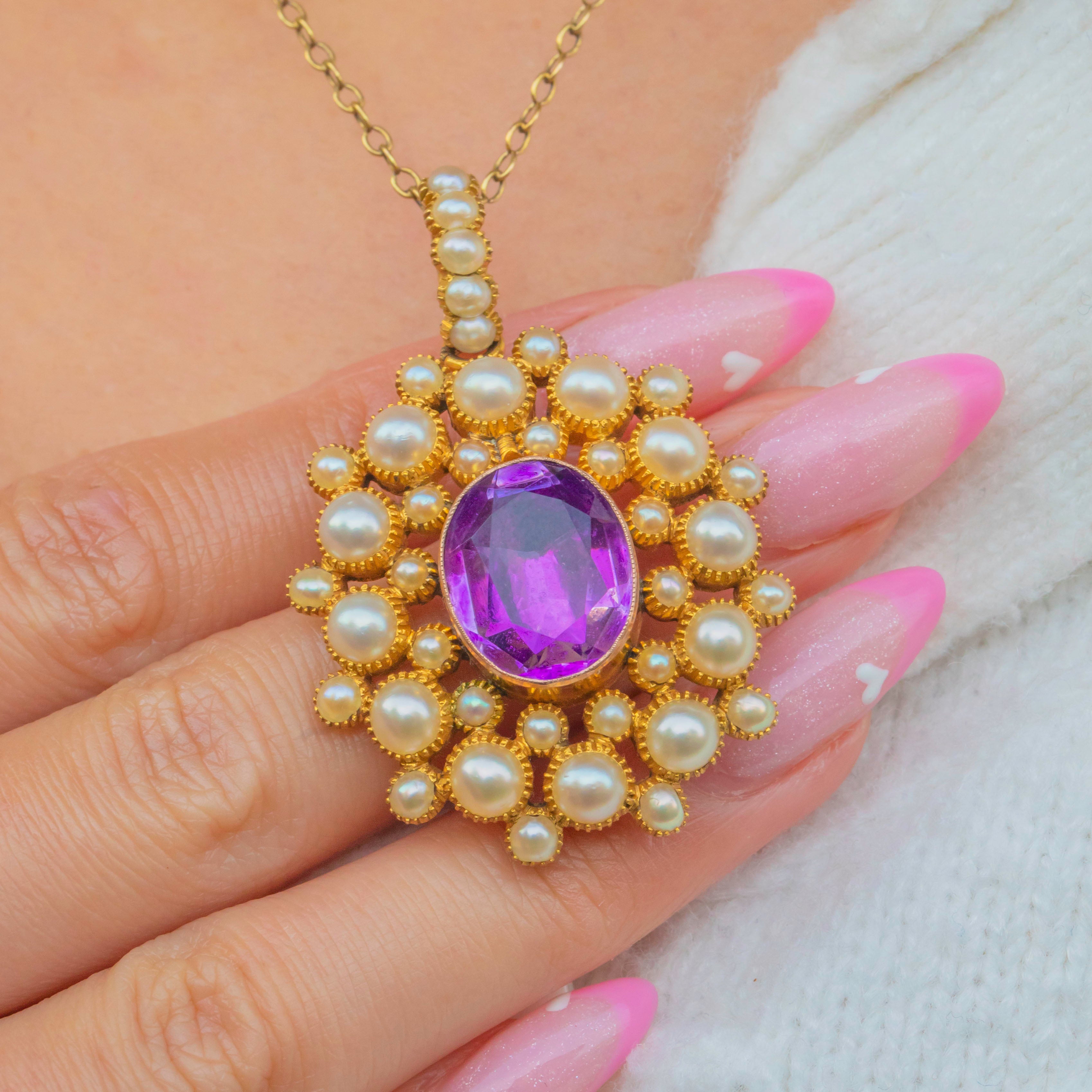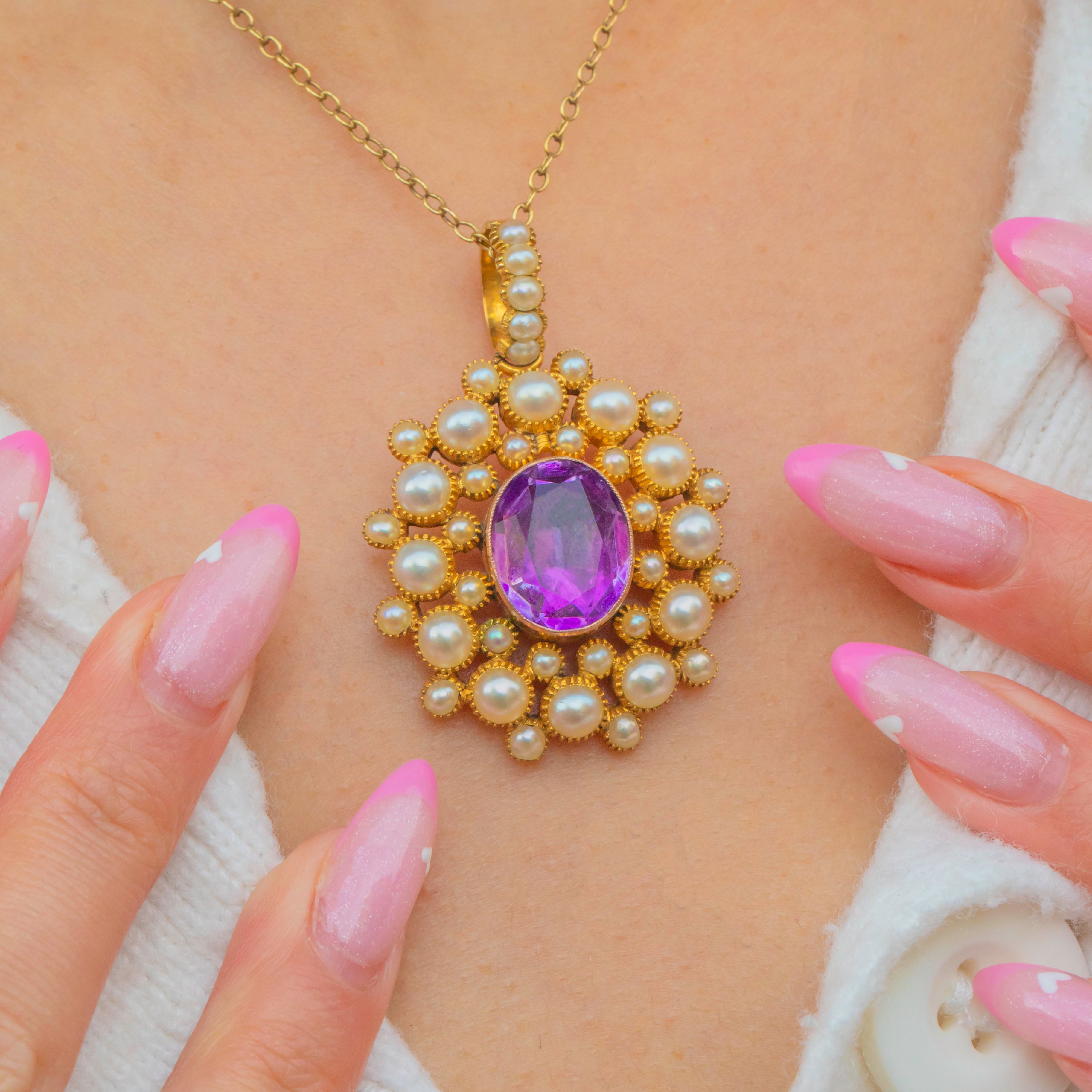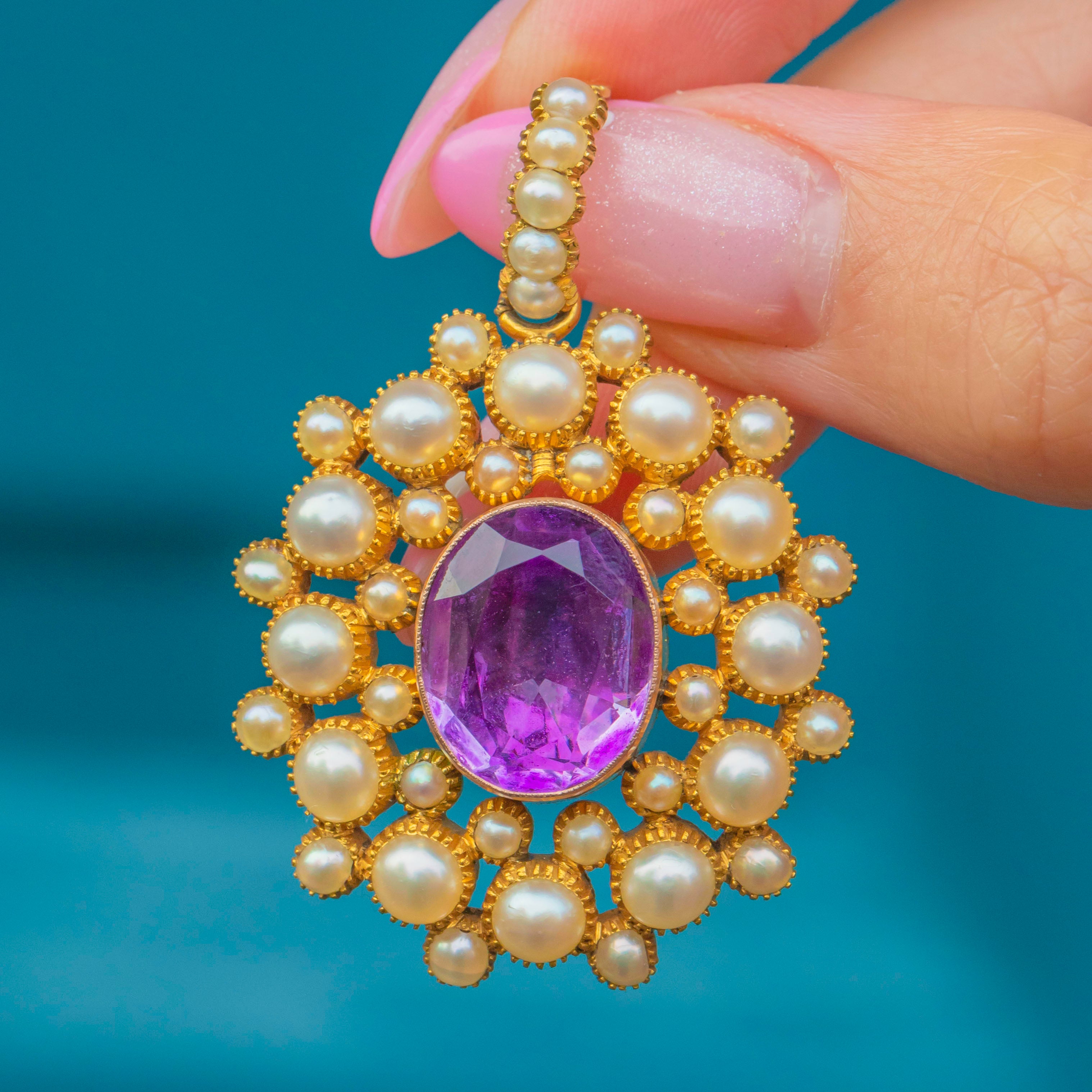 ジョージアン 18ct ゴールド ピンクアメジスト パール クラスター ペンダント、2.40ct. アイテムが追加されました